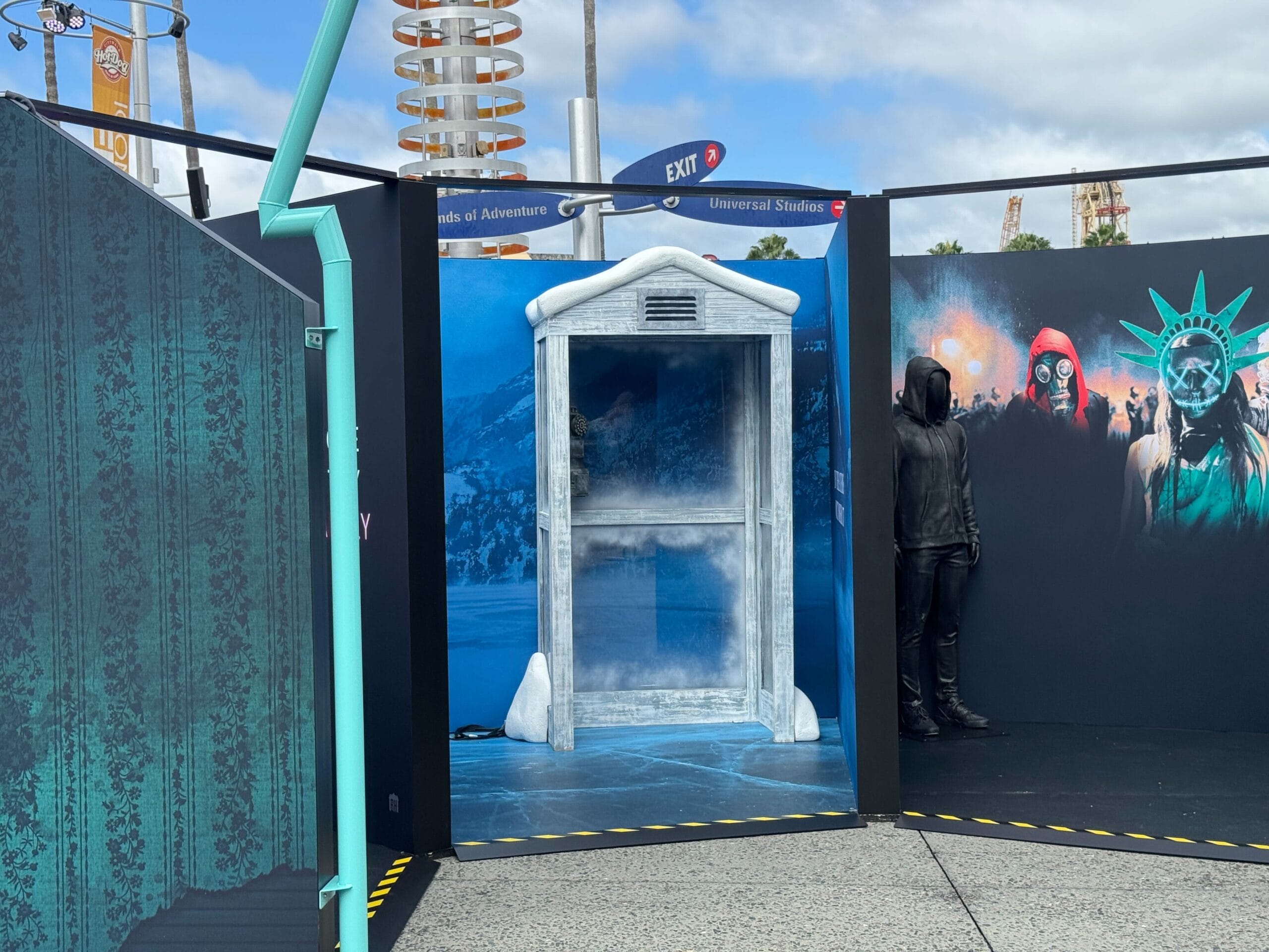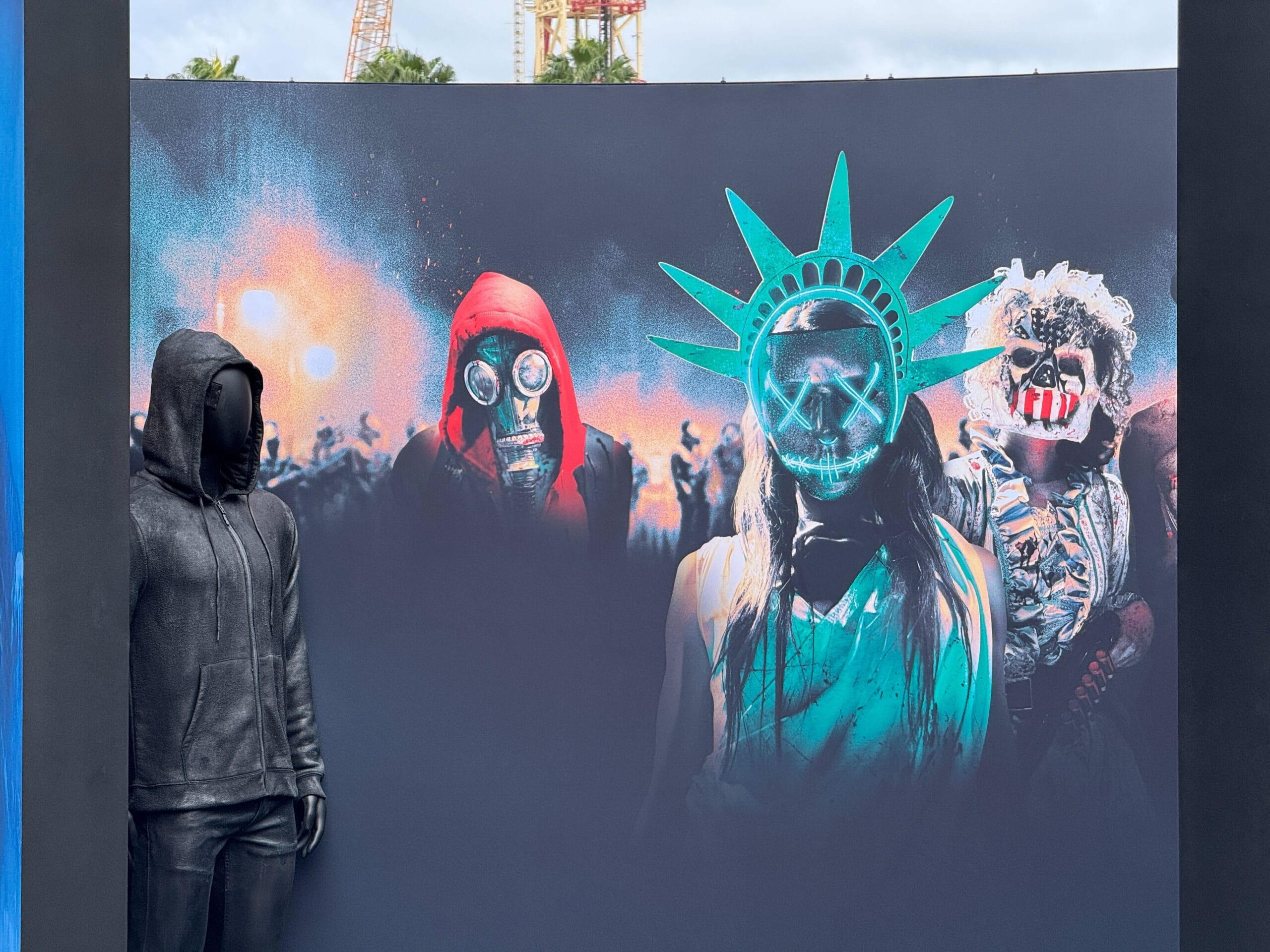 We don’t know the exact nature of the experience but it looks like it may be photo ops inspired by different Blumhouse properties. Near the entrance is a Purge backdrop with a mannequin in dark clothing.