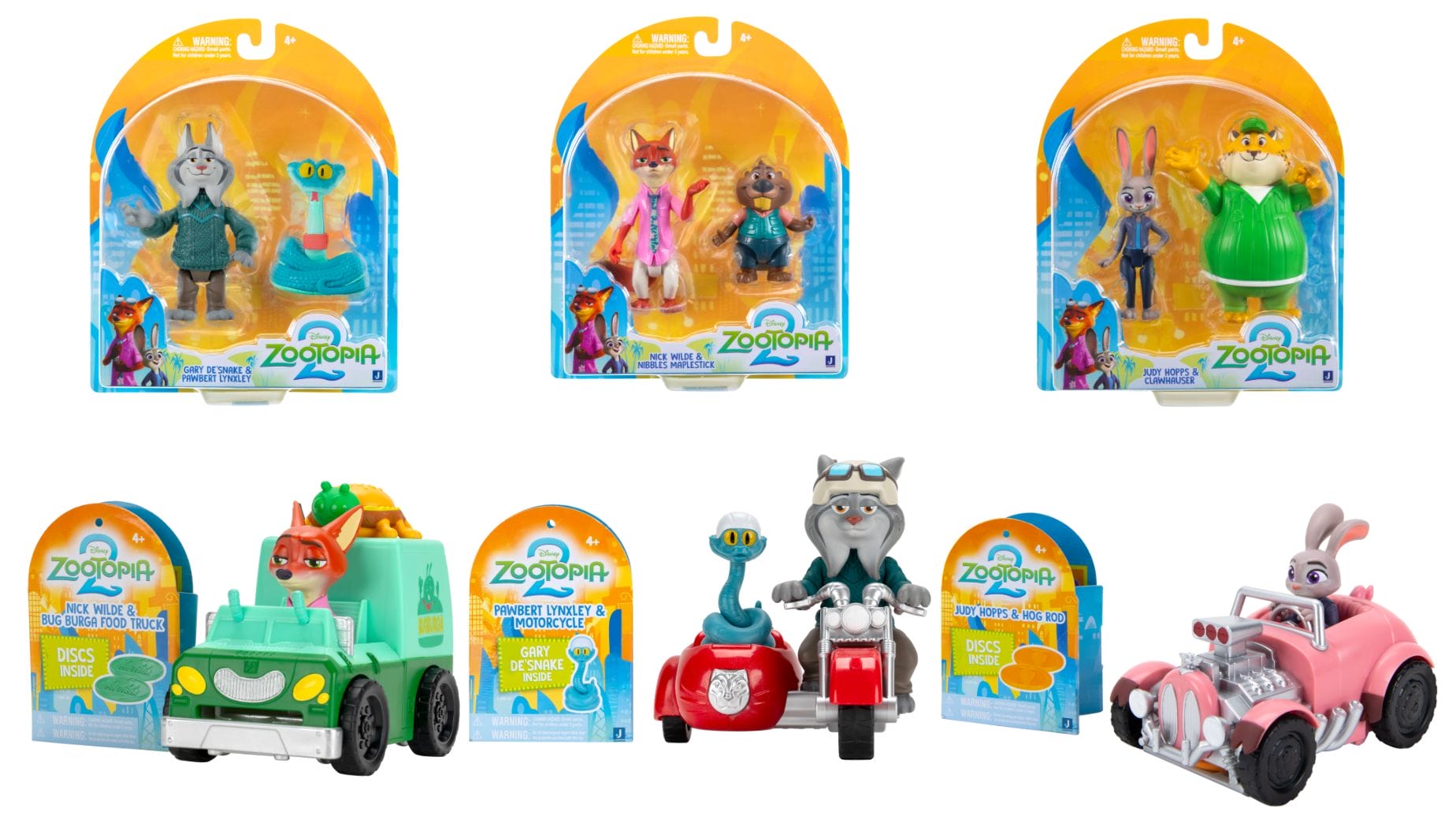 There are various Jazwares figure packs. Sets include figures of Gary & Pawbert Lynxley, Nick & Nibbles, and Judy & Clawhauser. There are also three vehicle sets: Nick & the Bug Burga Food Truck, Pawbert Lynxley & a Motorcycle (including Gary), and Judy & the Hog Rod.