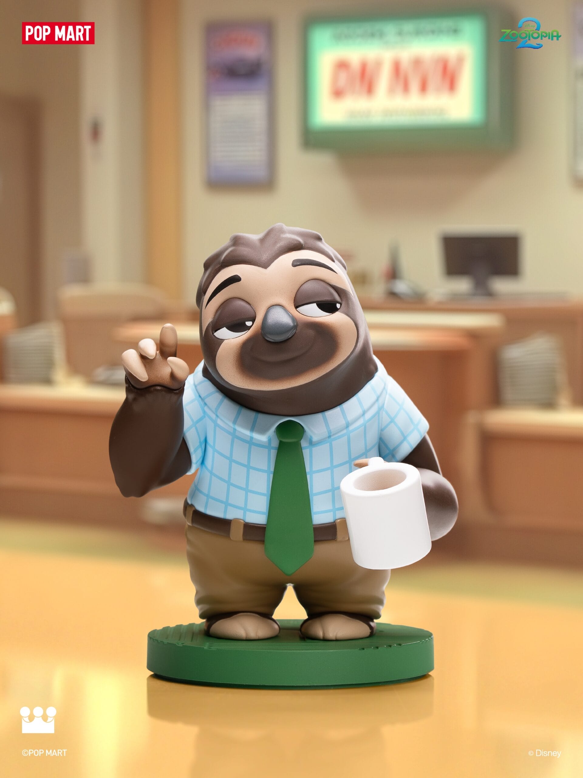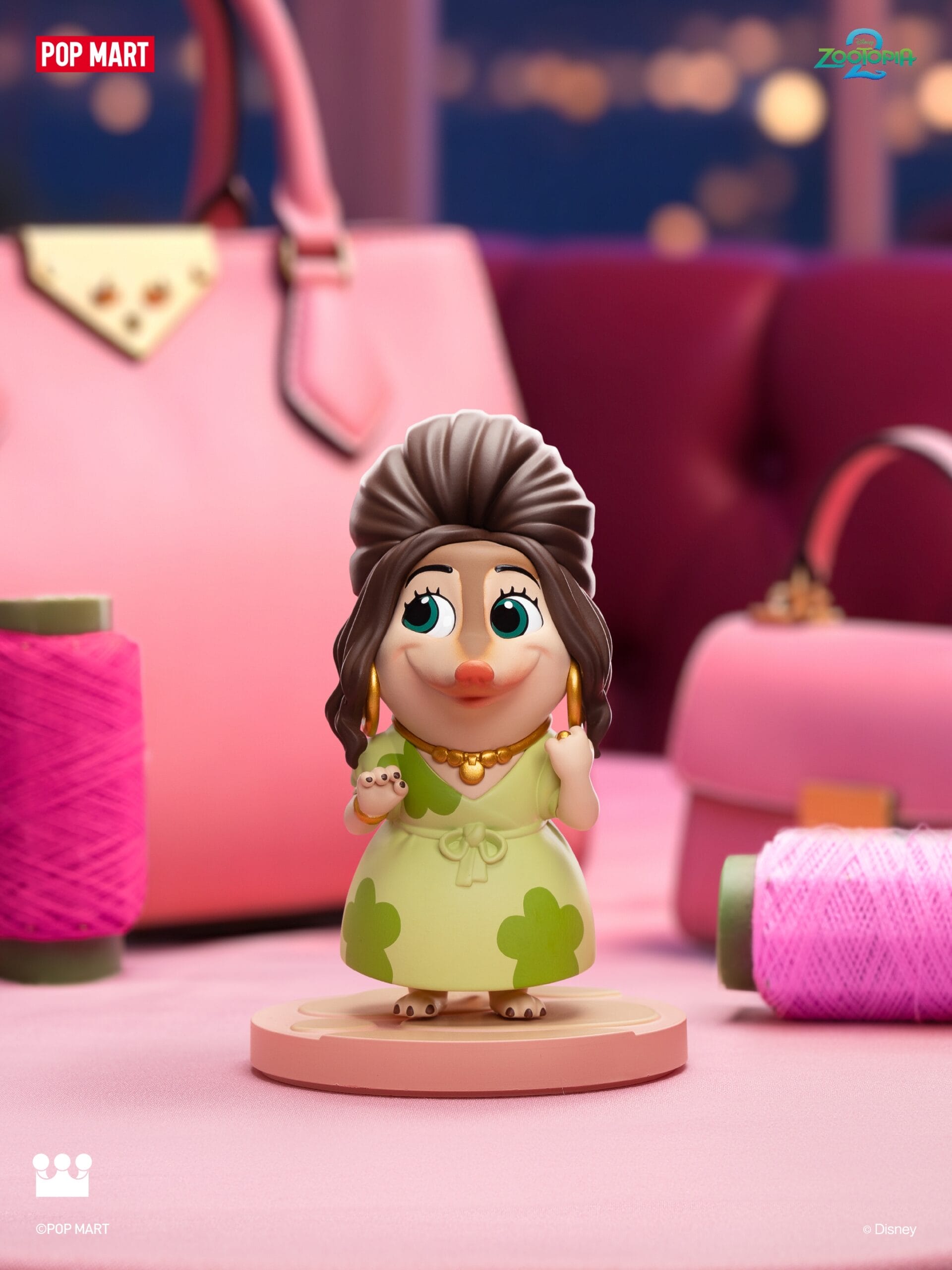 The PopMart figures are Judy, Nick, Pawbert Lynxley, Flash, Clawhauser, Finnick, Gary, Nibbles, Russ the walrus, Fru Fru, and Gazelle.