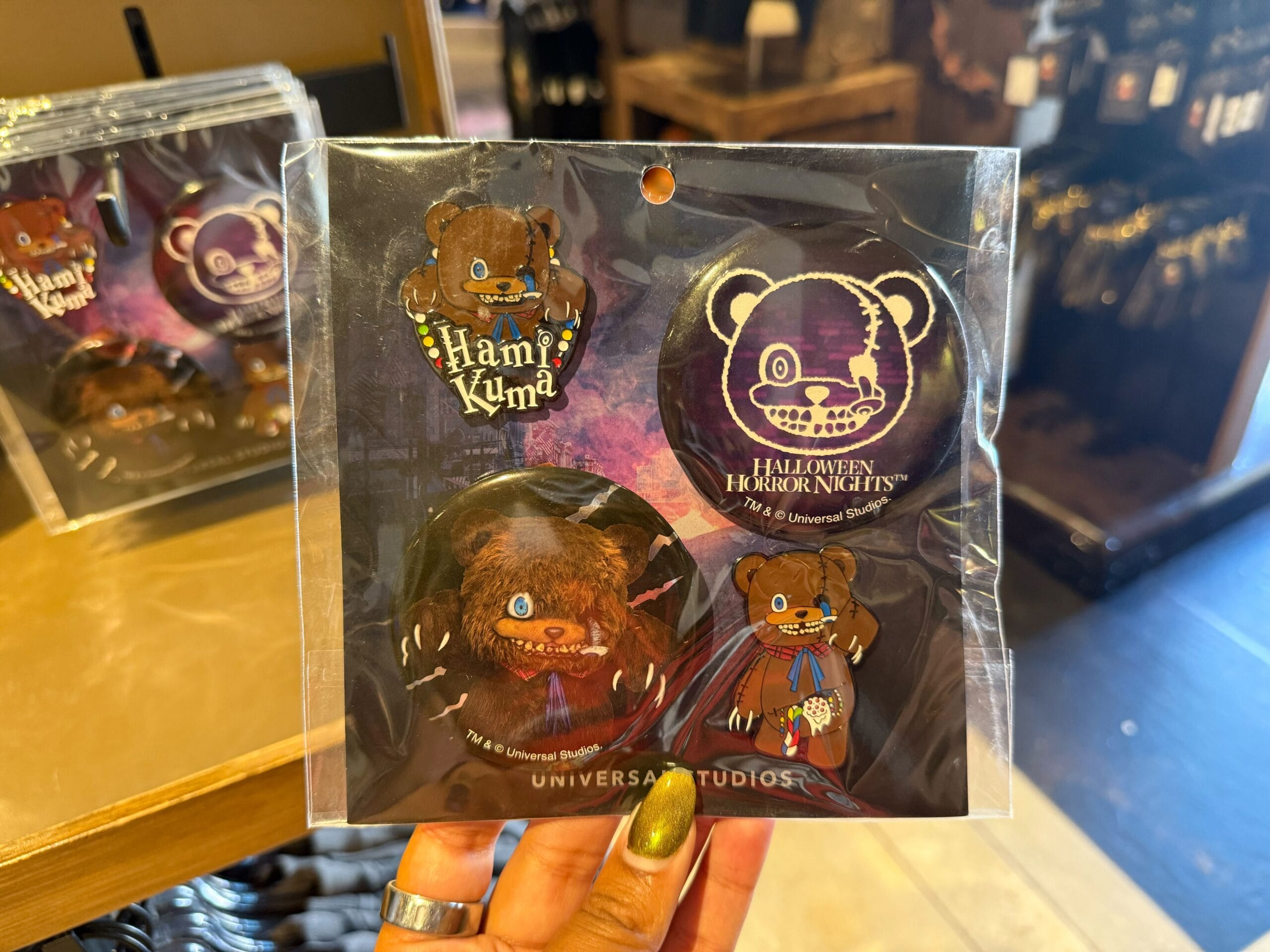 HamiKuma is an undead bar who acts as the mascot of Halloween Horror Nights at Universal Studios Japan. This is his first year making appearances at Universal Studios Hollywood.