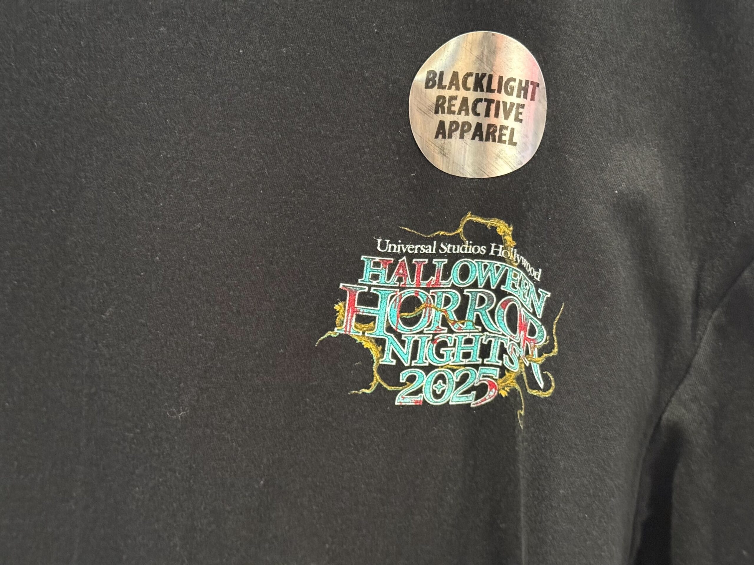 The HHN wordmark is pictured in teal blue on the left sleeve.