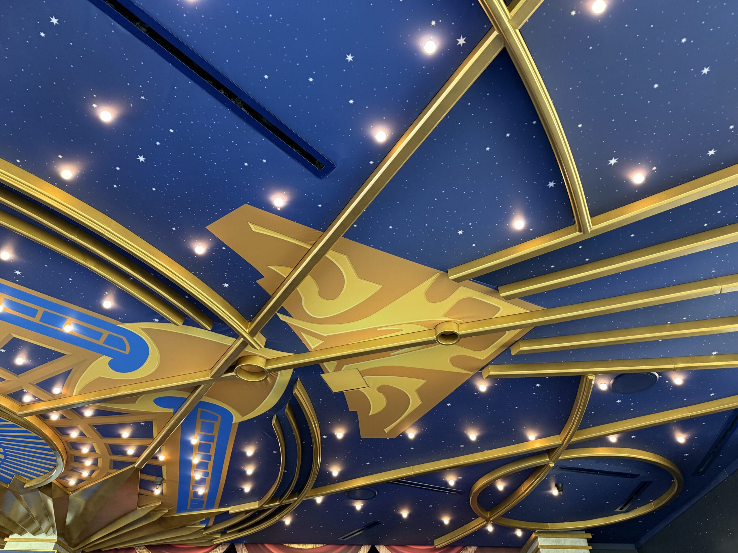 Even the columns are painted blue and tan with detailed gold accents of the moon and stars.