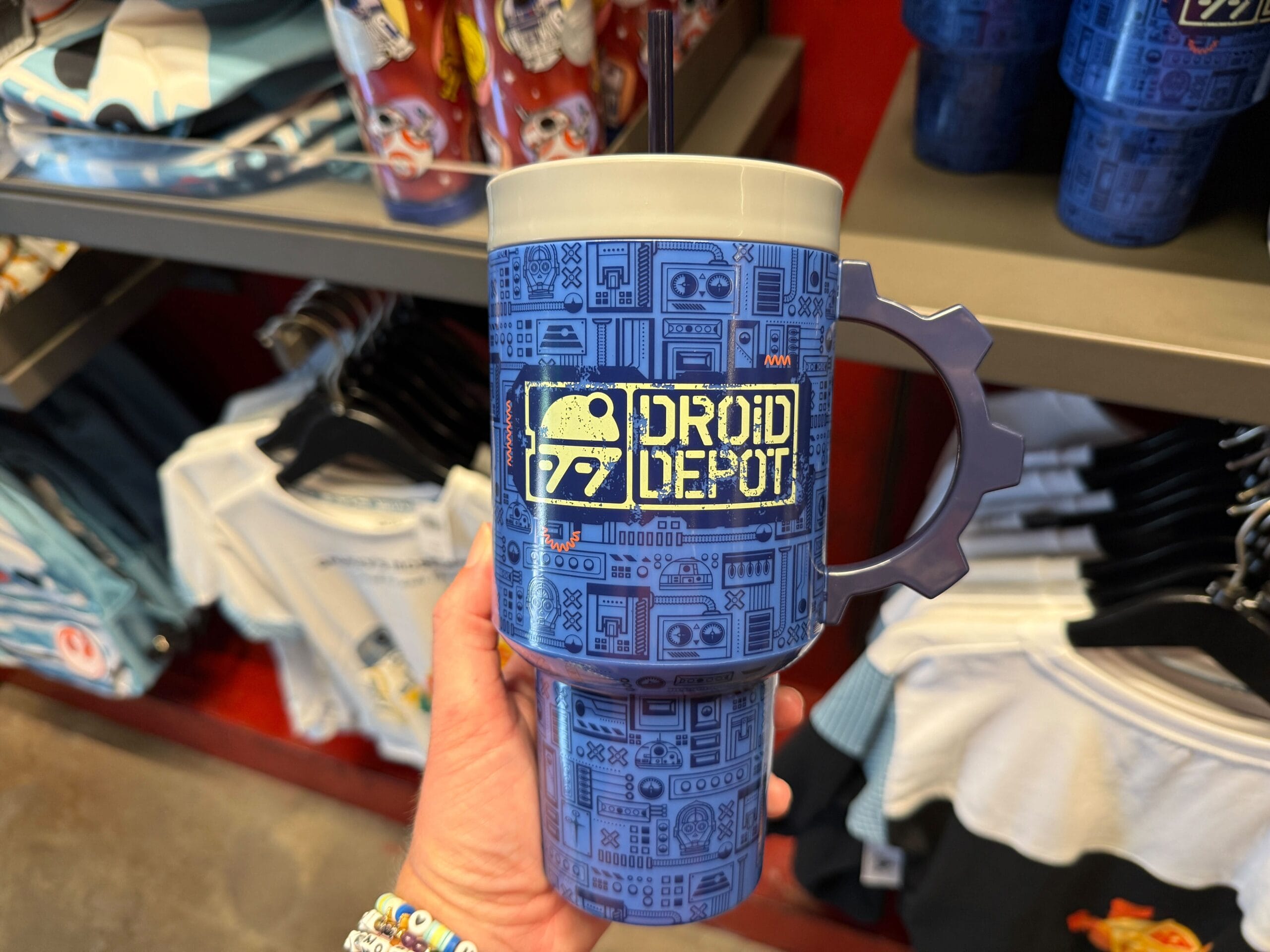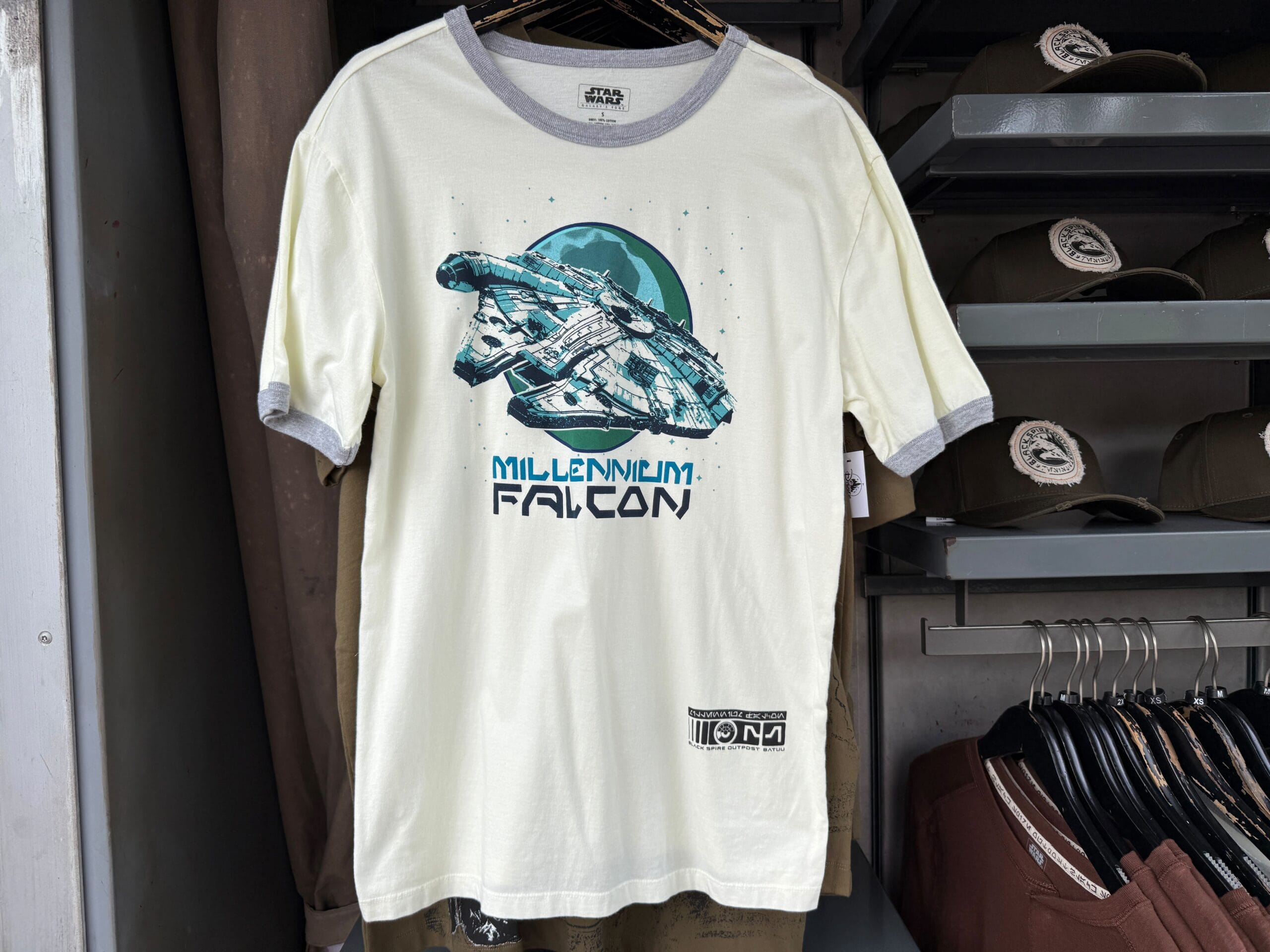 New merch has landed at various outposts around Star Wars: Galaxy’s Edge at Disney’s Hollywood Studios, including a droid travel tumbler and a trio of Millennium Falcon tees.