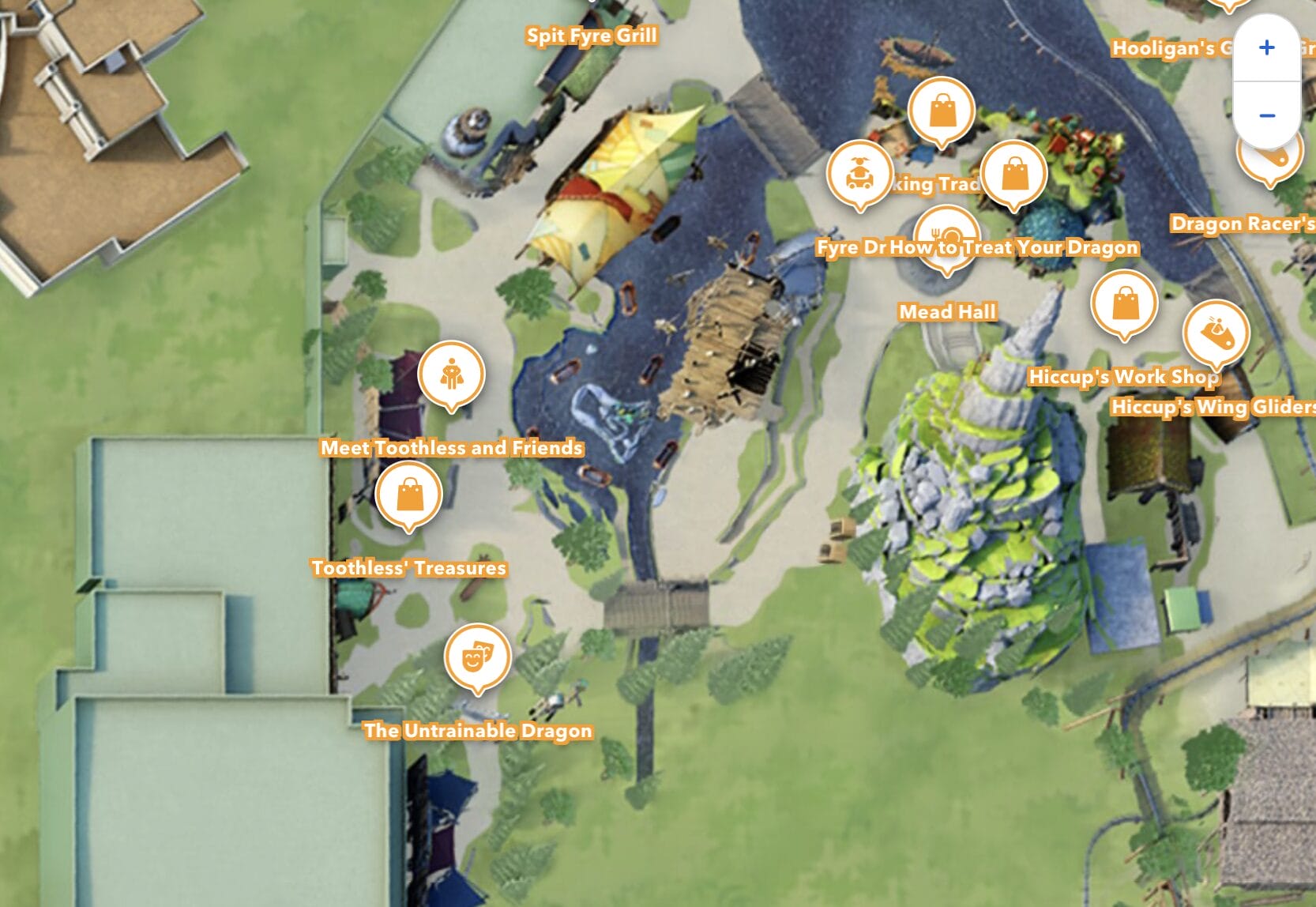 Toothless’ Treasures is located in How to Train Your Dragon – Isle of Berk, between the Toothless encounter and The Untrainable Dragon show.