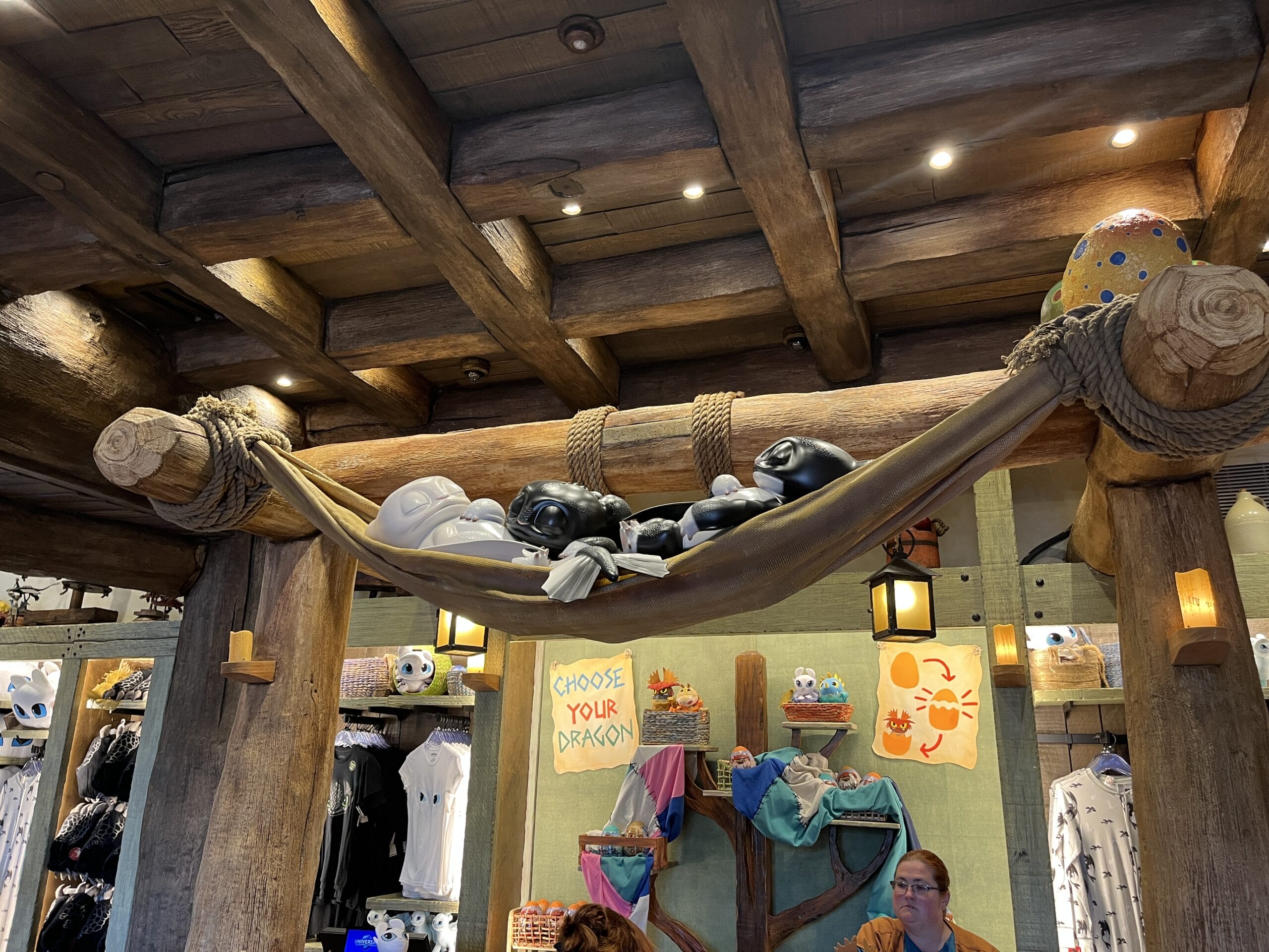 All three of Toothless and the Light Fury’s babies, known collectively as the Night Lights, sleep soundly in a hammock above the check-out area.
