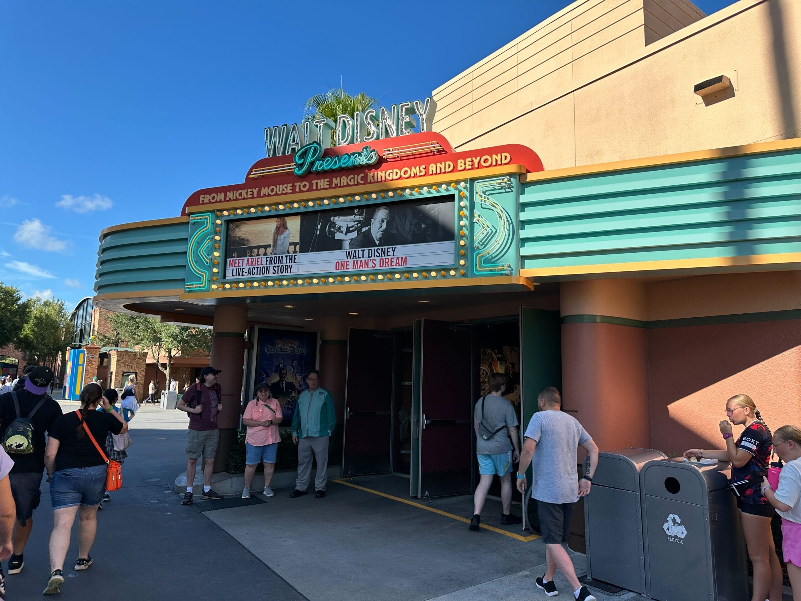 Walt Disney Presents is a building located in Disney’s Hollywood Studios with exhibits related to Walt Disney, as well as upcoming Disney films. There are also some displays related to the theme parks and Disney Cruise Line. The exhibit space connects to The Walt Disney Theater, which rotates between showings of Walt Disney: One Man’s Dream and previews of upcoming films.