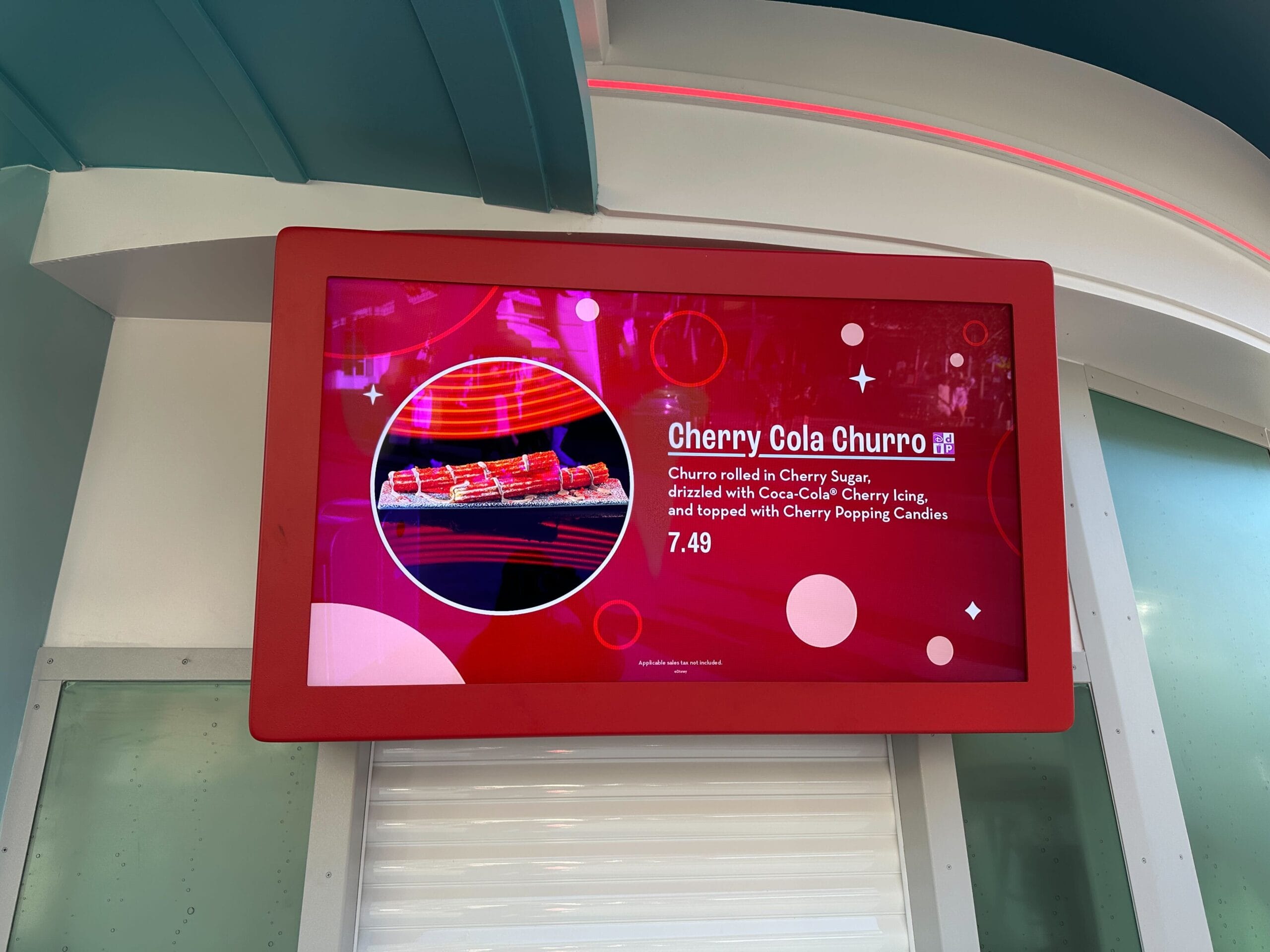 - Cherry Cola Churro: Churro rolled in cherry sugar, drizzled with Coca-Cola Cherry icing, and topped with cherry popping candies – $7.49