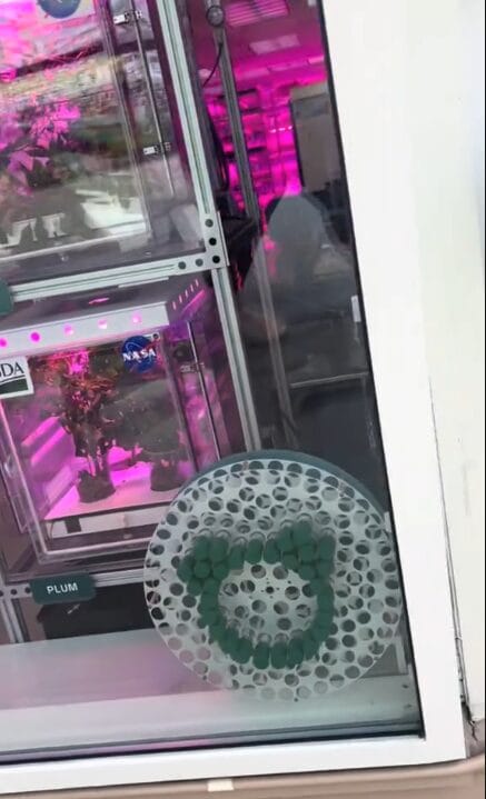 It then cuts to a view of guests walking past a laboratory window backstage.