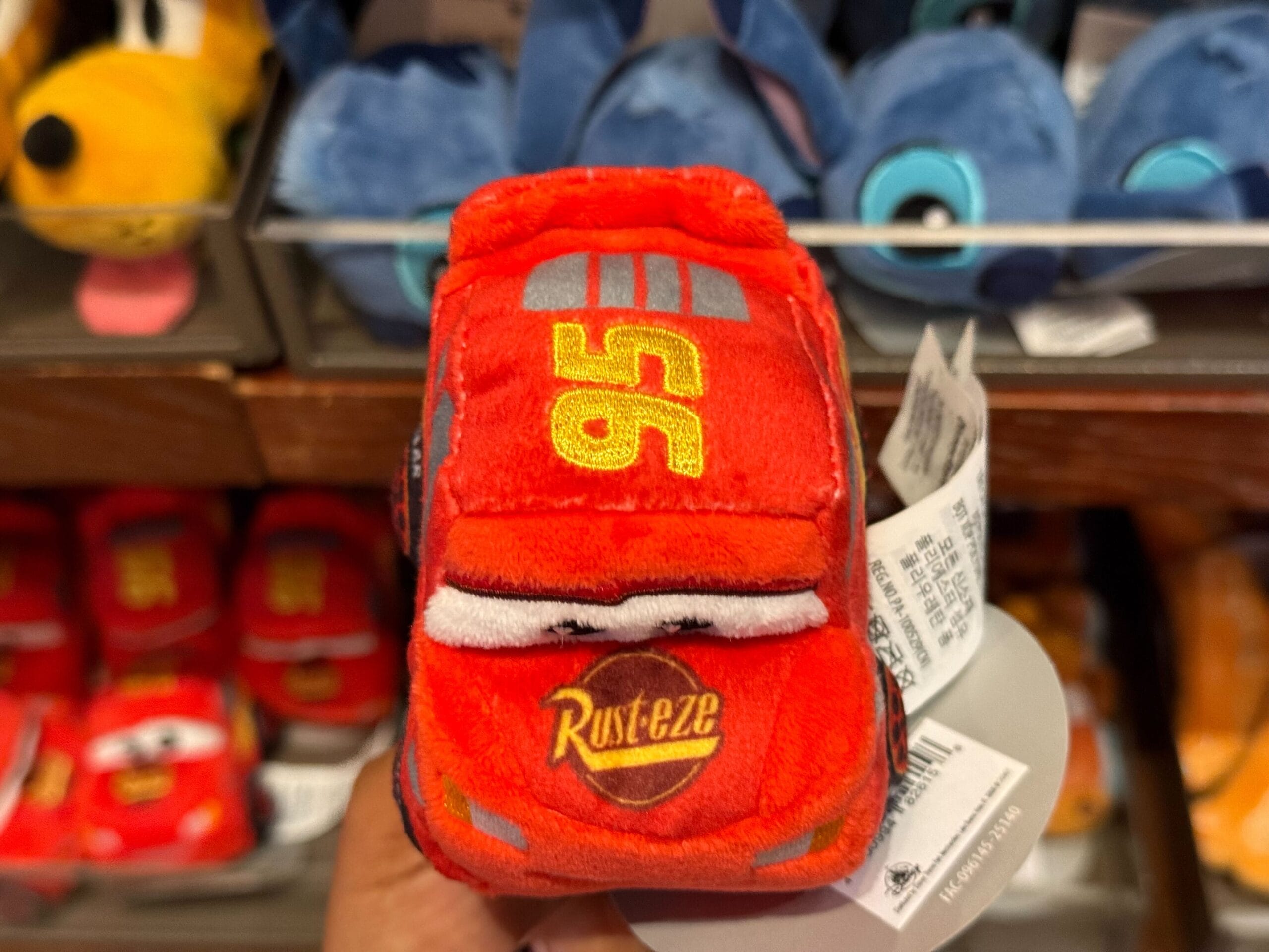 Lightning has the Rust-eze logo and wordmark printed on his hood and trunk. His racing number, 95, is embroidered on the top and sides of the plush.