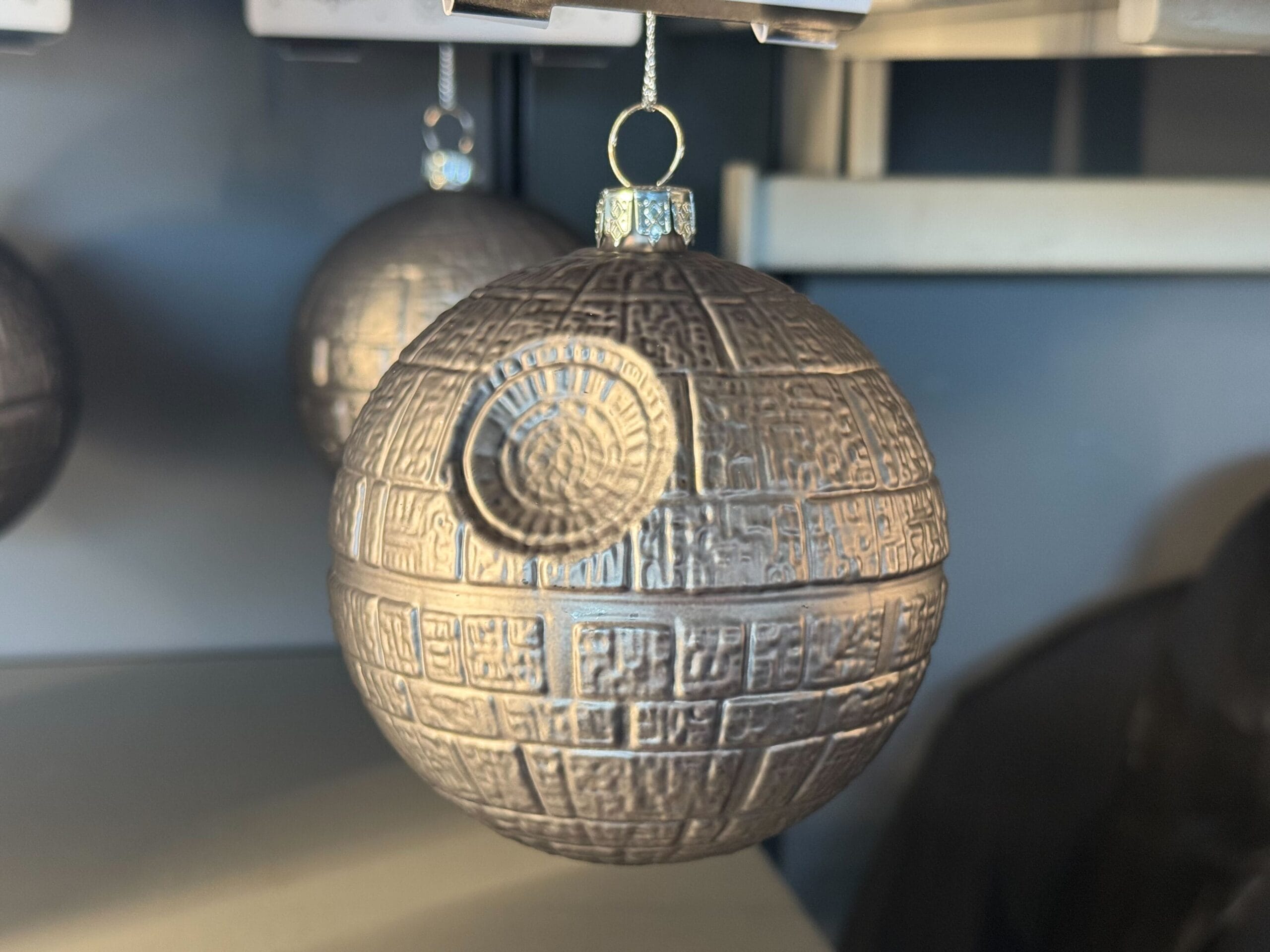We found the ornament at First Order Cargo in Galaxy’s Edge.
