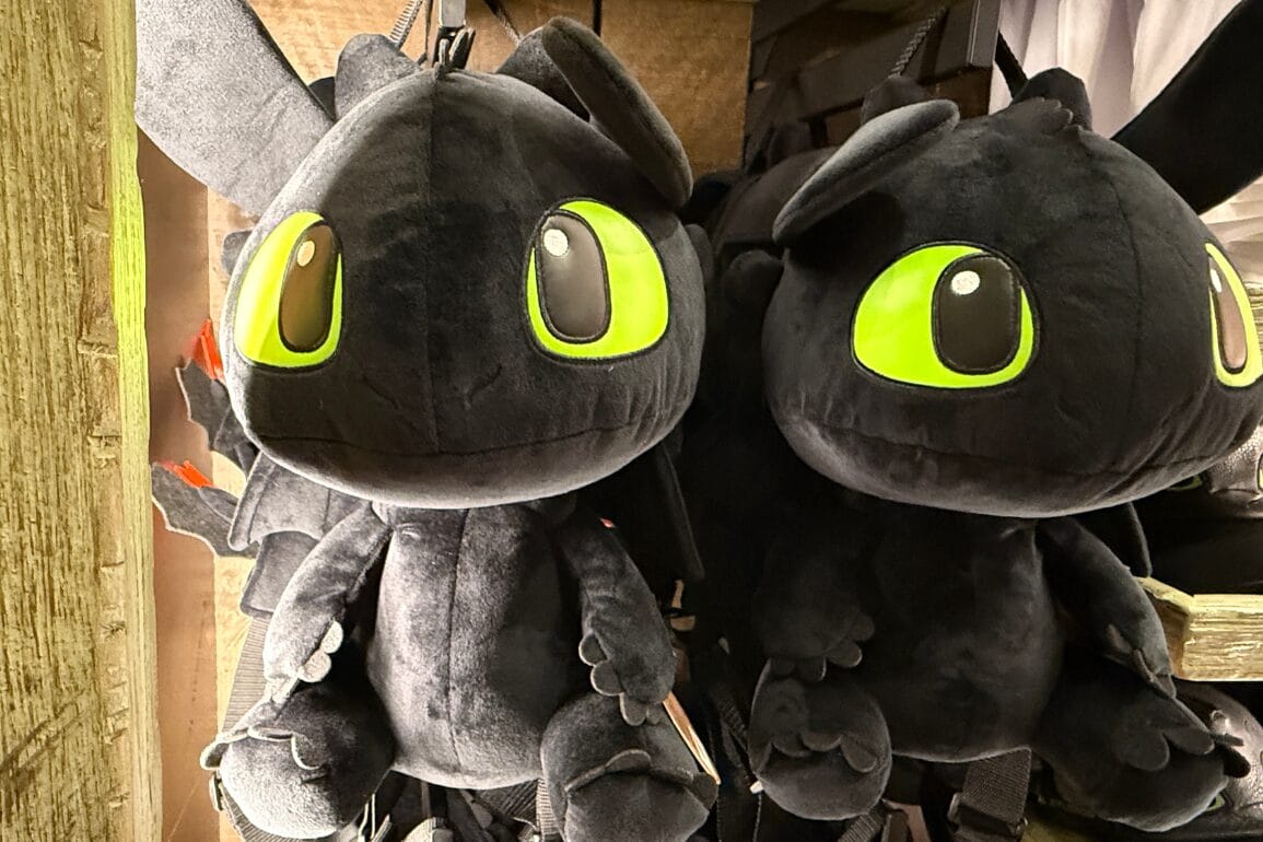 See all the merchandise available at Toothless’ Treasures in How to Train Your Dragon – Isle of Berk at Epic Universe. Featuring backpacks, purses, and plushies of the beloved dragon himself, Toothless’ hoard has it all.