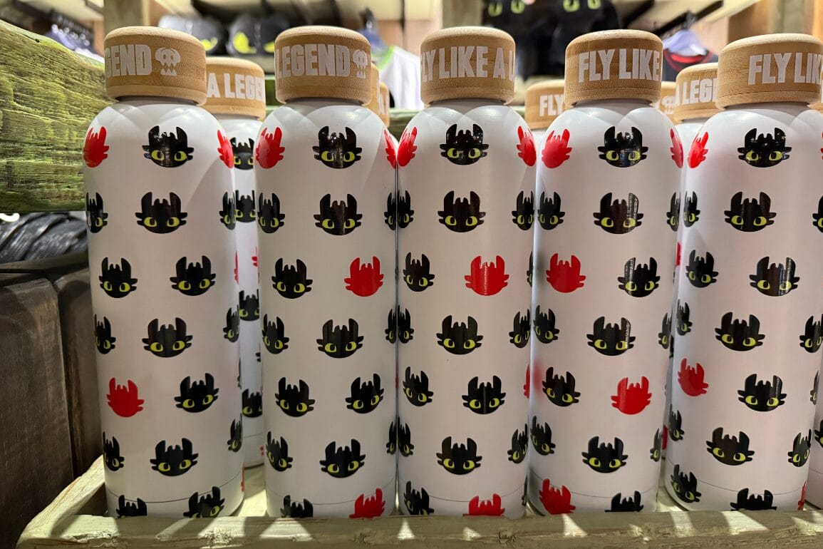 These white, aluminum water bottles are perfect for a Toothless fan. Covered in black and red Toothless faces, they’re a great way to stay hydrated and show off your love of everyone’s favorite, cuddly dragon.