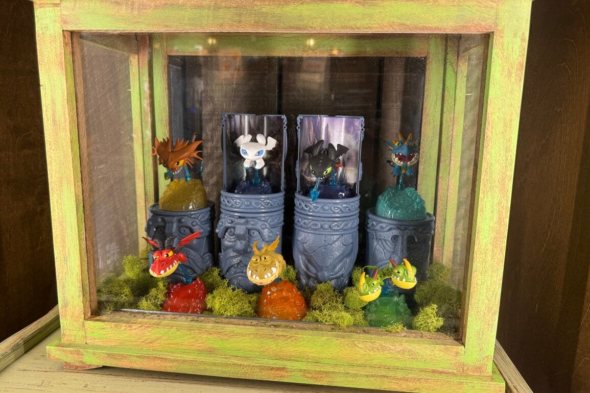 In a similar style to the mystery eggs, these blind boxes each contain a random dragon figure alongside a Viking-style statue for display. A display inside the store shows off the various options, which include Cloudjumper, Hookfang, the Light Fury, Meatlug, Toothless, Stormfly, and Barf & Belch.