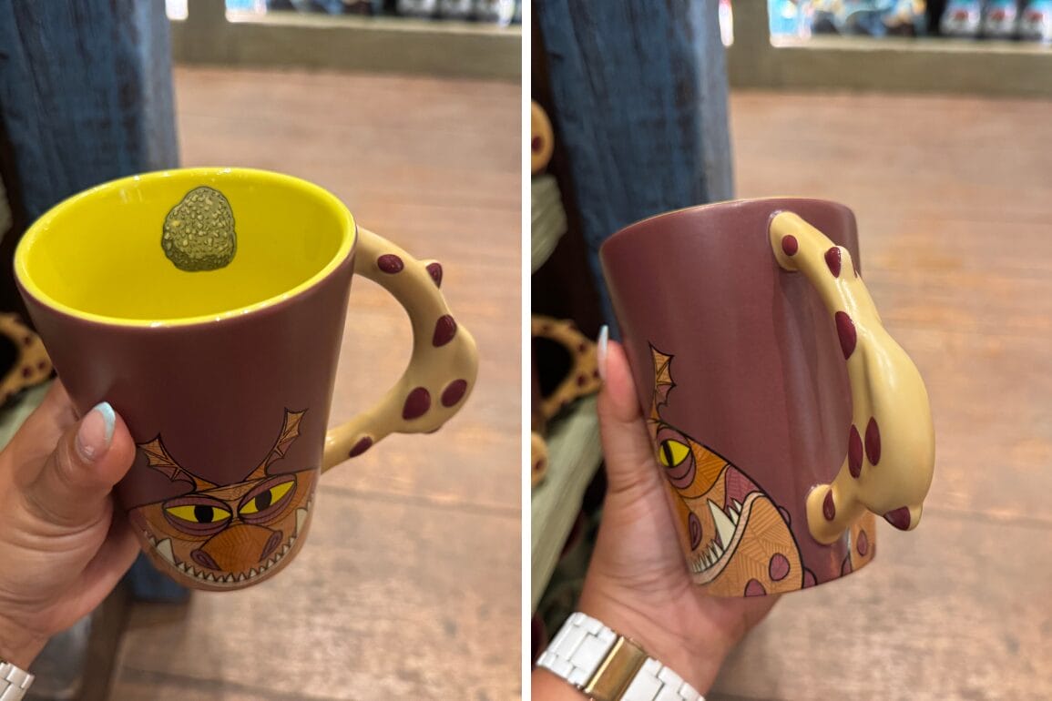 Up next in the same style is a Gronckle mug with a brown exterior and a pale yellow handle.