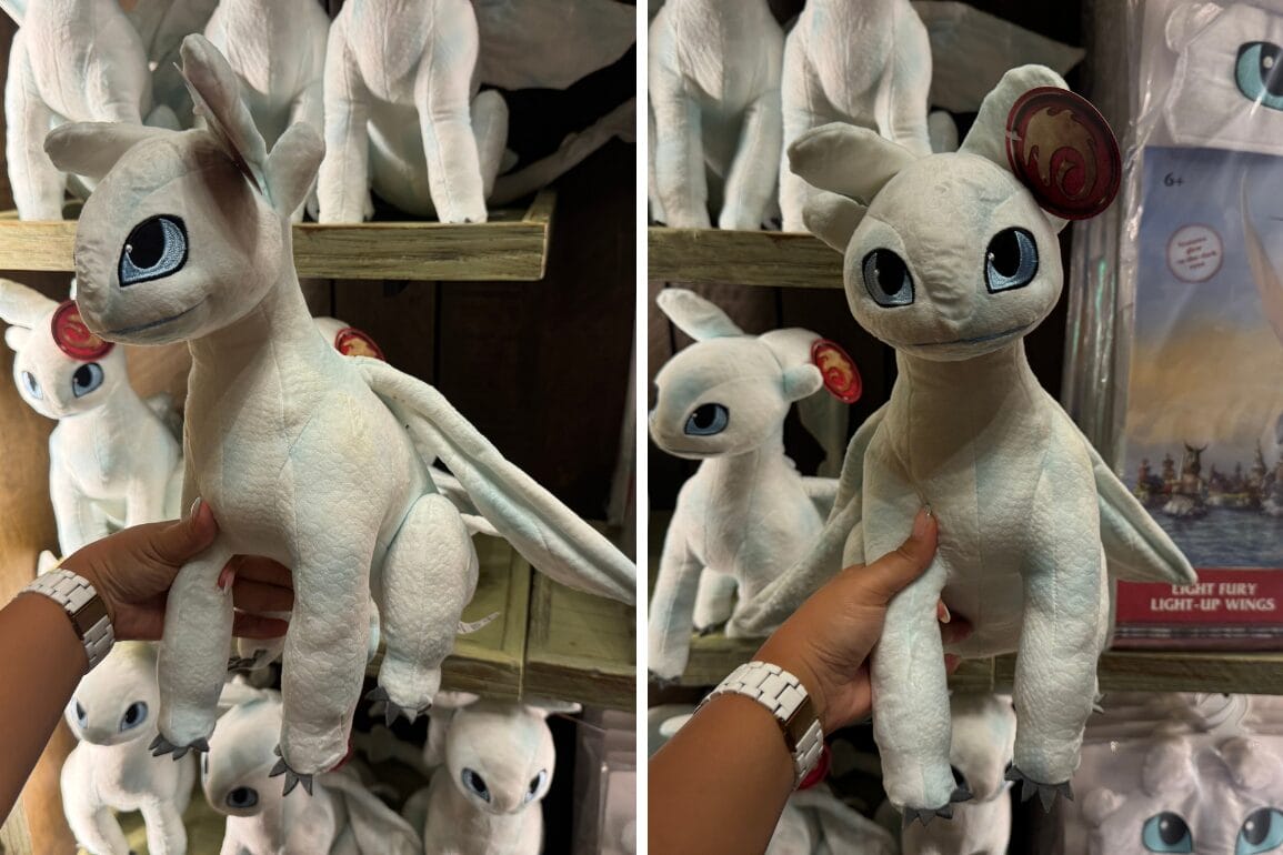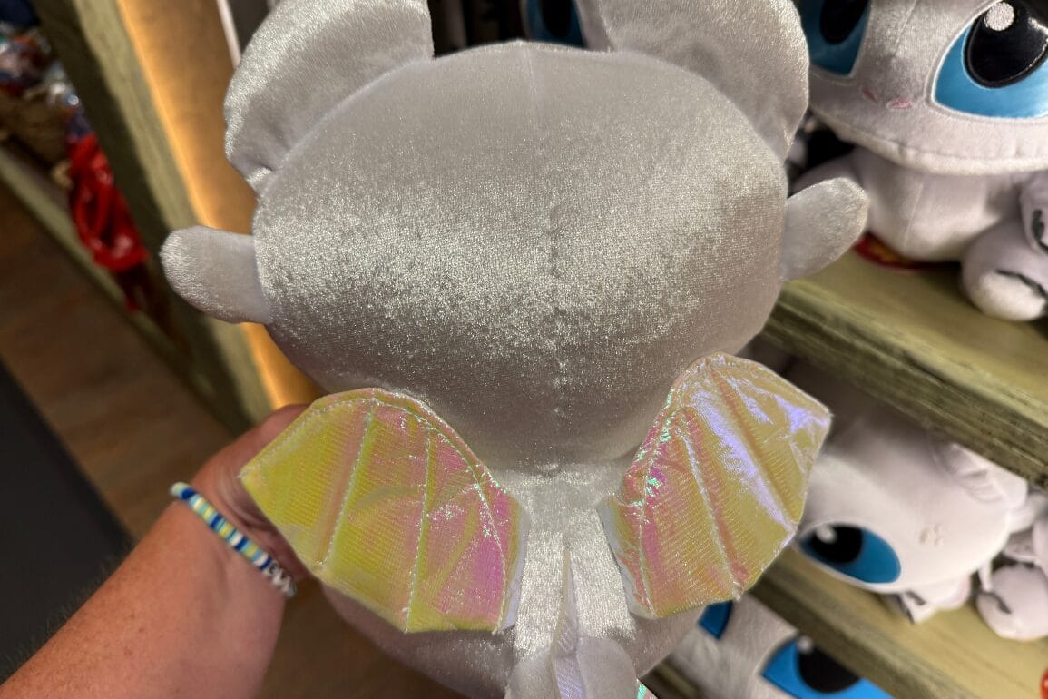 In the same style as the Toothless standing plush, the Light Fury also comes in standing form with sturdier legs and a textured fabric exterior with a subtle scale pattern.