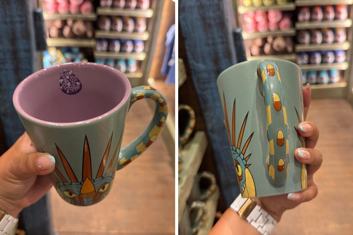 A Deadly Nadder version of the same mug is a pastel teal color with Stormfly’s head on the front and her tail again acting as the handle.