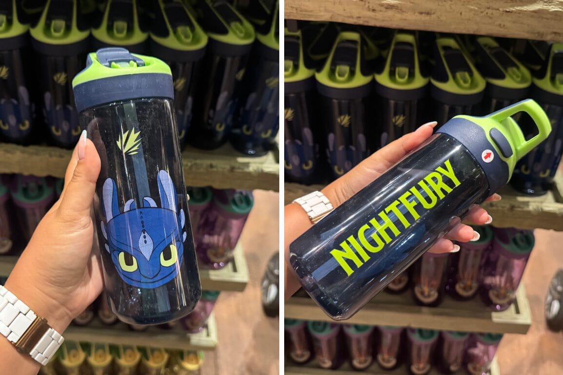 There are water bottles made in the same style as the previous Toothless bottle for most of the main Berk dragons. The one for the Deadly Nadder is purple-tinted with a purple and blue lid.