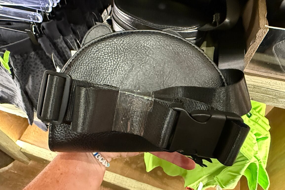 Matching the sassy expression of the coin purse and crossbody bag, this belt bag is another item showcasing Toothless’ side-eye. His eyes, forehead spikes, and nose are all embroidered on the front of the bag.