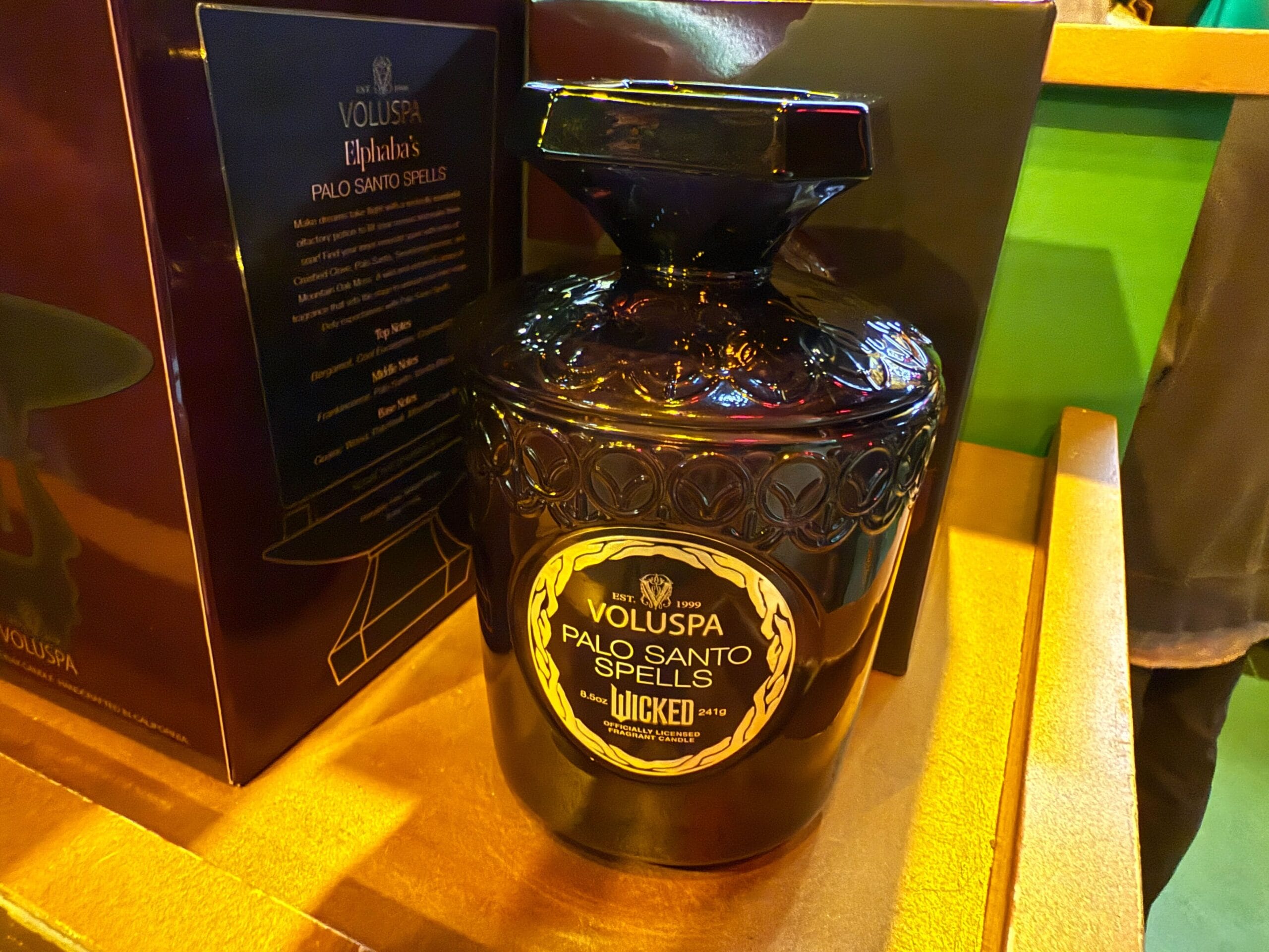 Voluspa has two new candles inspired by Elphaba and Glinda. The Elphaba candle is in a dark jar.