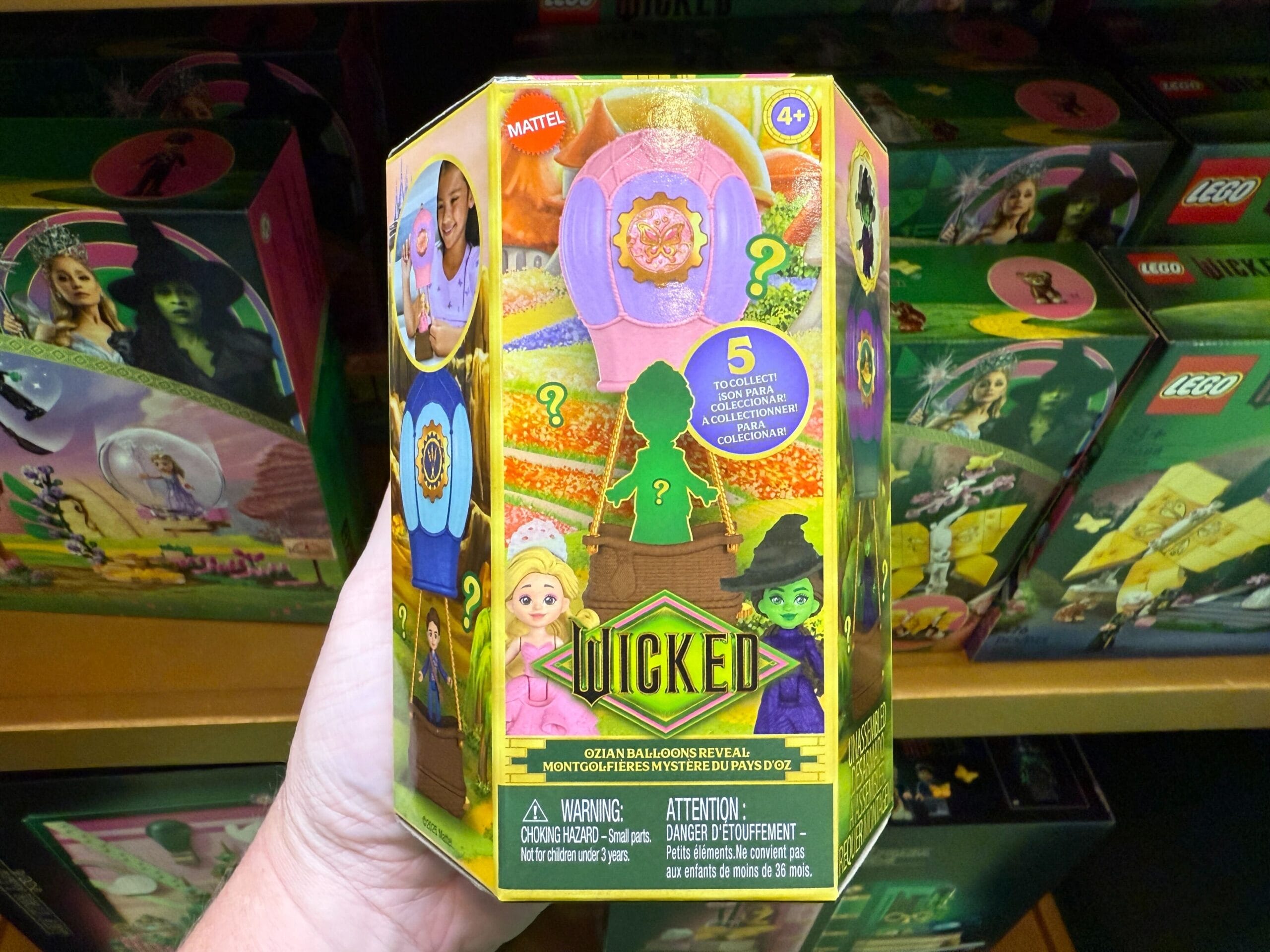 Each of these boxes holds one of five mystery figures and hot air balloons. The possibilities are Elphaba, Glinda, Fiyero, the Wizard, and Madame Morrible.
