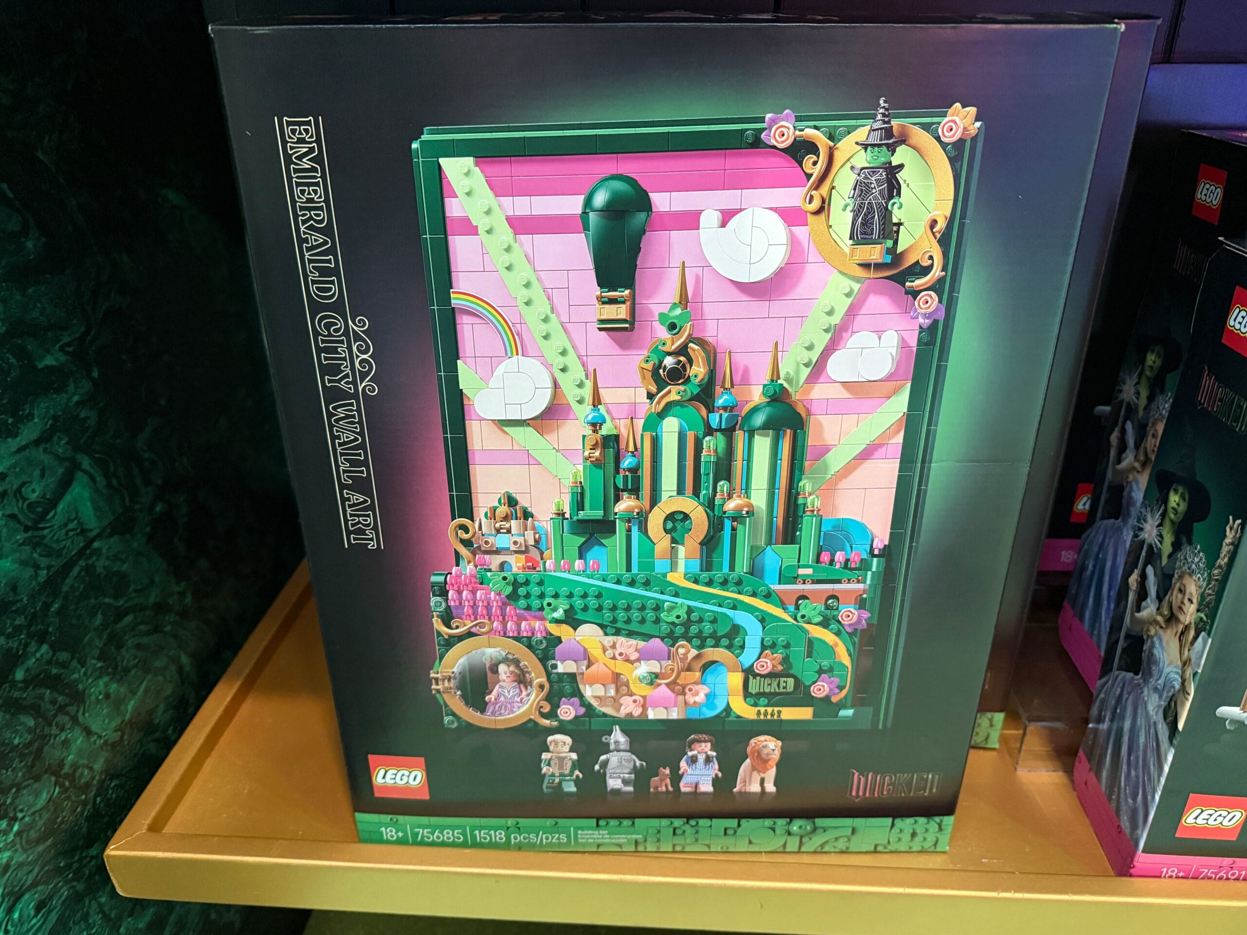 The Emerald City wall art includes minifigures of Glinda, Elphaba, Dorothy, Toto, the Tin Man, Fiyero, and Cowardly Lion. It’s 1,518 pieces and recommended for ages 18+.