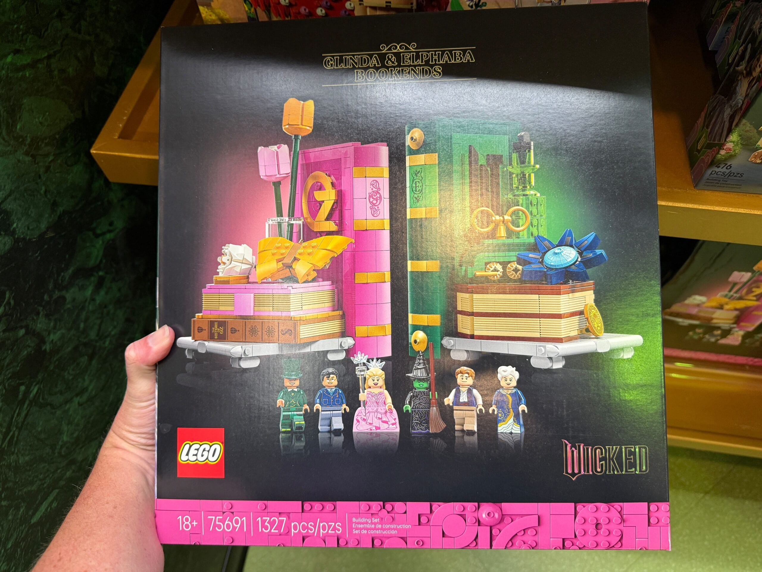 This set includes two bookends, one representing Glinda and one representing Elphaba. The included minifigures are Elphaba Glinda, Fiyero, Madame Morrible, Pfannee, and the Wizard. With 1,327 pieces, it’s recommended for ages 18+.