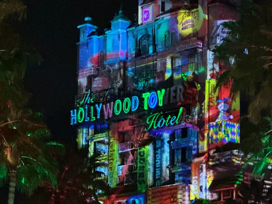 Available for both Jollywood attendees and day park guests, The Hollywood Tower Hotel lights up in projections throughout the evenings during the holiday season. It comes to life with scenes from favorites such as Frozen, Toy Story, and The Muppets, adding a bit of festivity to its fright.