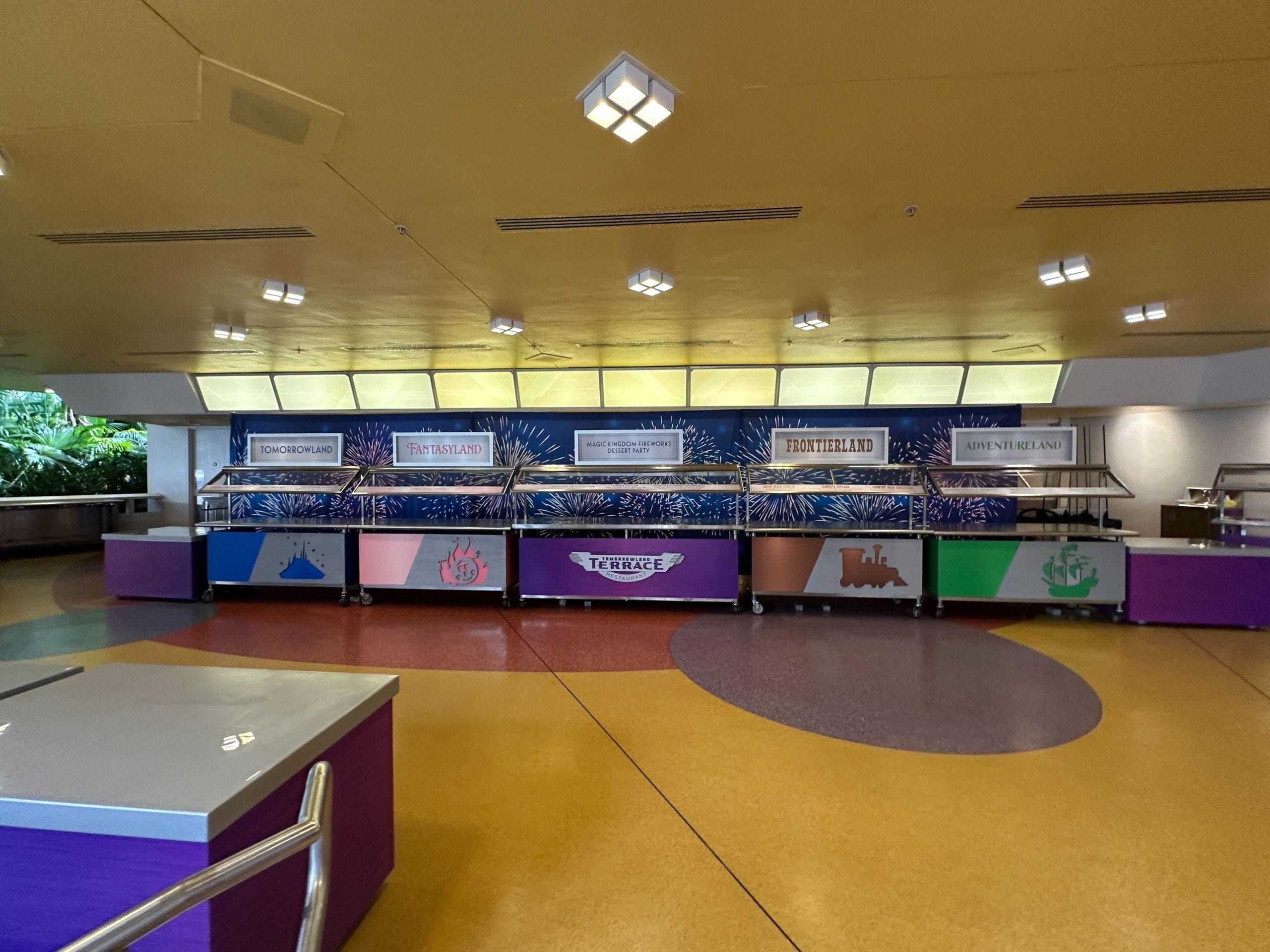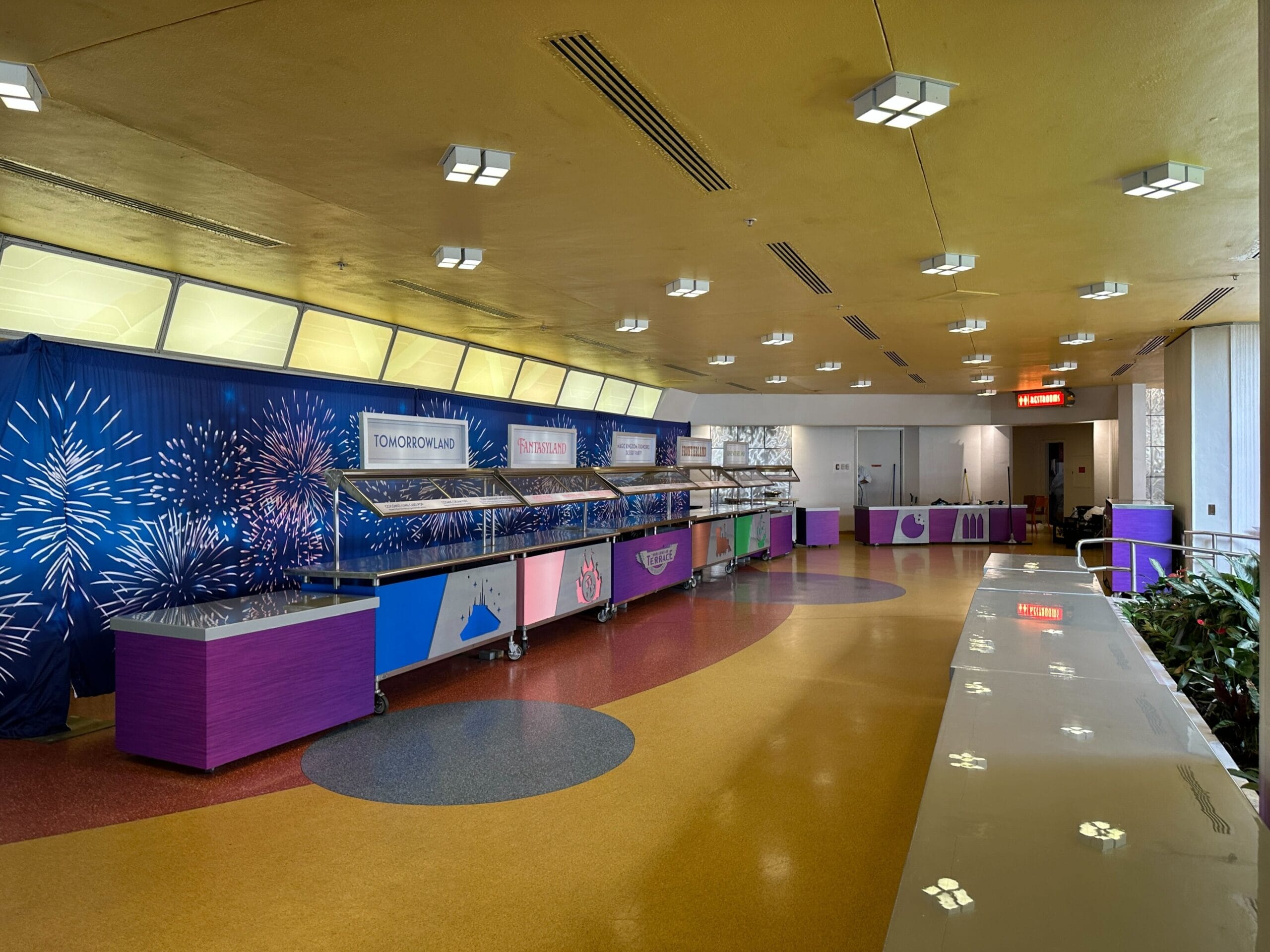 The food stations in Tomorrowland Terrace, where the event is held, are set up all day long (without the food, of course). There is also a large blue curtain with fireworks that act as the backdrop. Reservations can be made online.