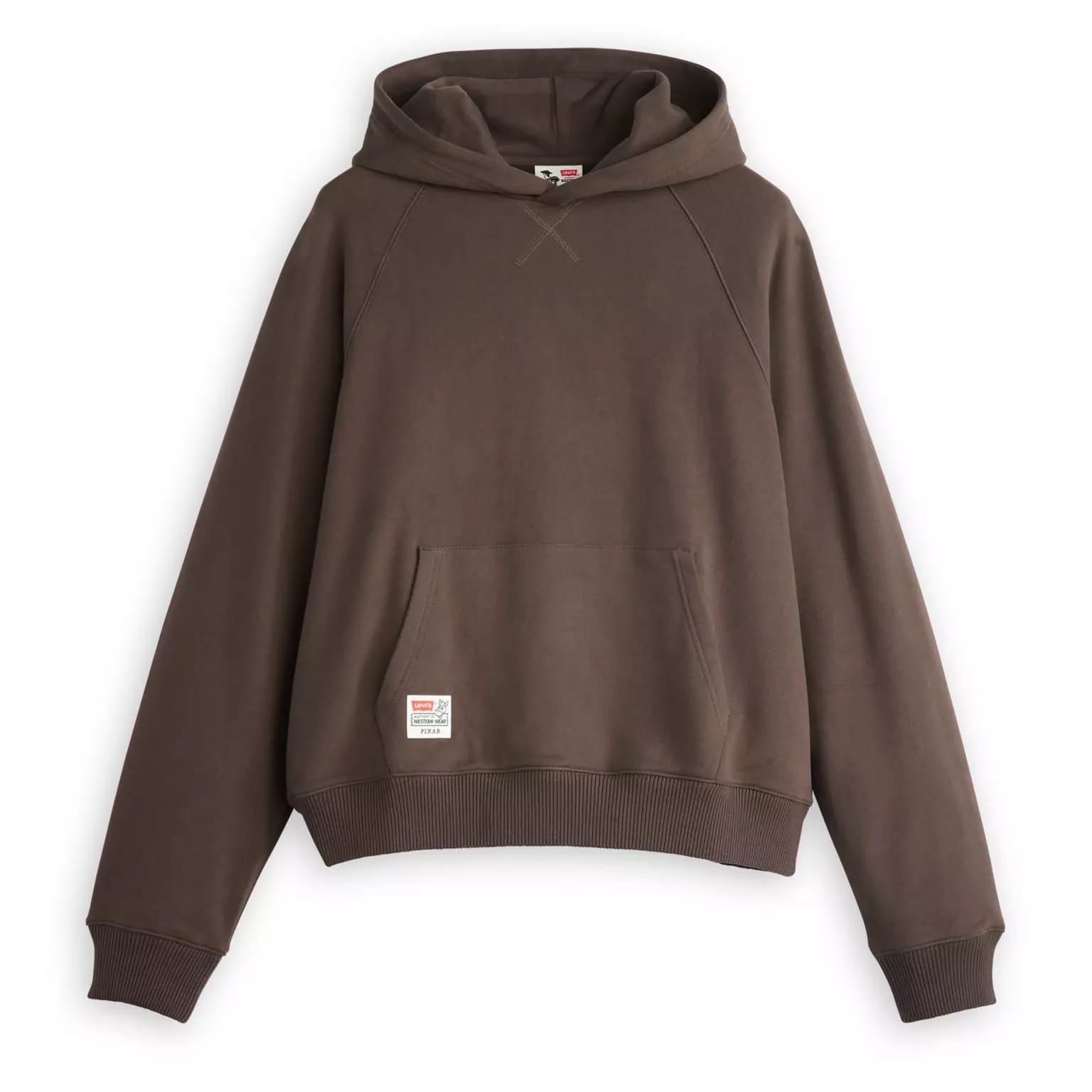 This simple brown hoodie is plain on the front, with the exception of the patch and a front pocket, and features the same Woody Saddleman image as seen on the red t-shirt.