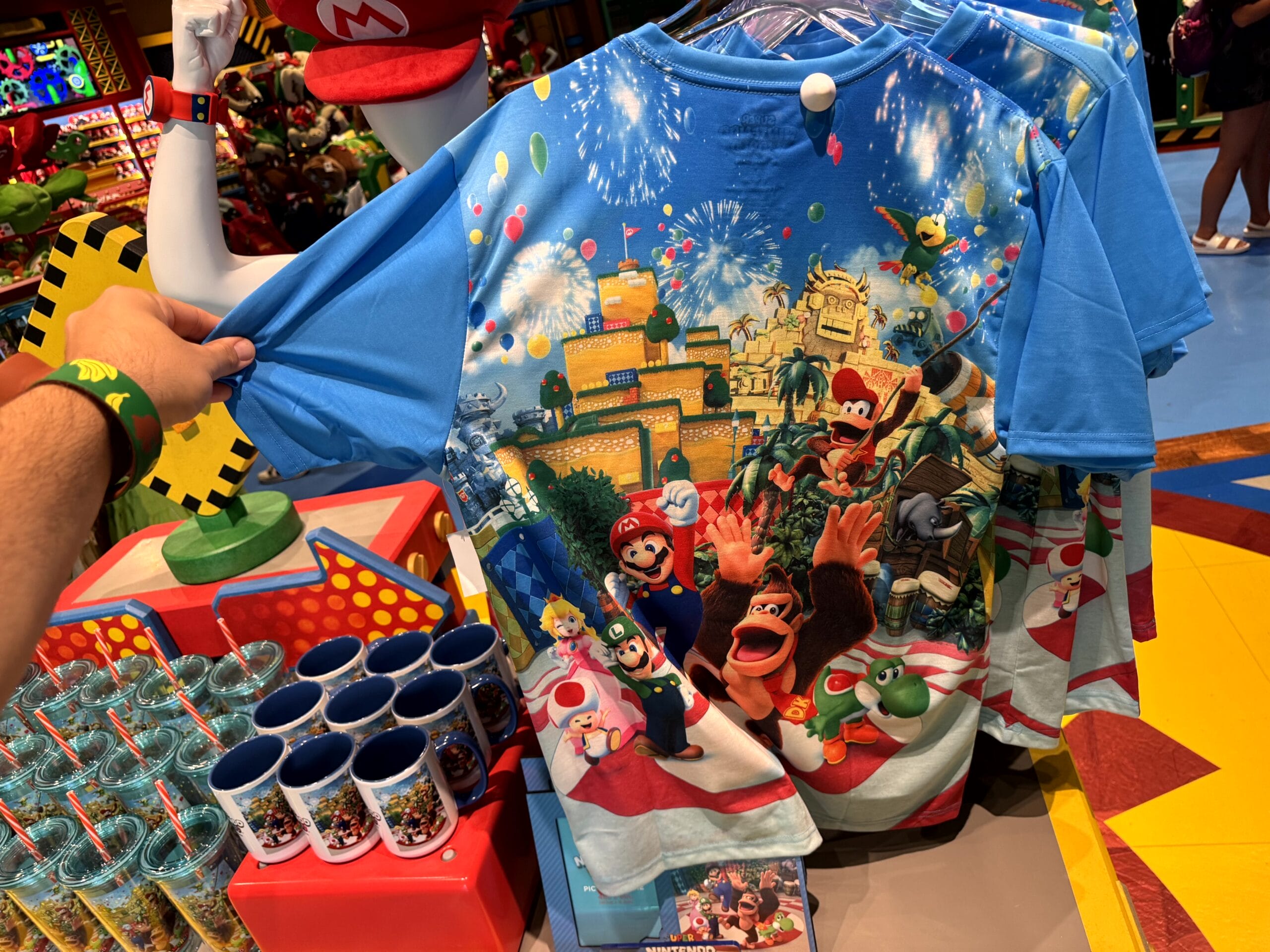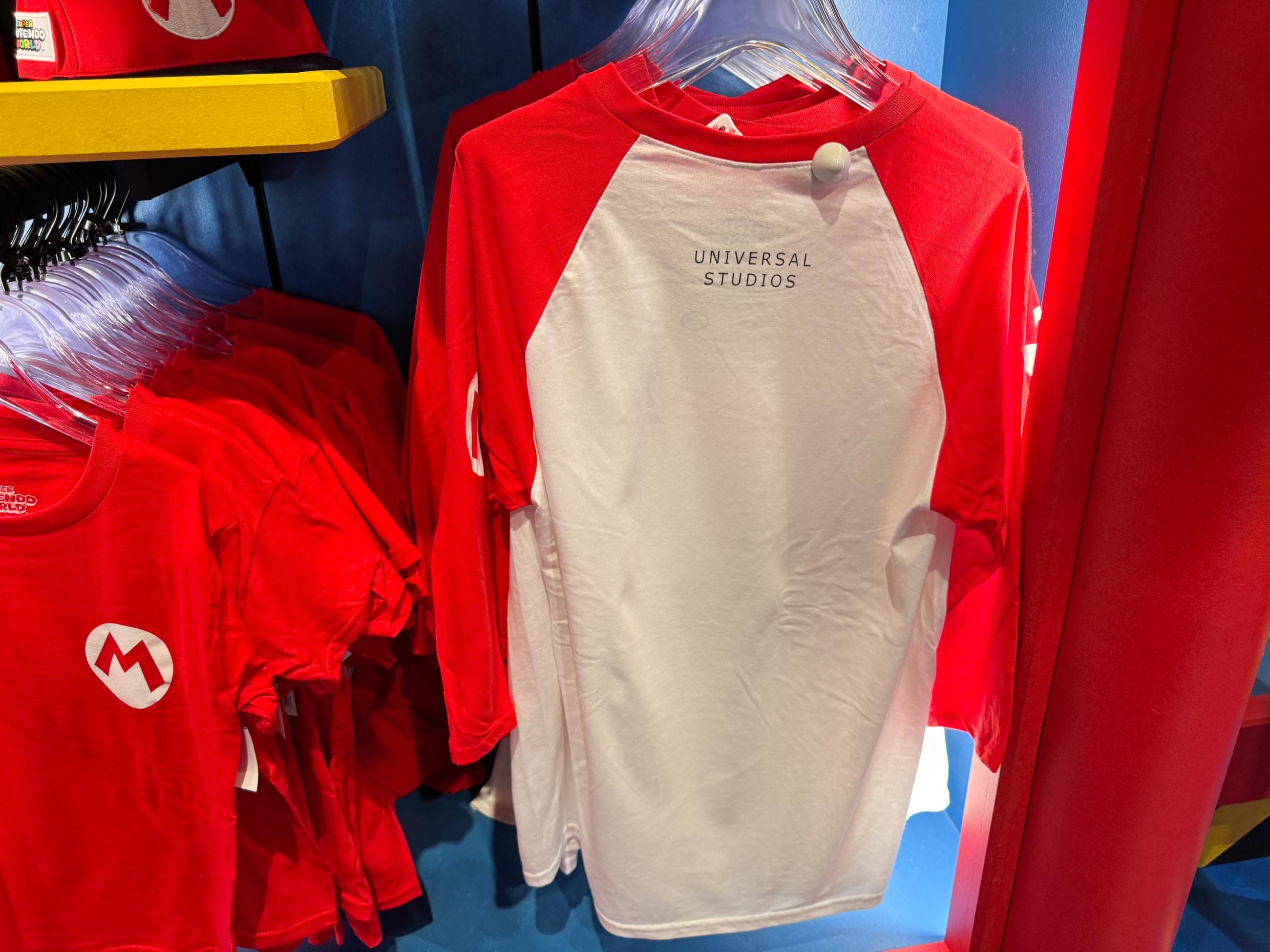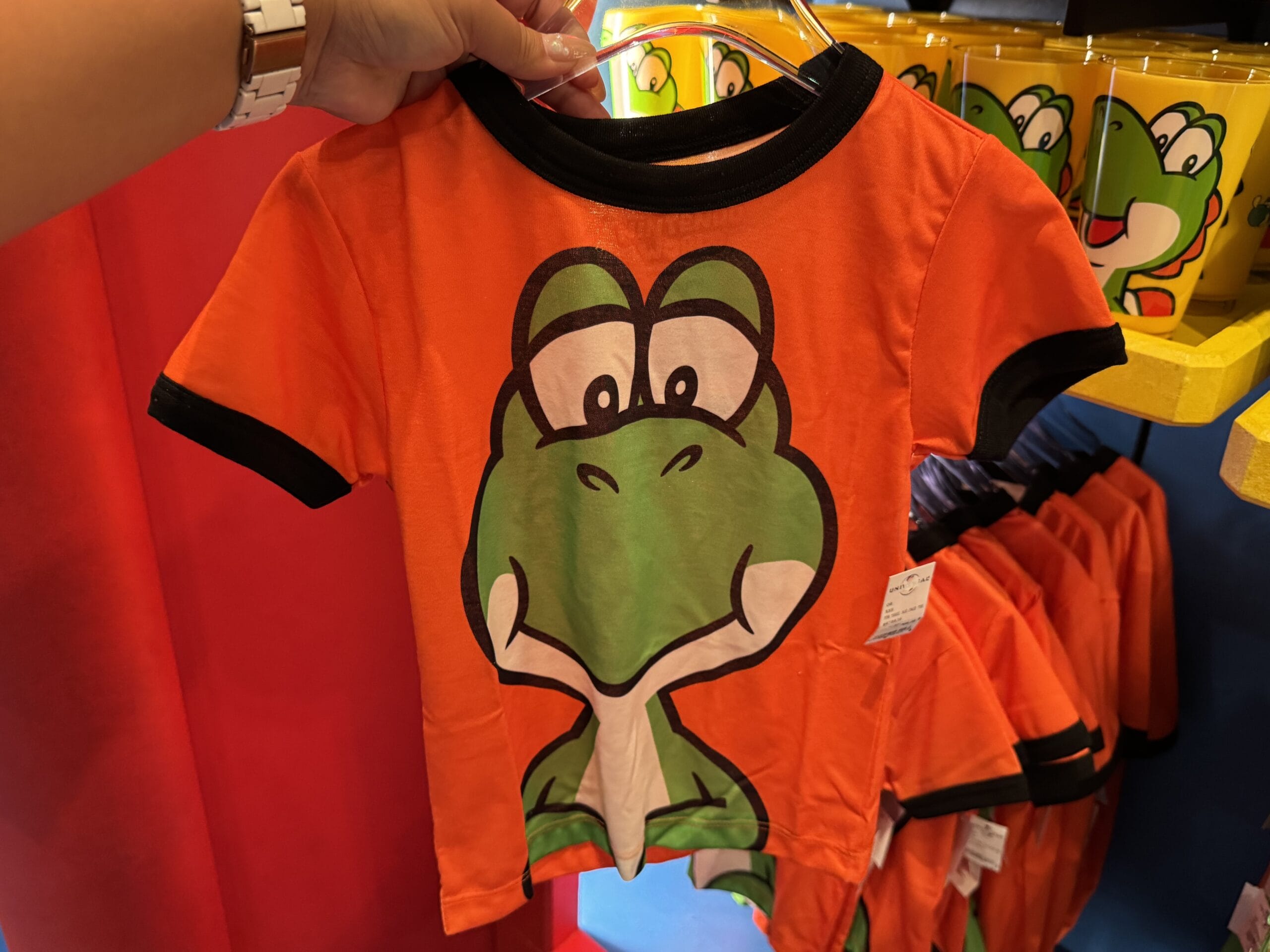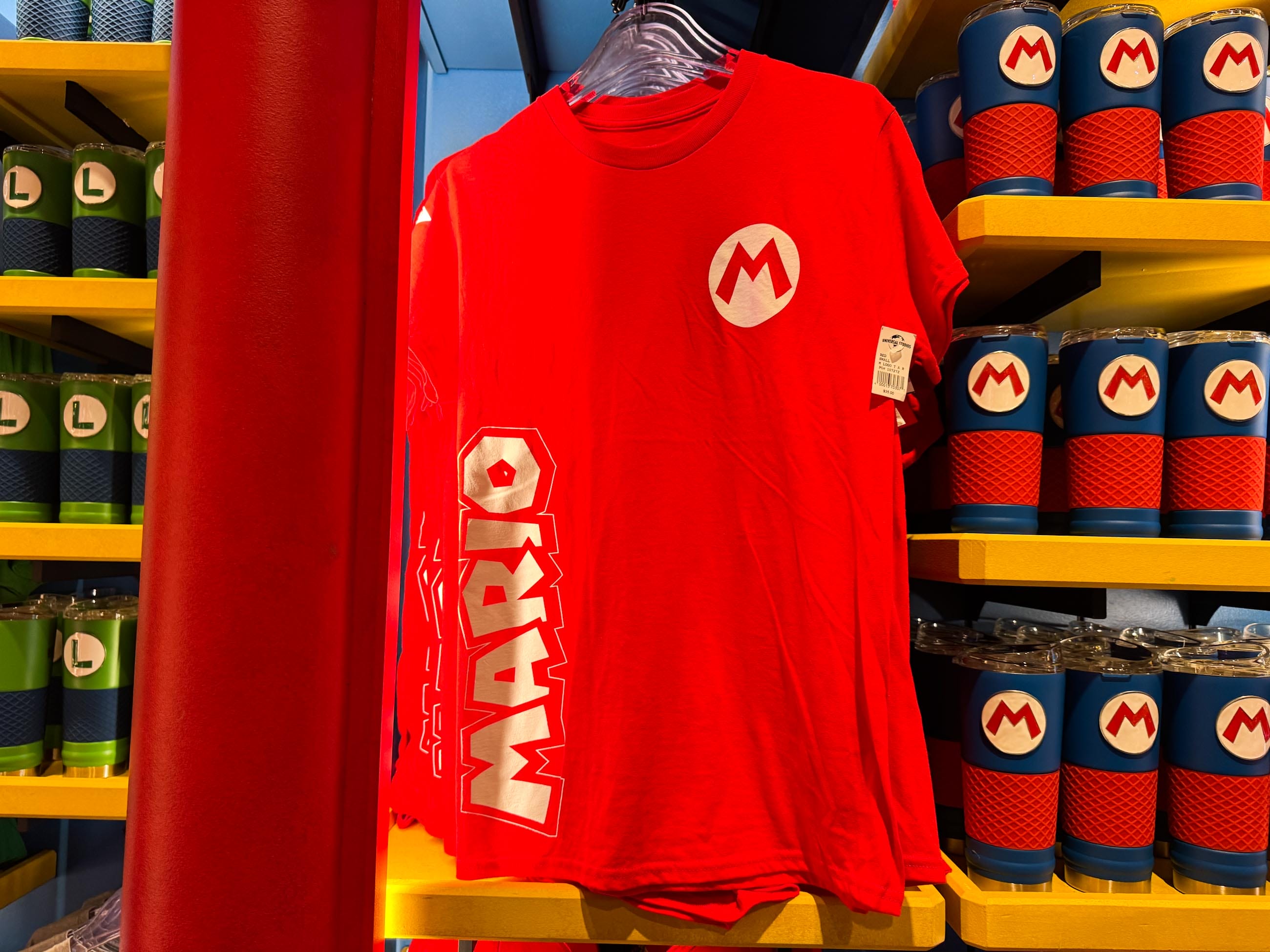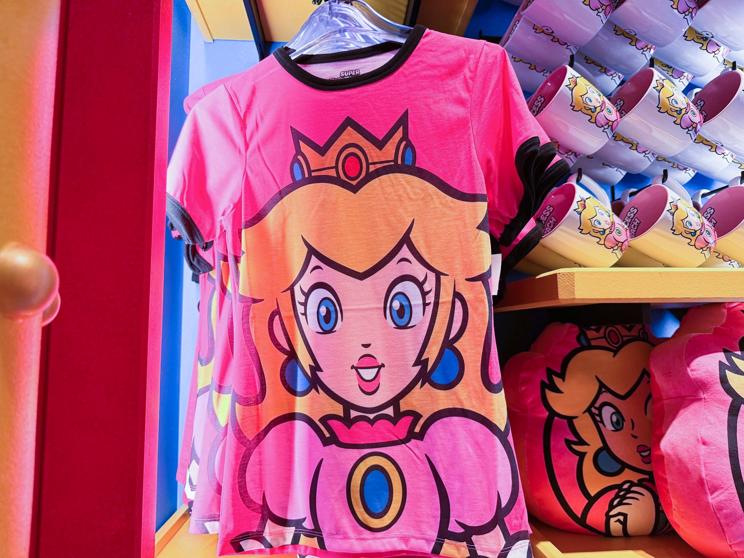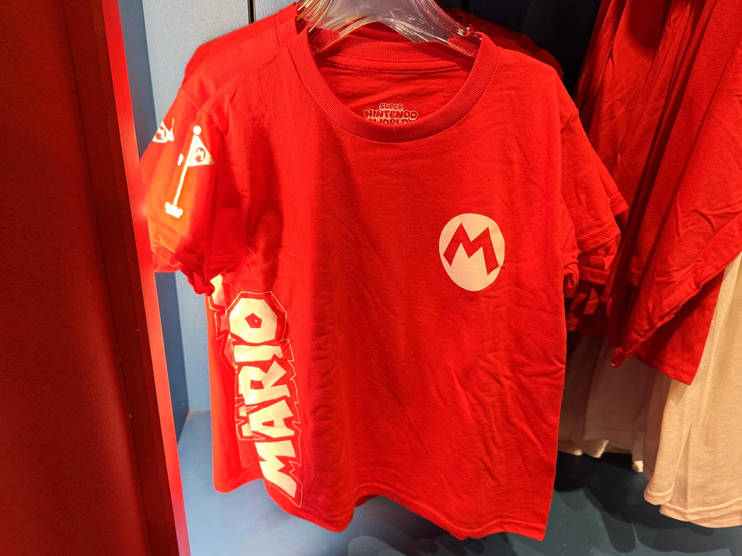The pink t-shirt similarly has the Super Nintendo World and “Universal Orlando Resort.”