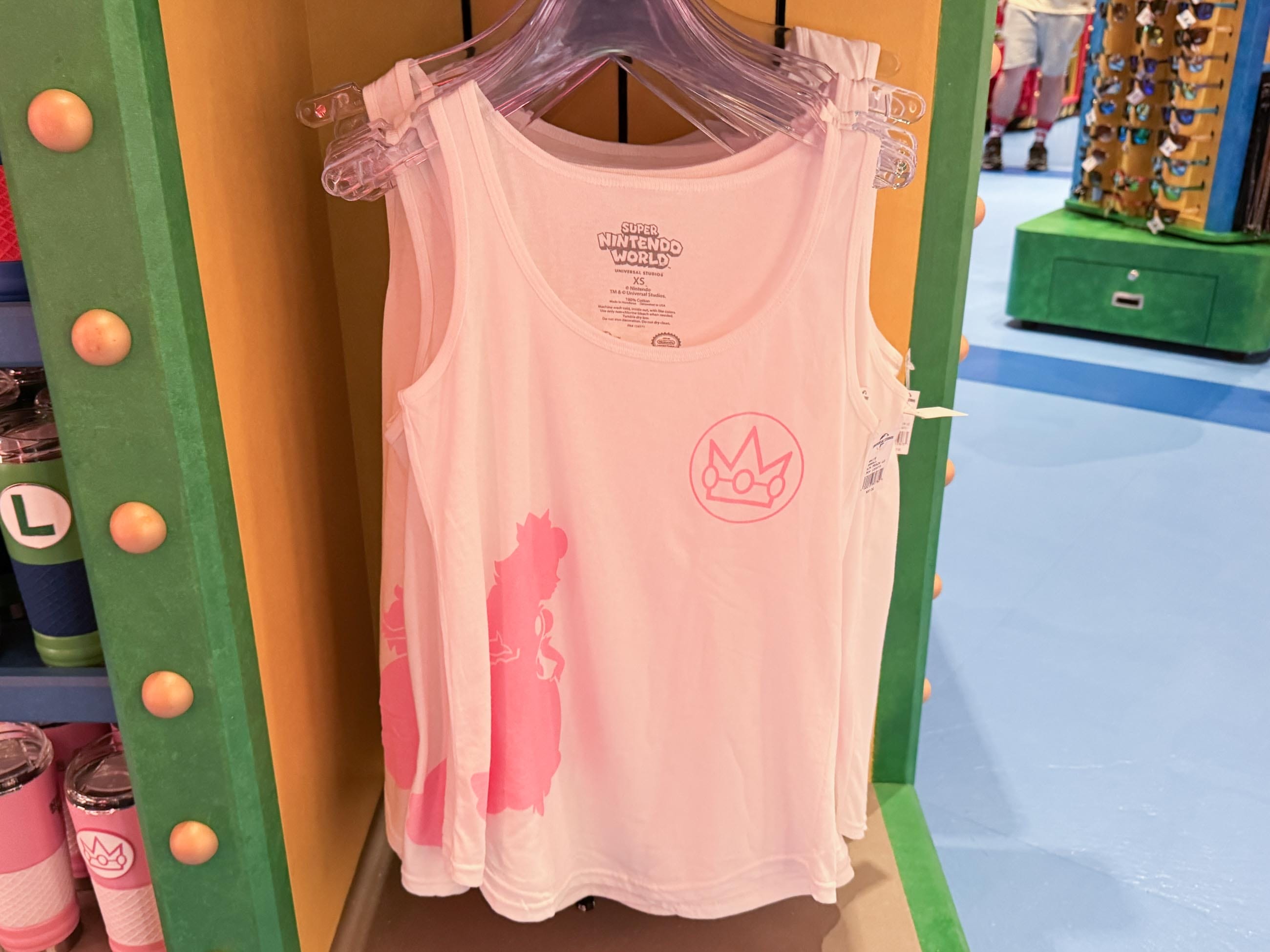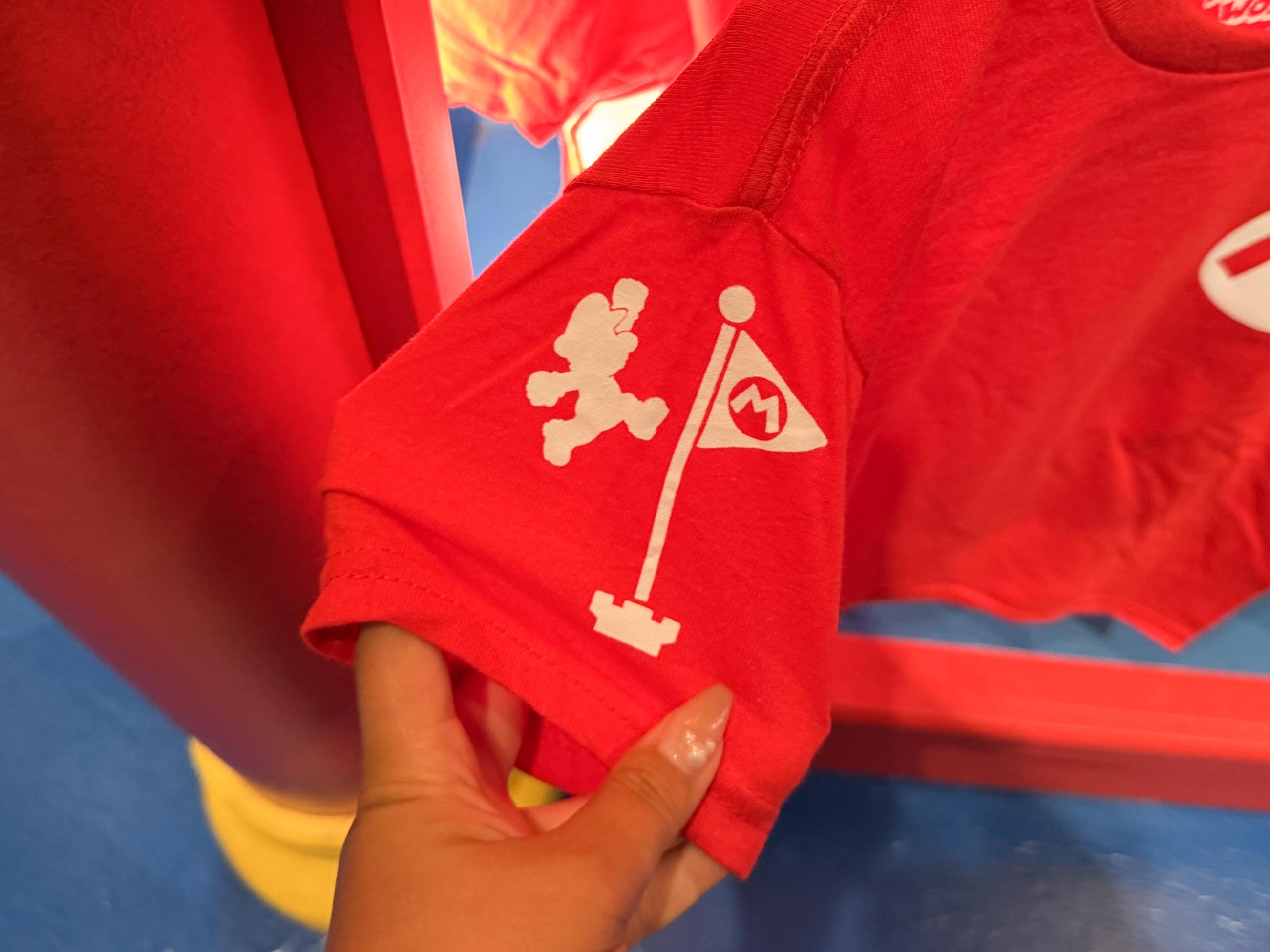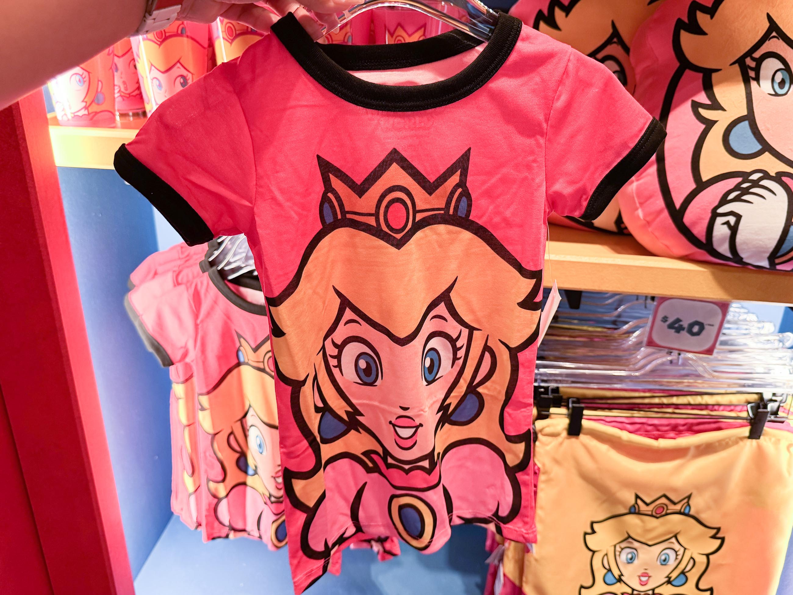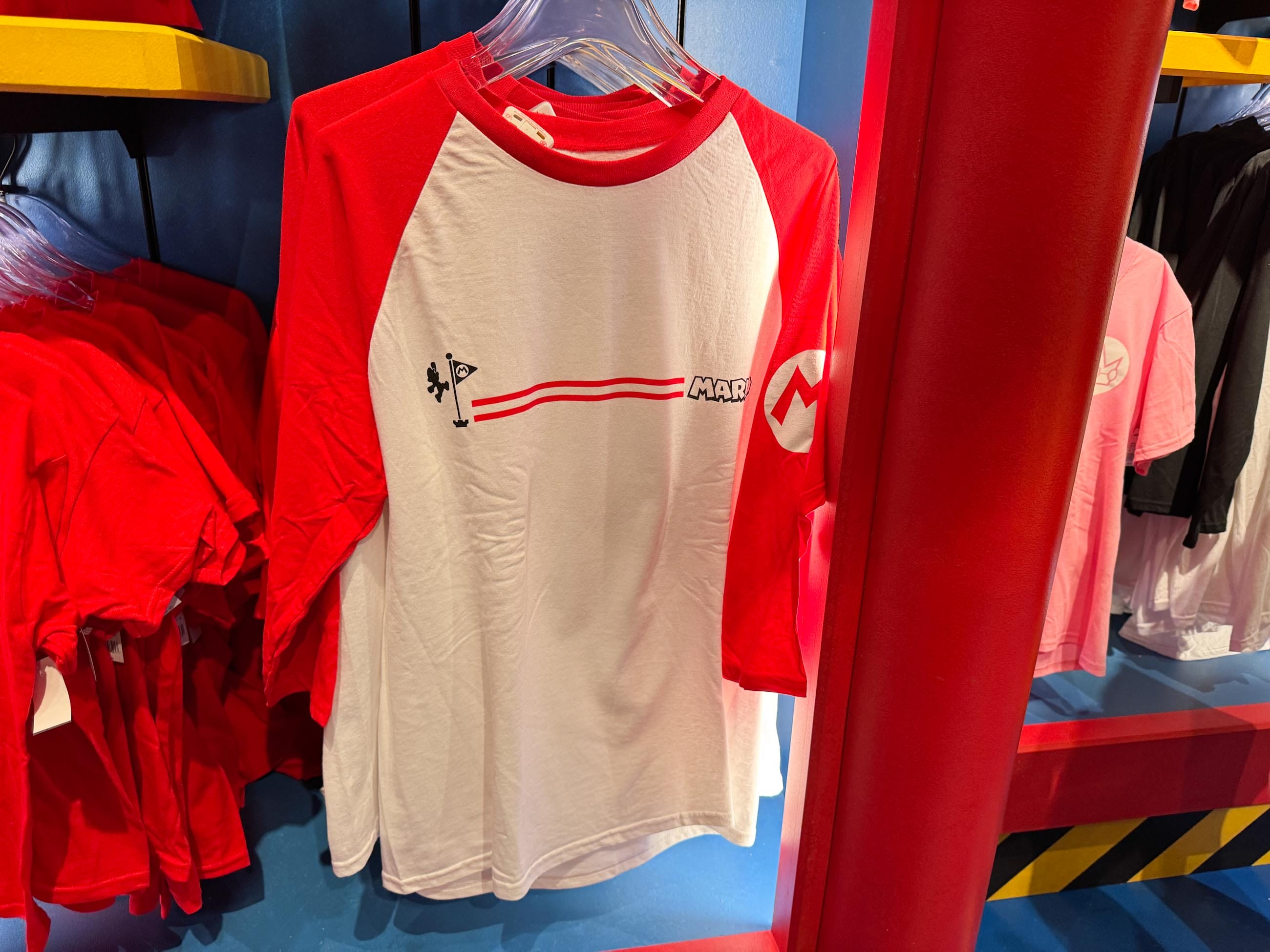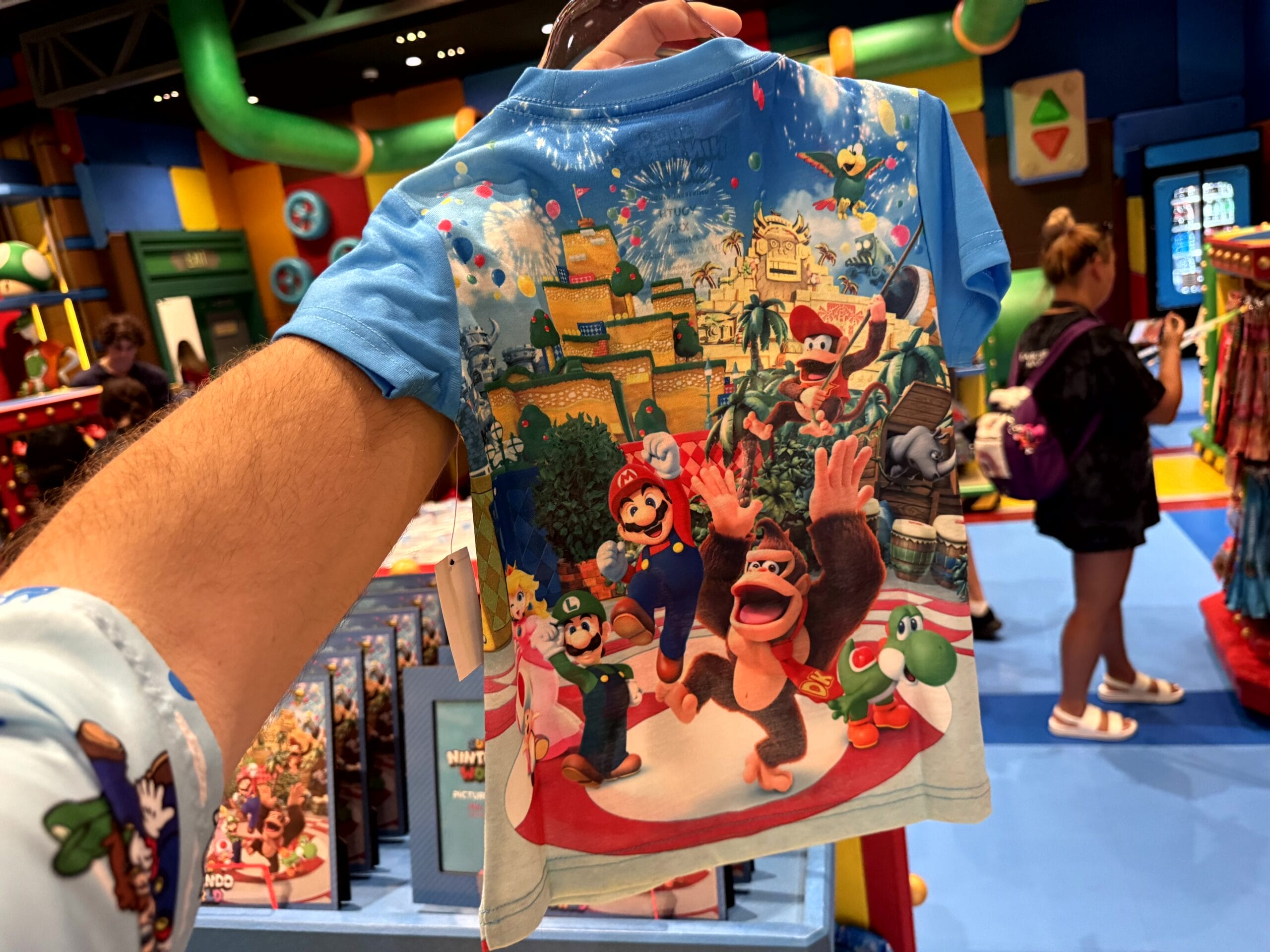 The pink t-shirt similarly has the Super Nintendo World and “Universal Orlando Resort.”