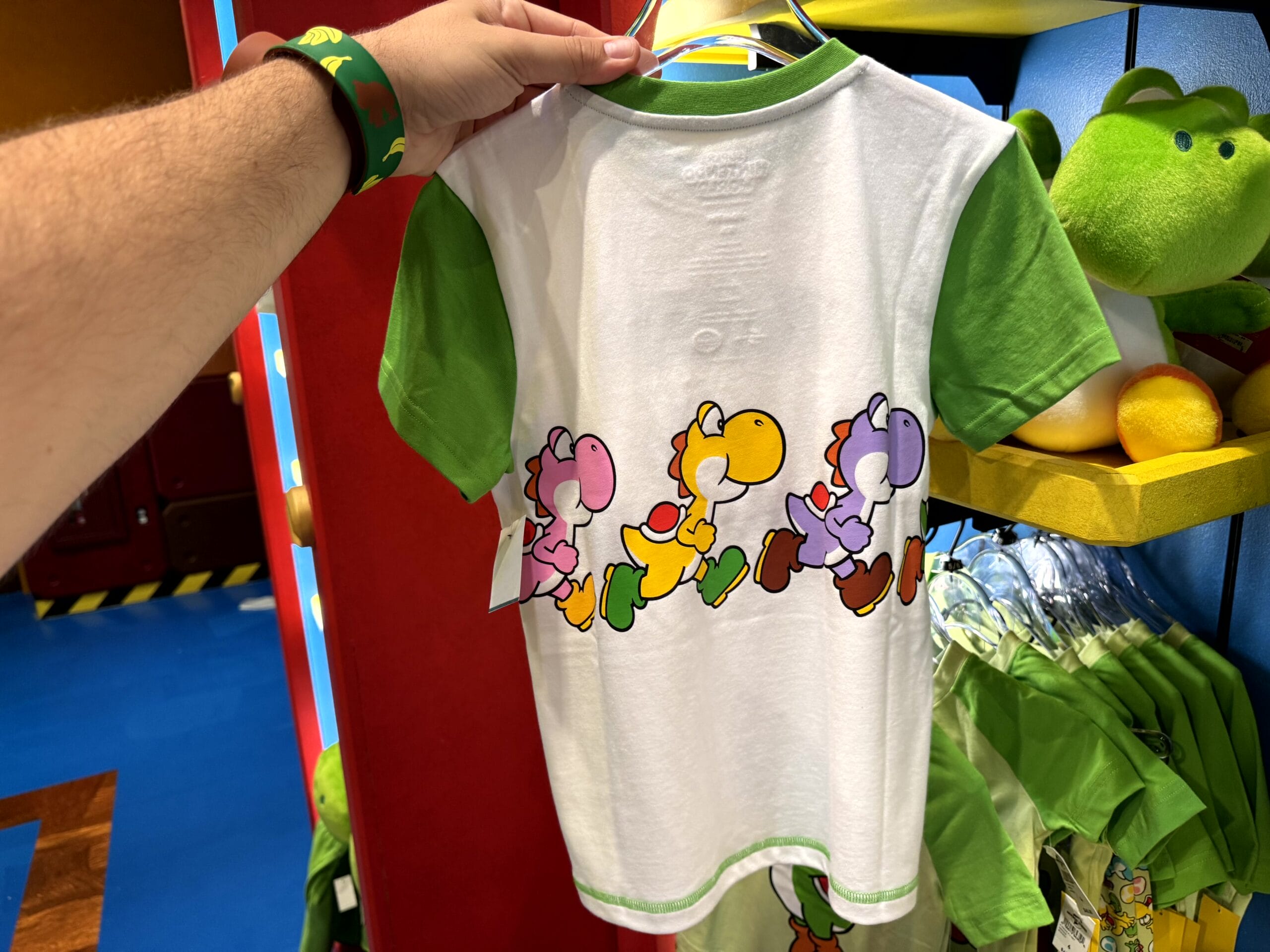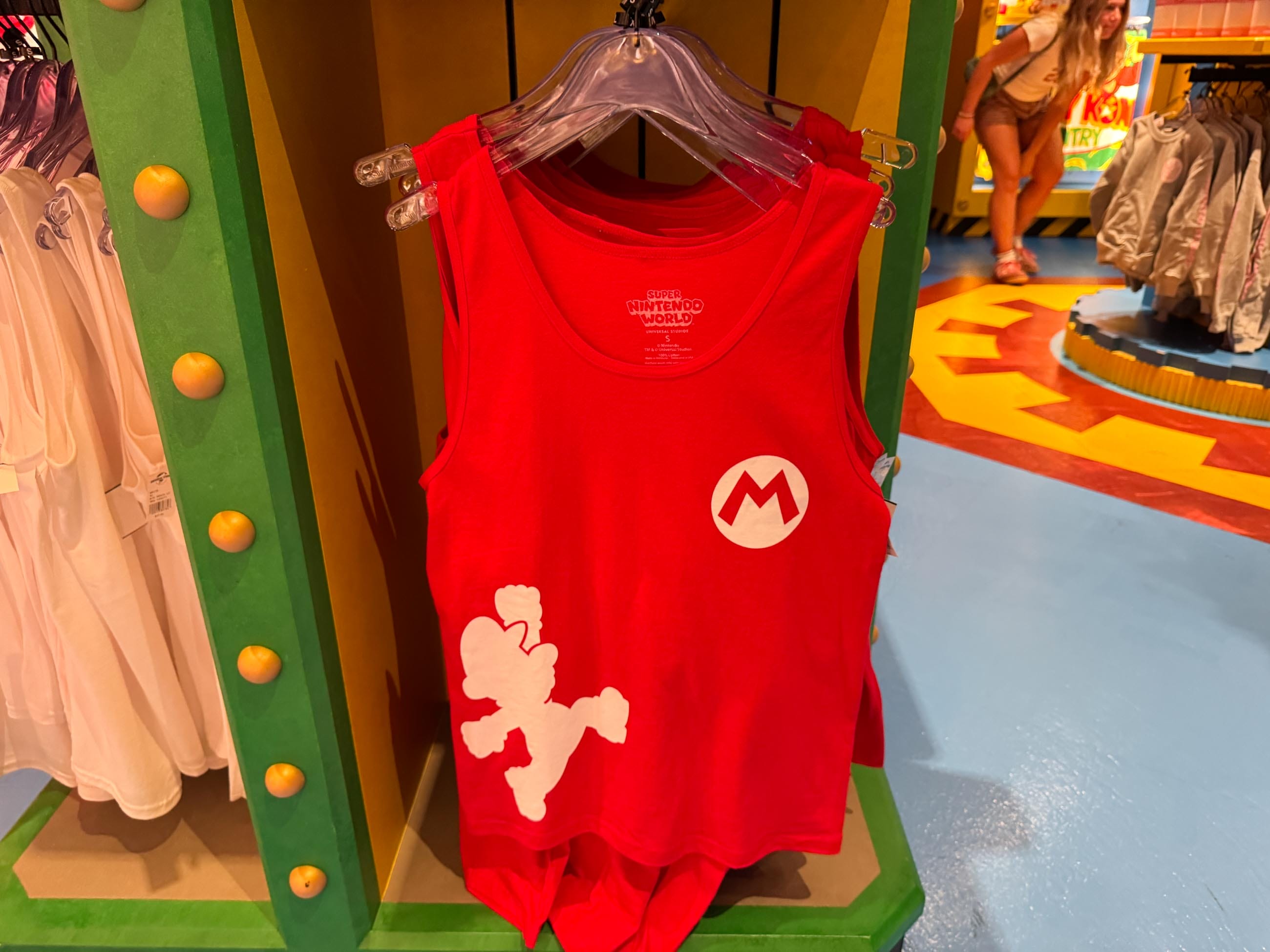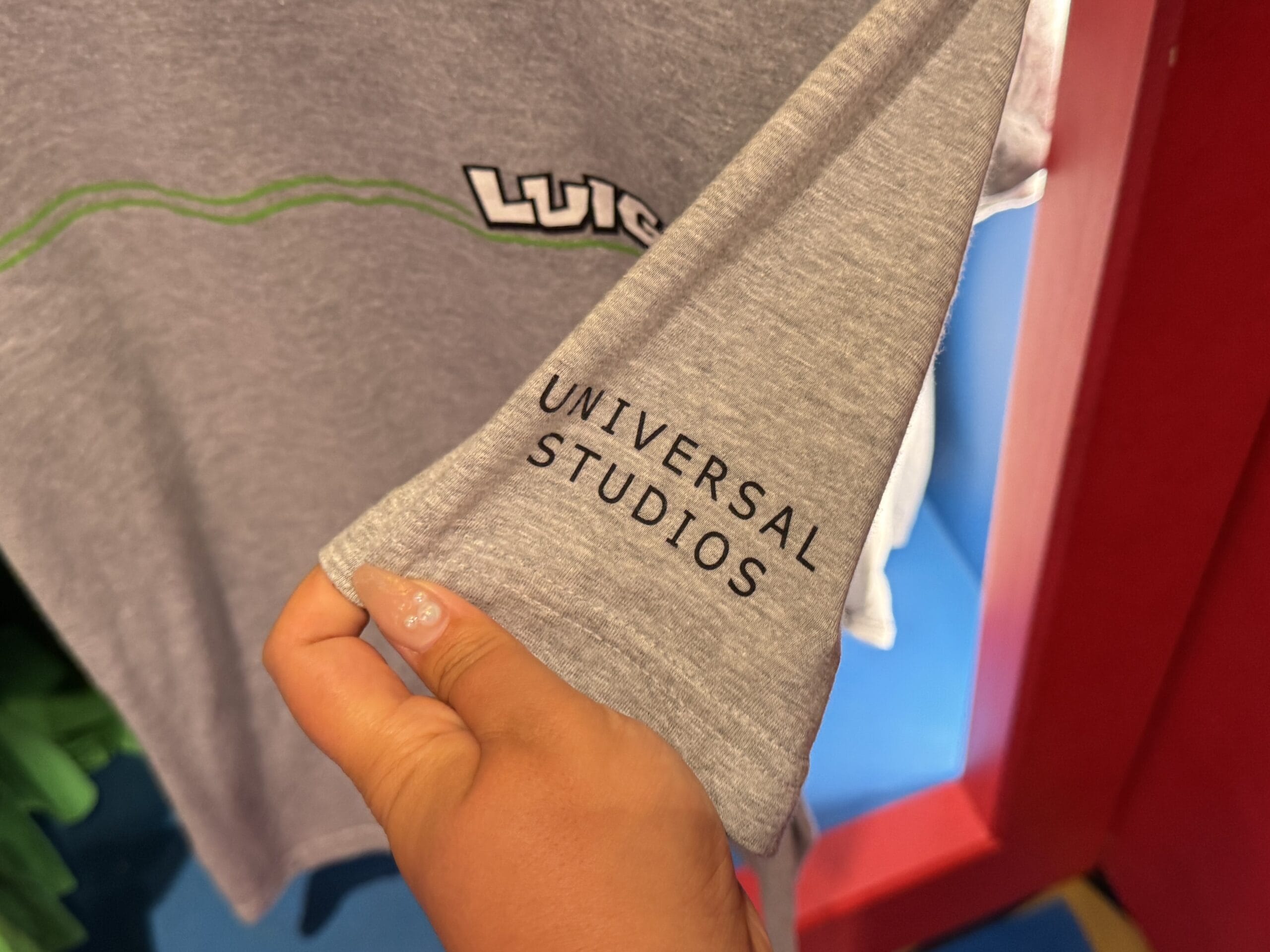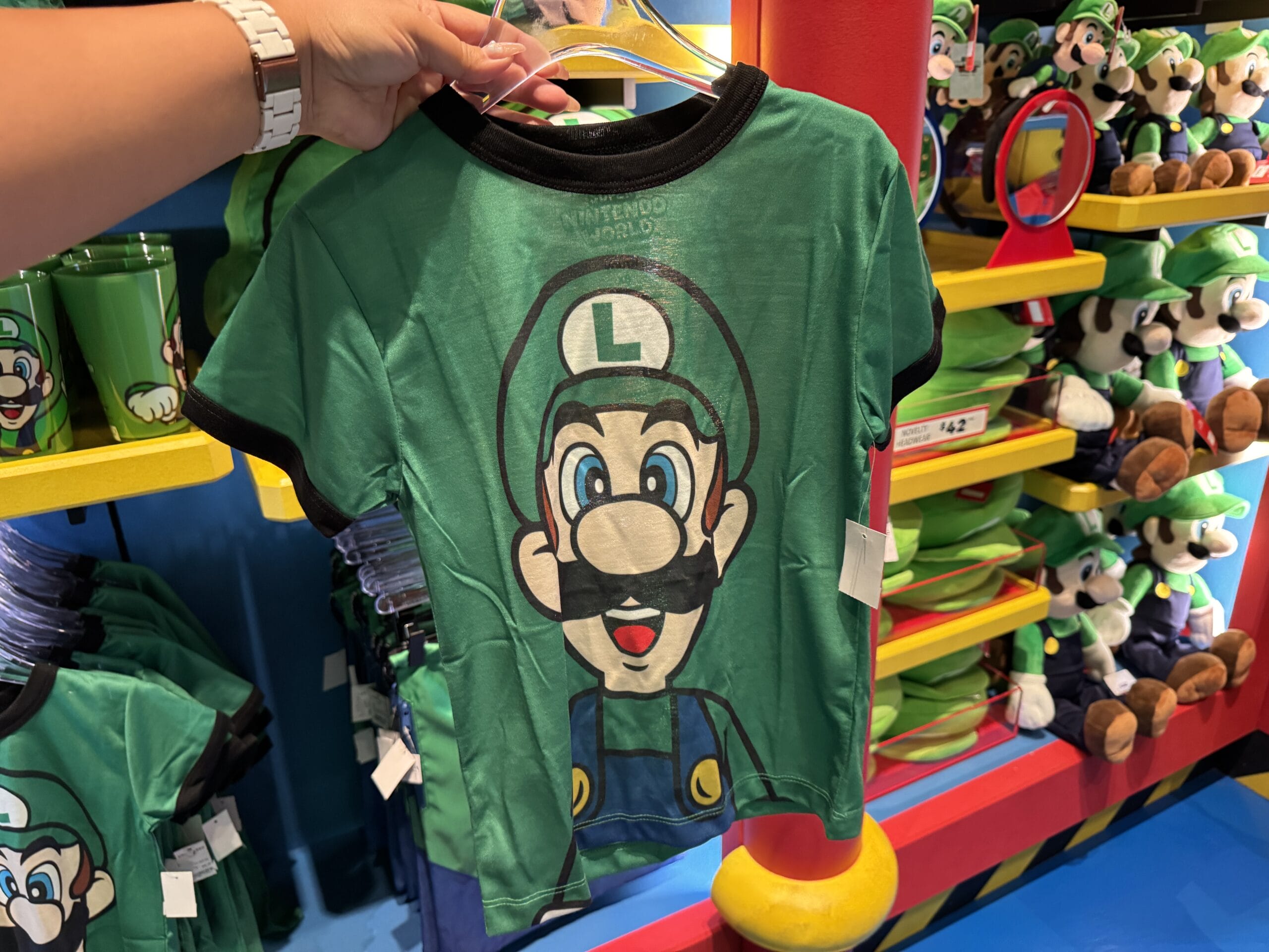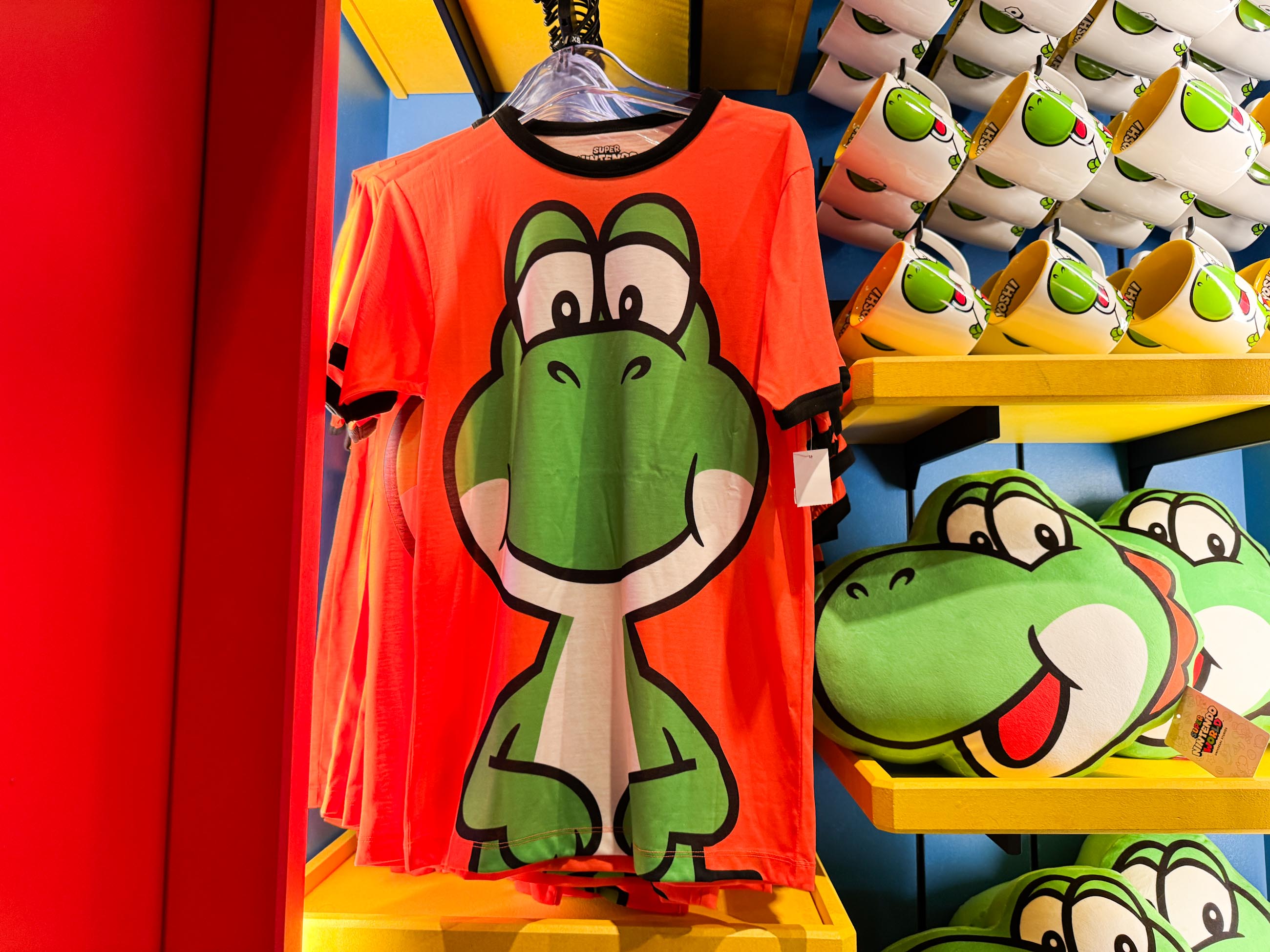 The pink t-shirt similarly has the Super Nintendo World and “Universal Orlando Resort.”