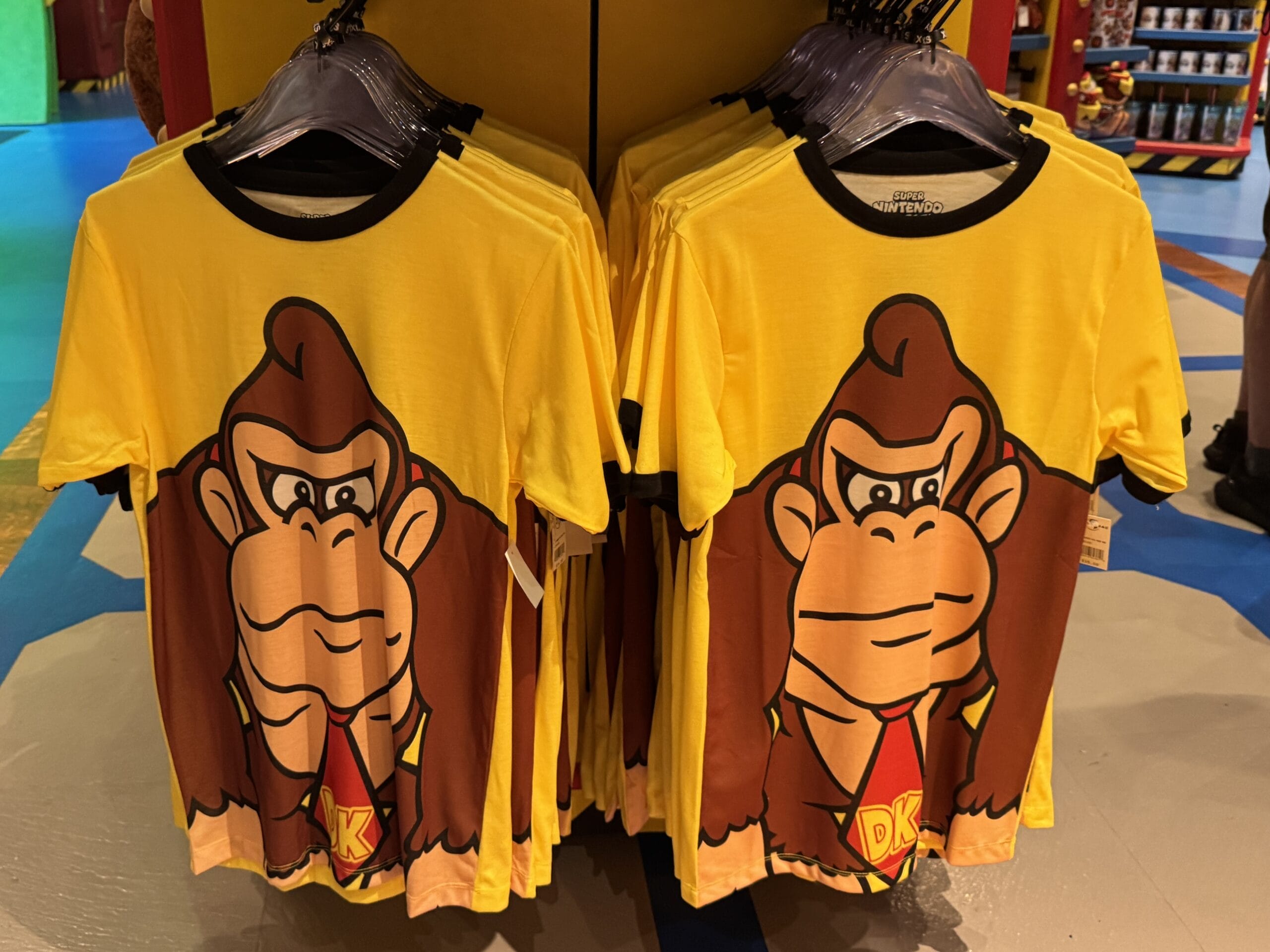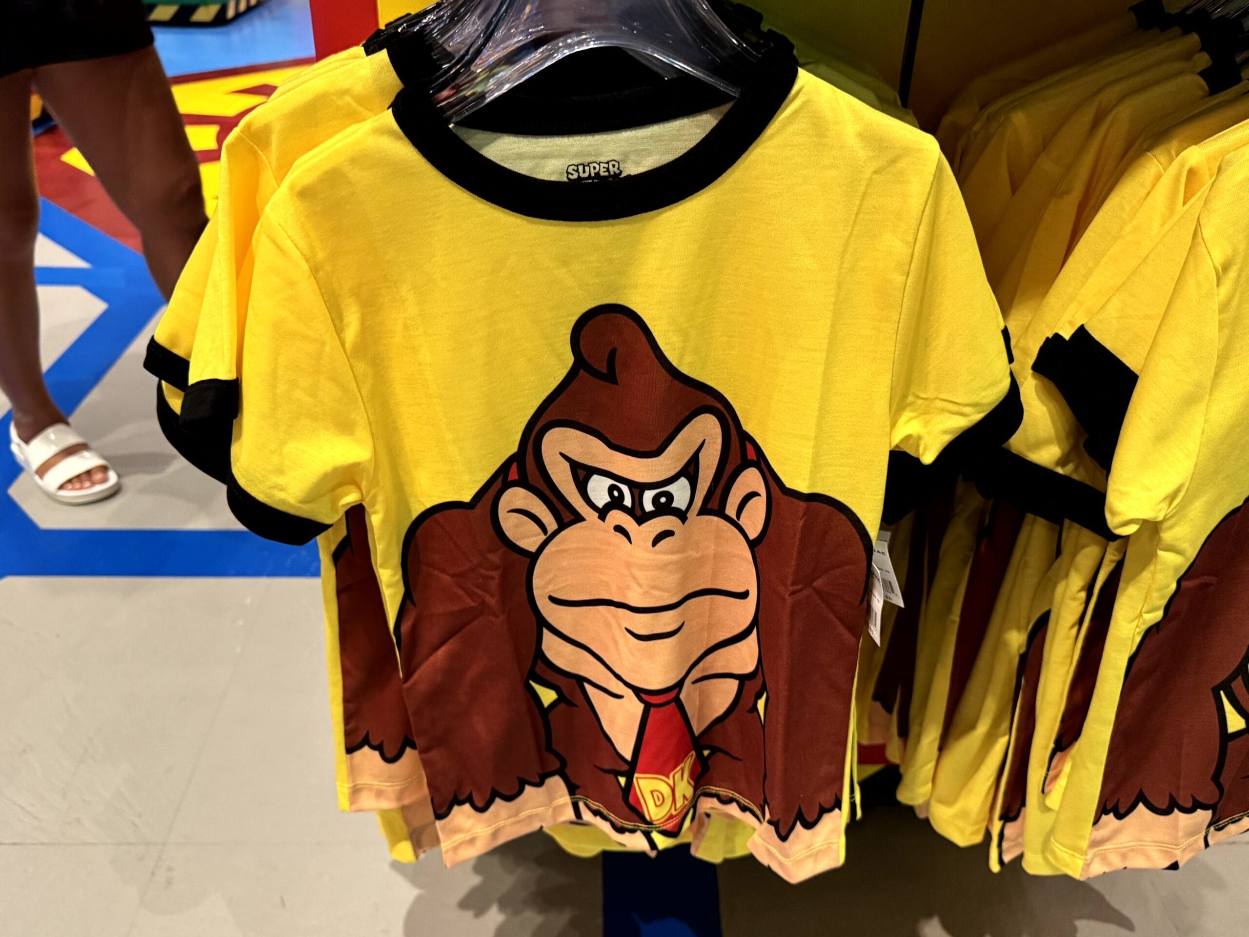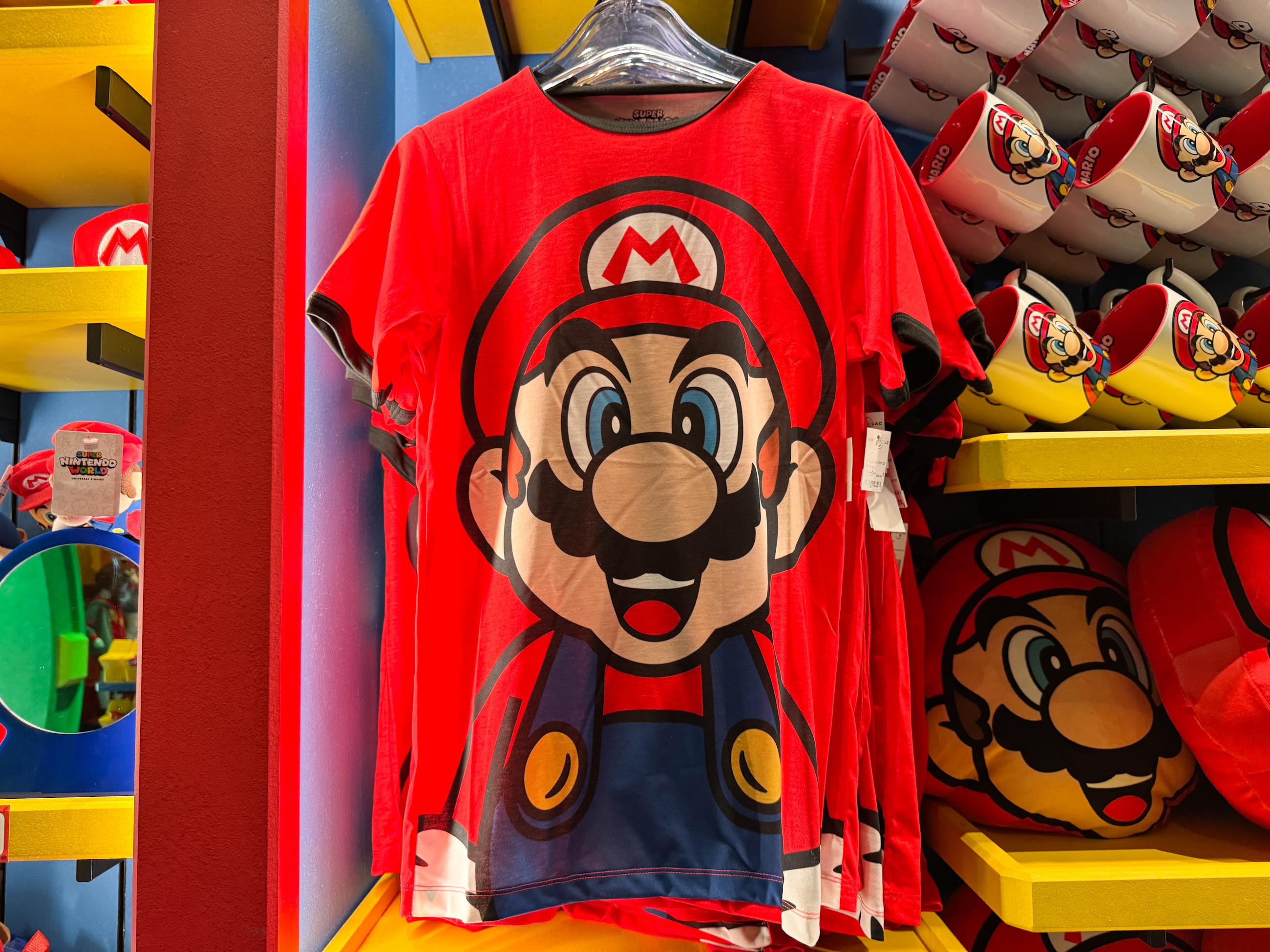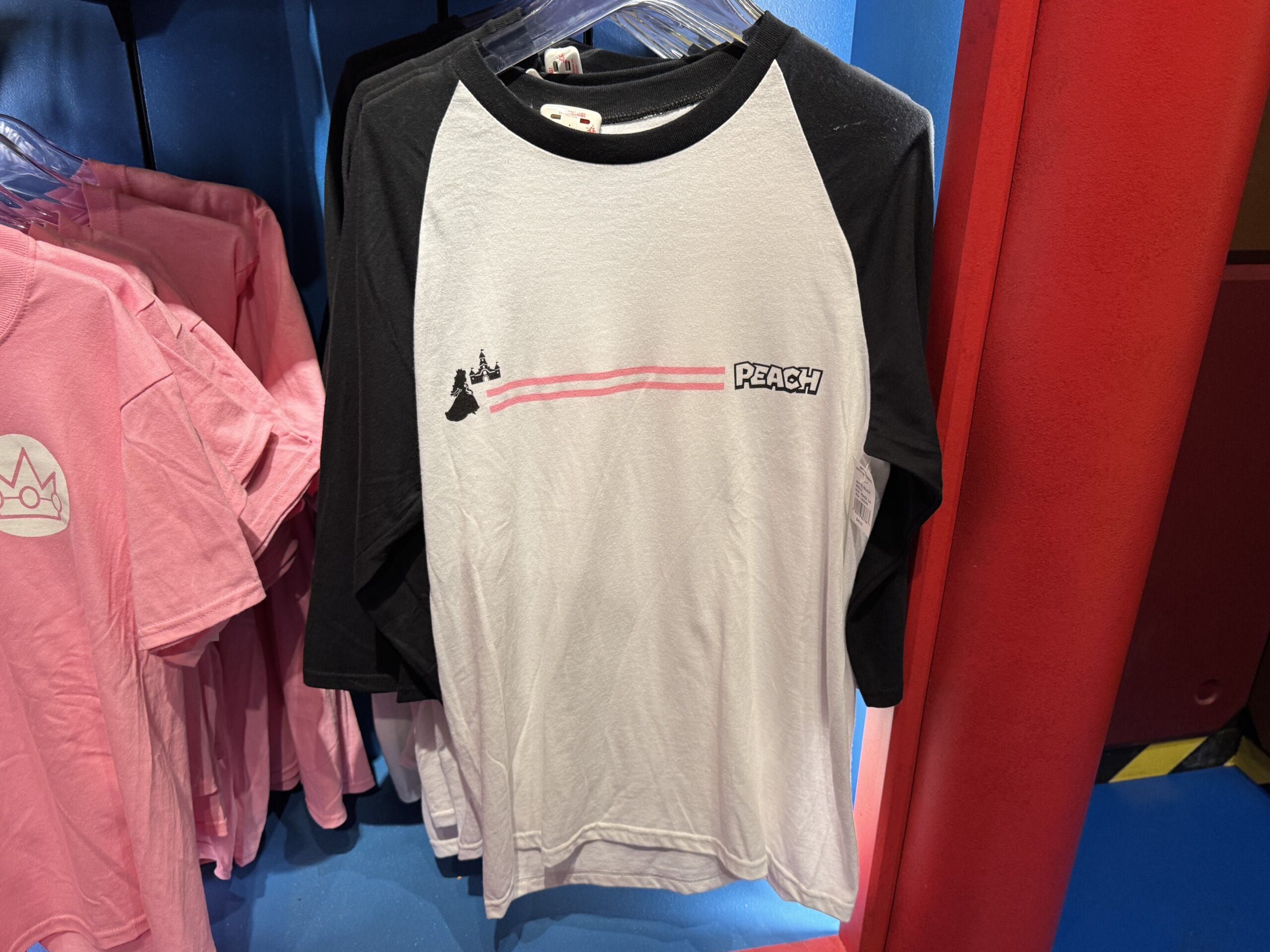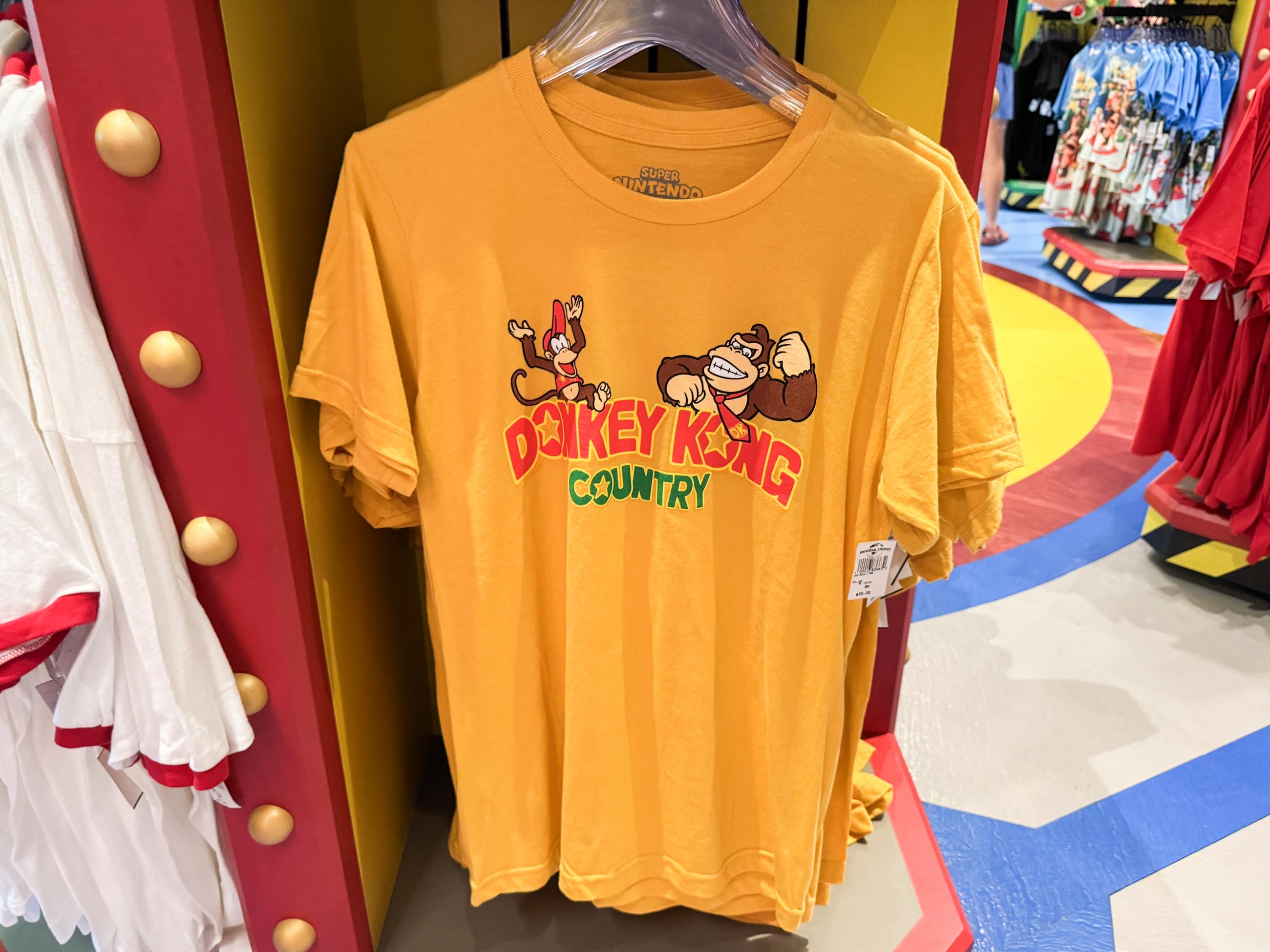 The pink t-shirt similarly has the Super Nintendo World and “Universal Orlando Resort.”