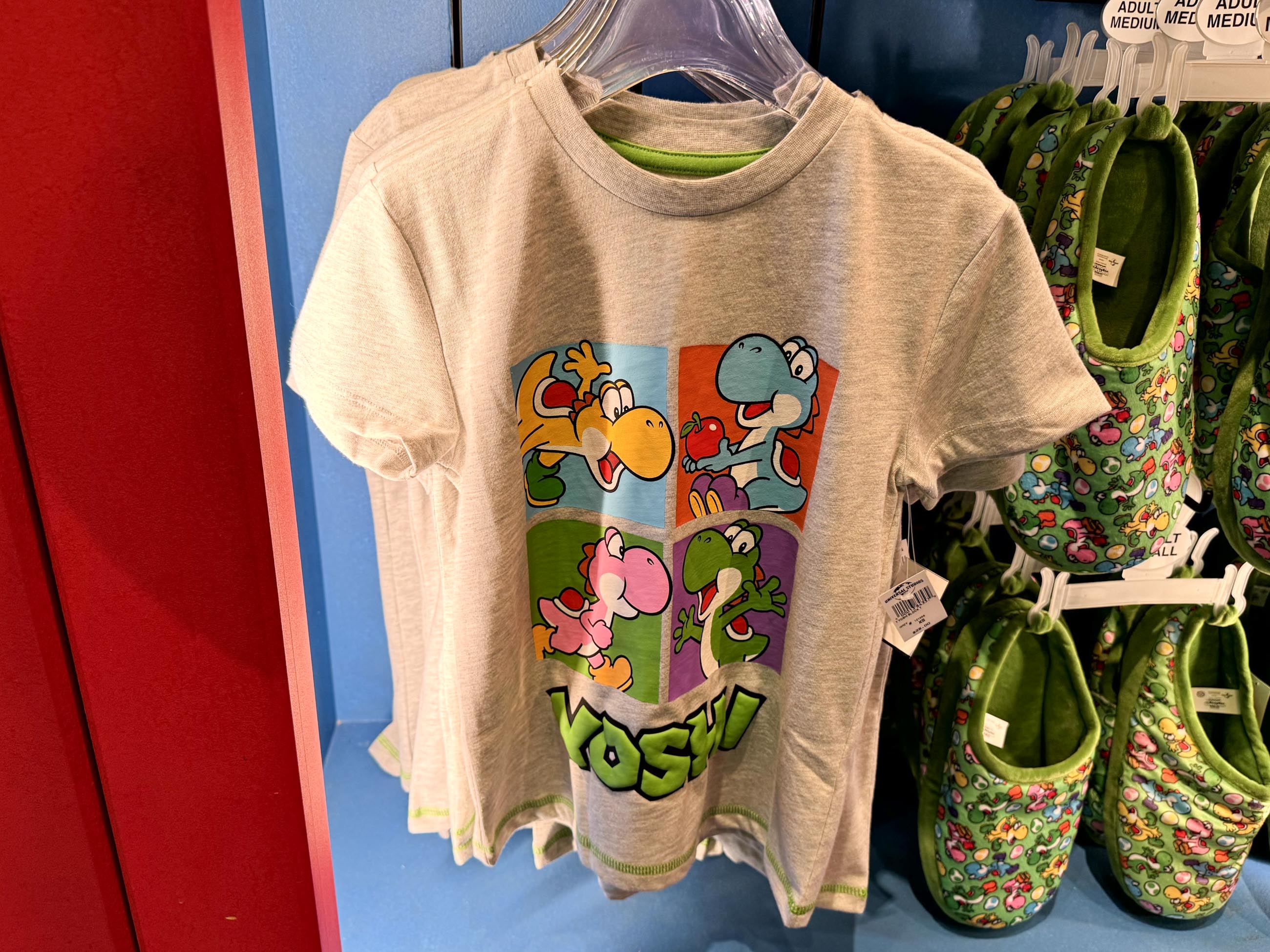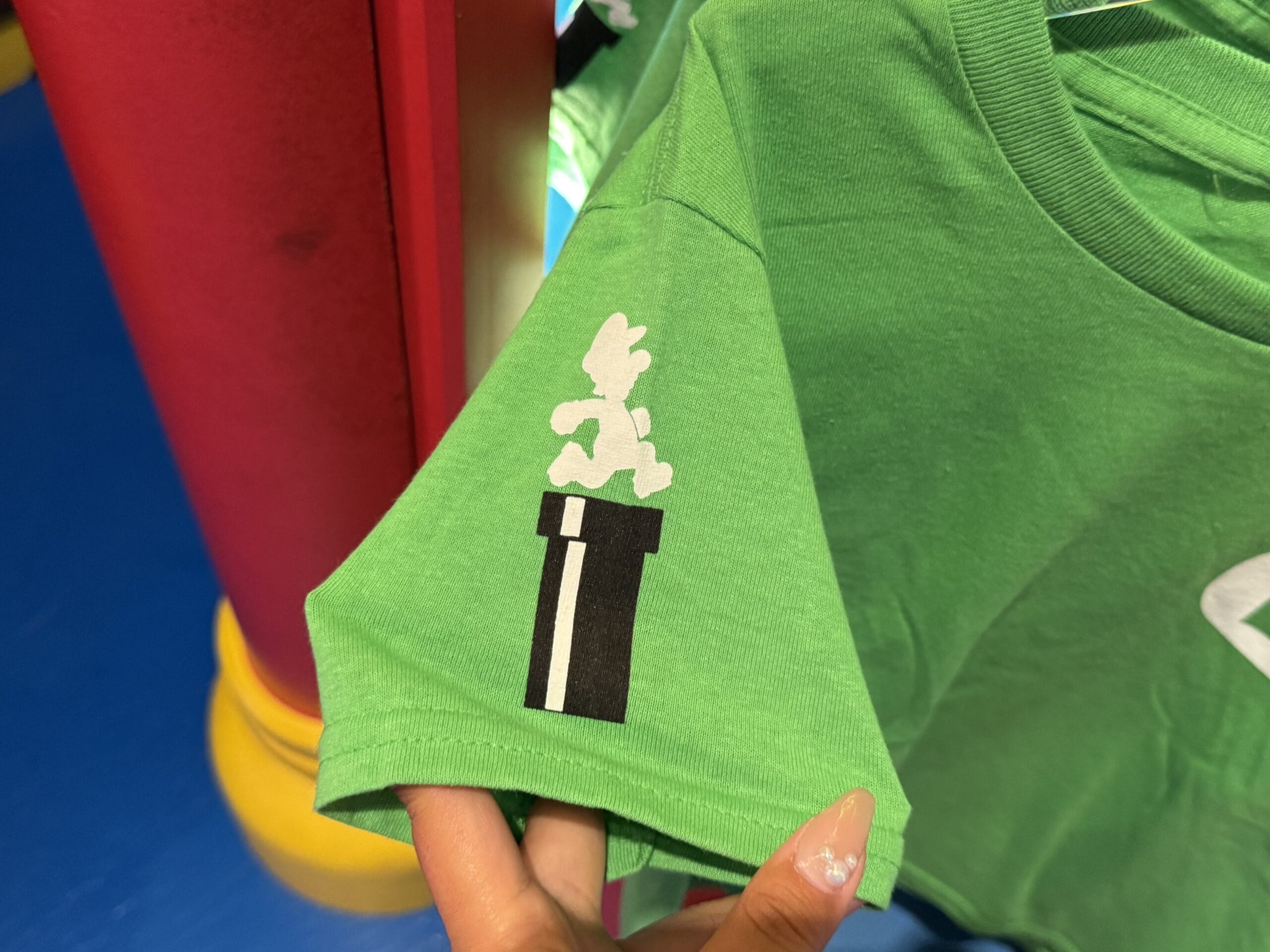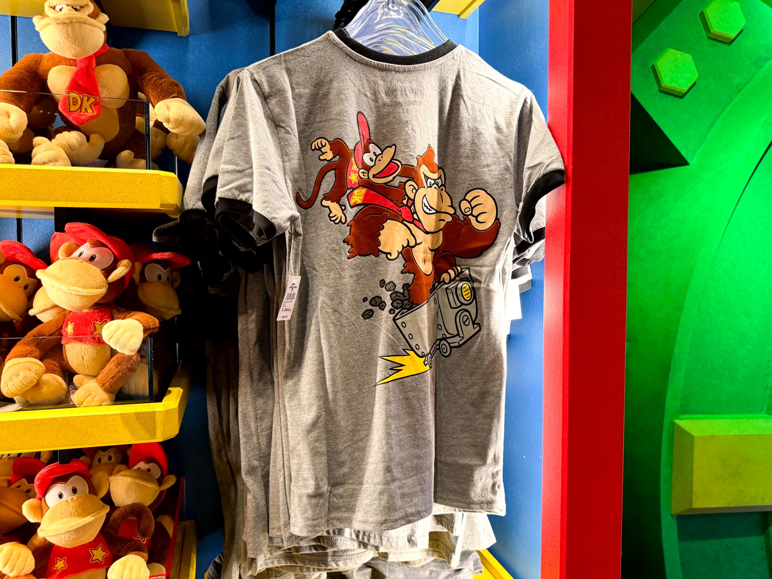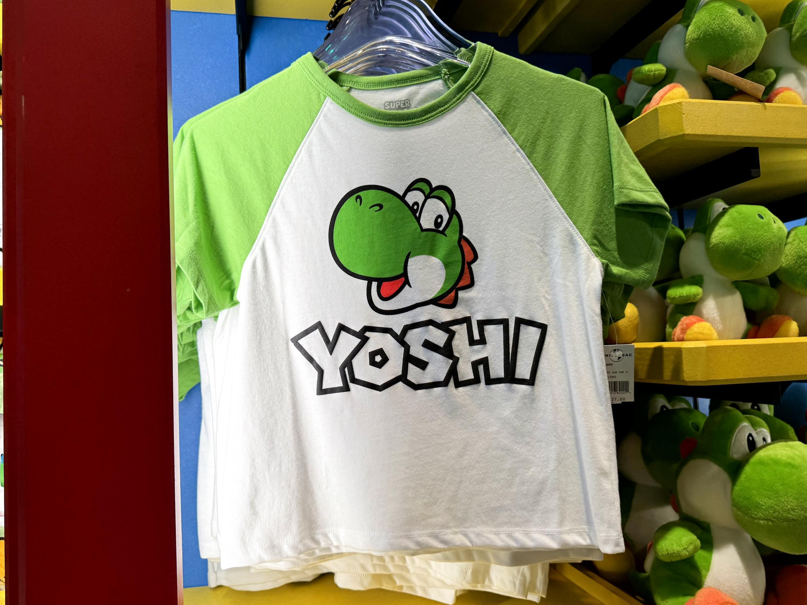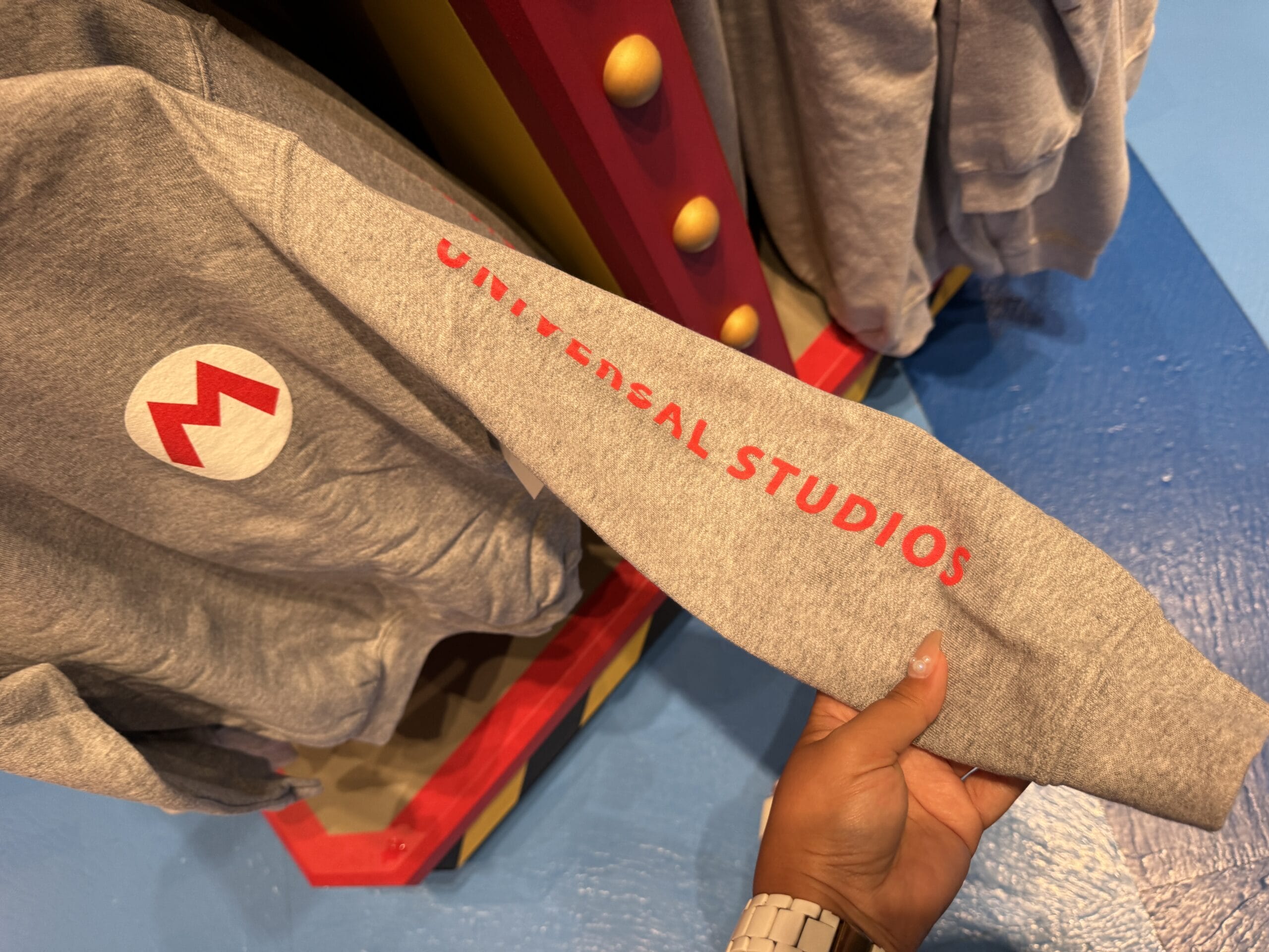 The pink t-shirt similarly has the Super Nintendo World and “Universal Orlando Resort.”