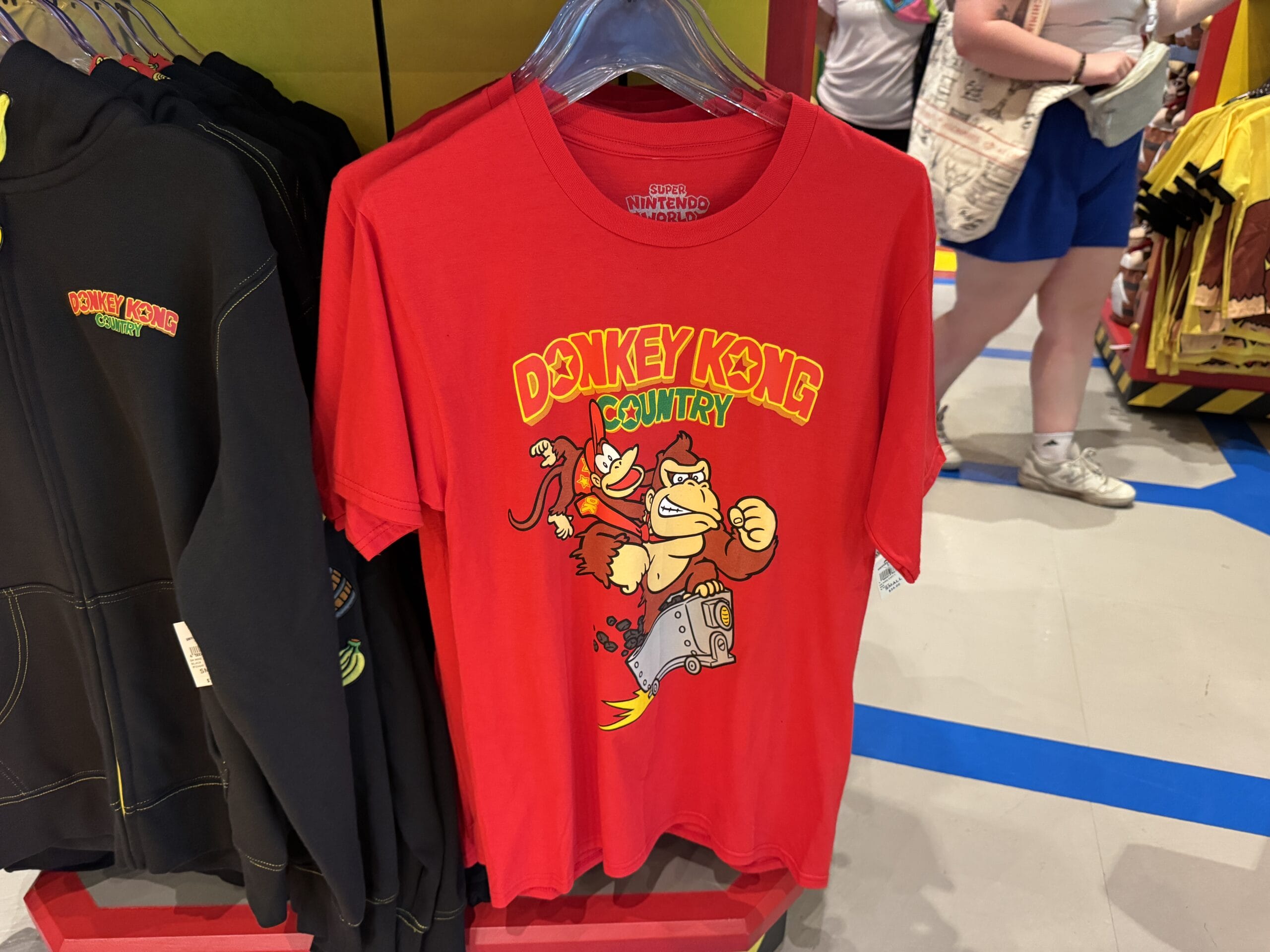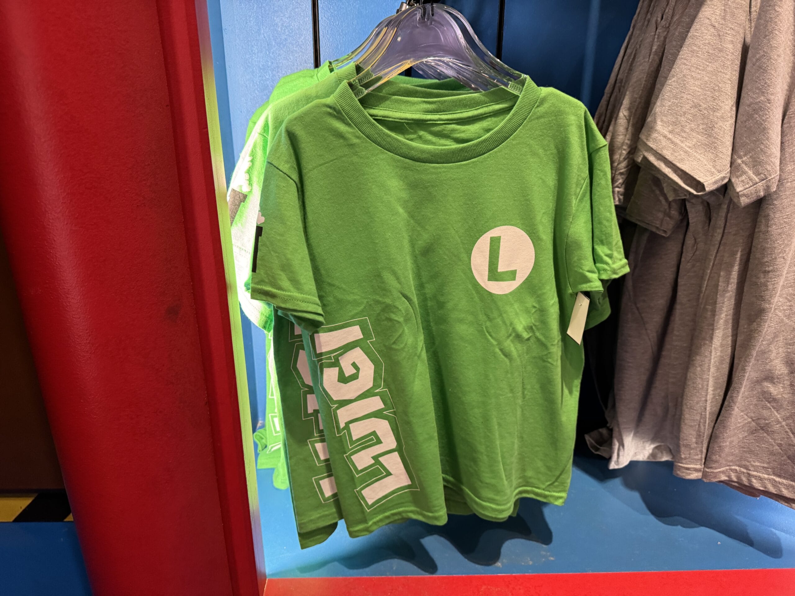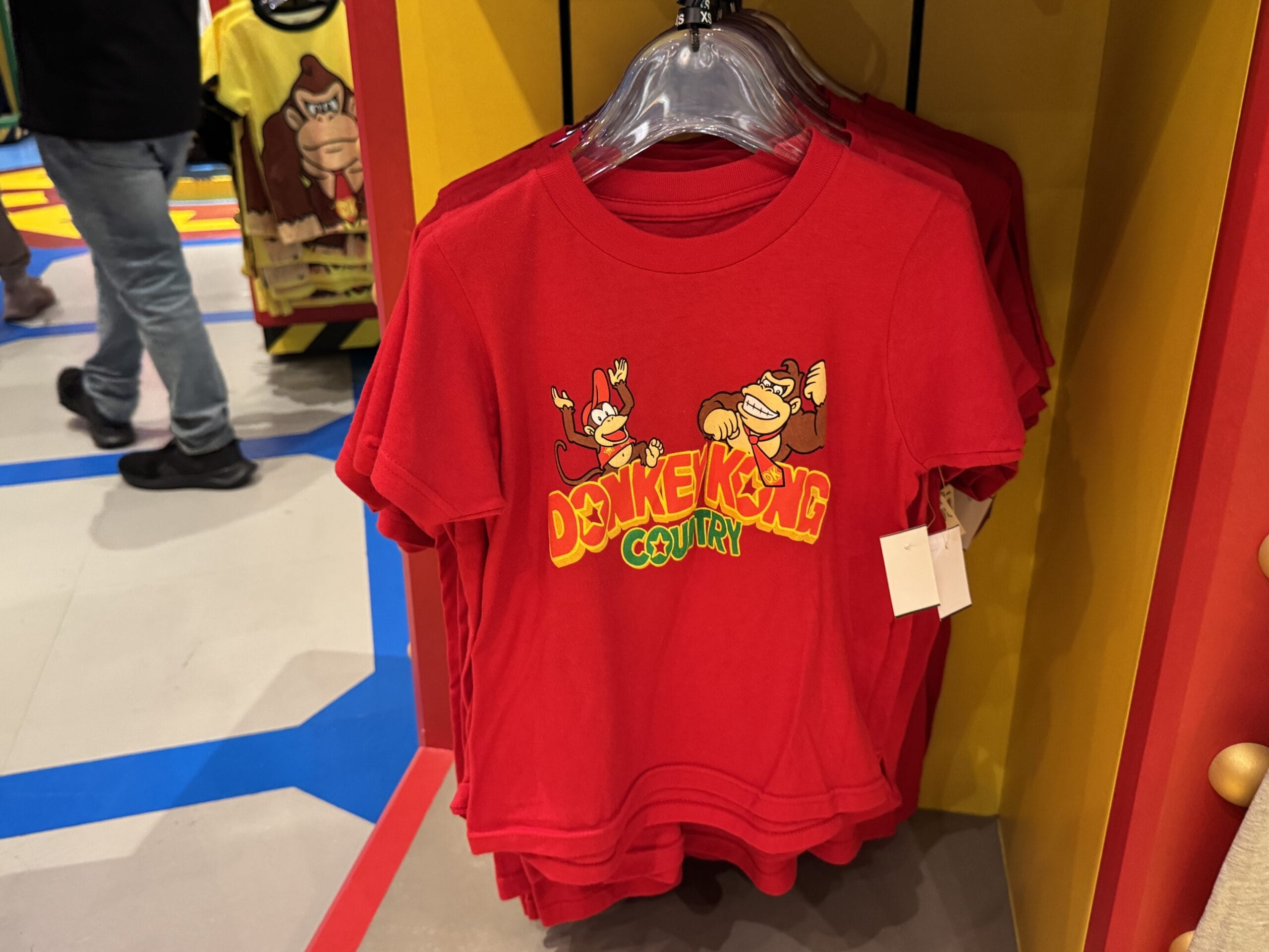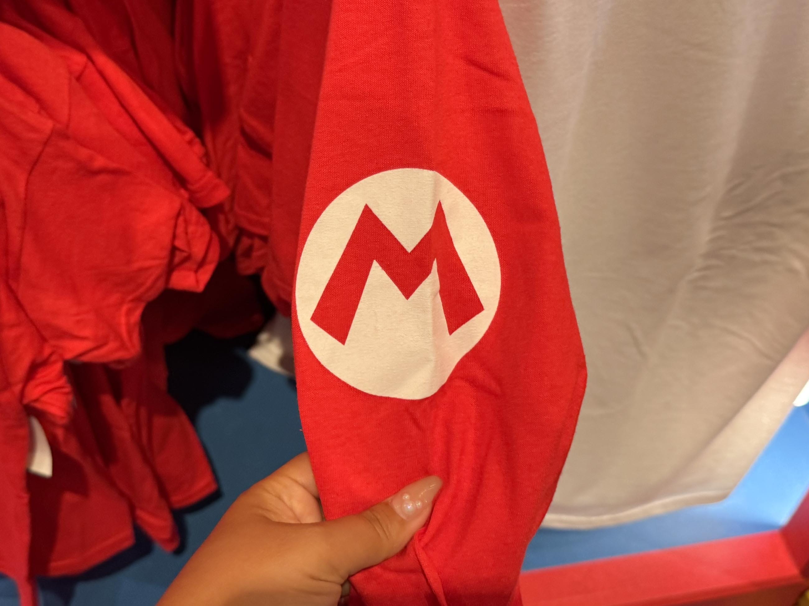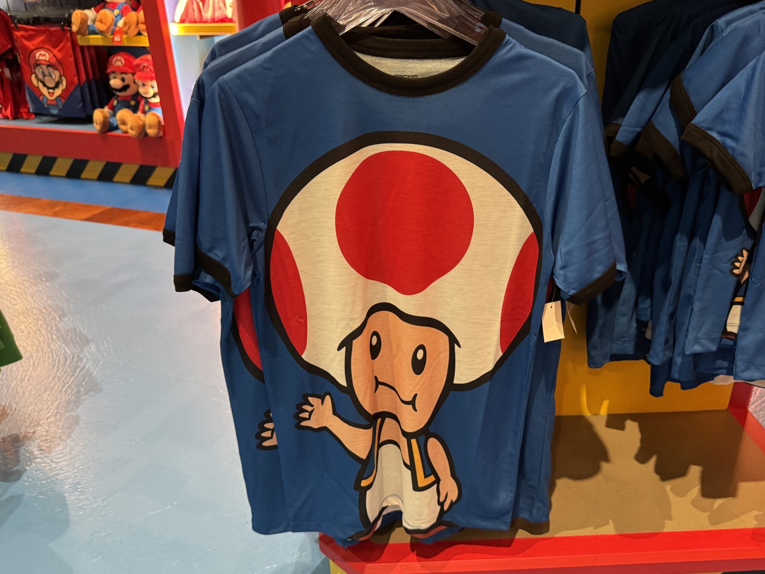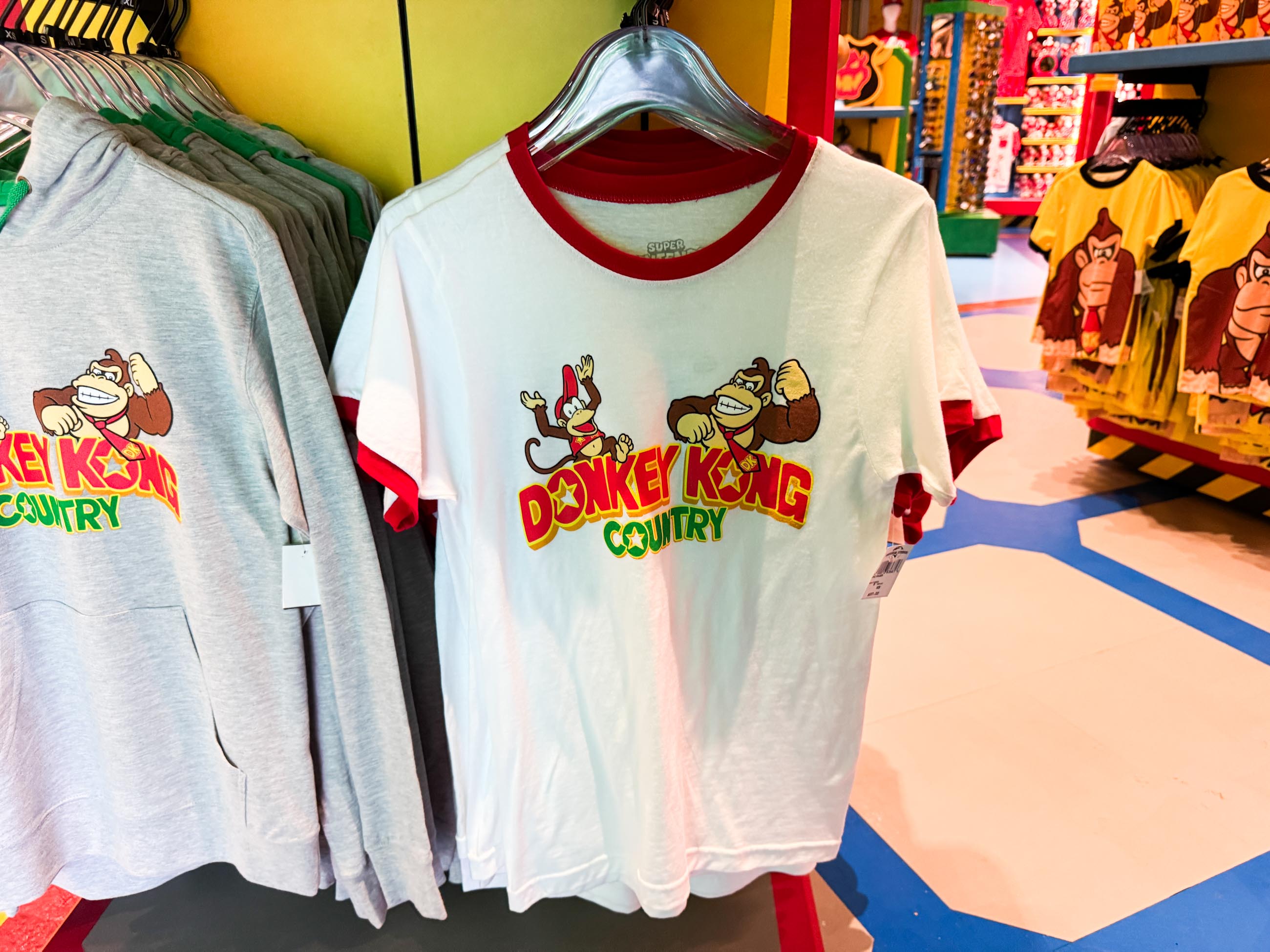 The pink t-shirt similarly has the Super Nintendo World and “Universal Orlando Resort.”