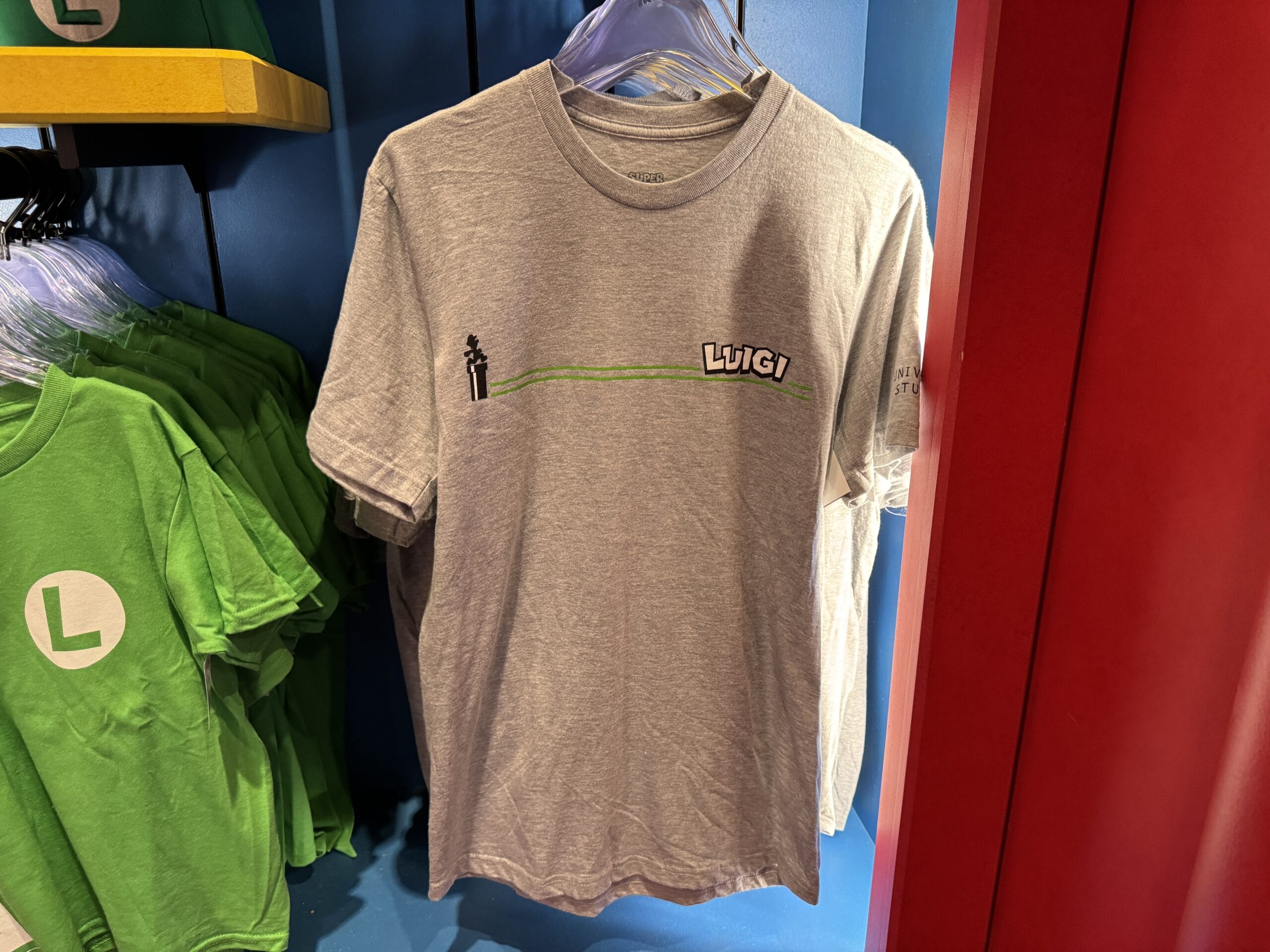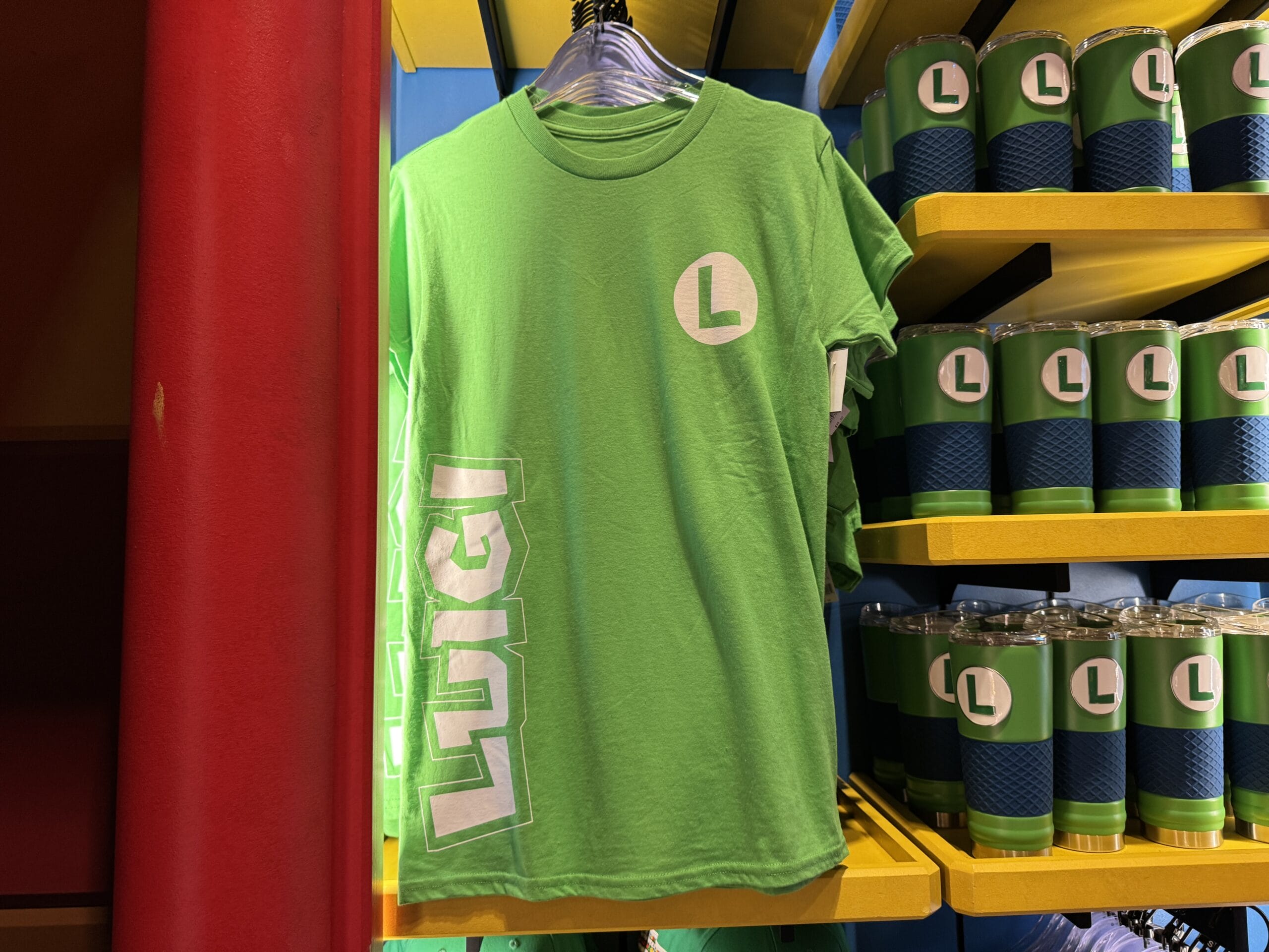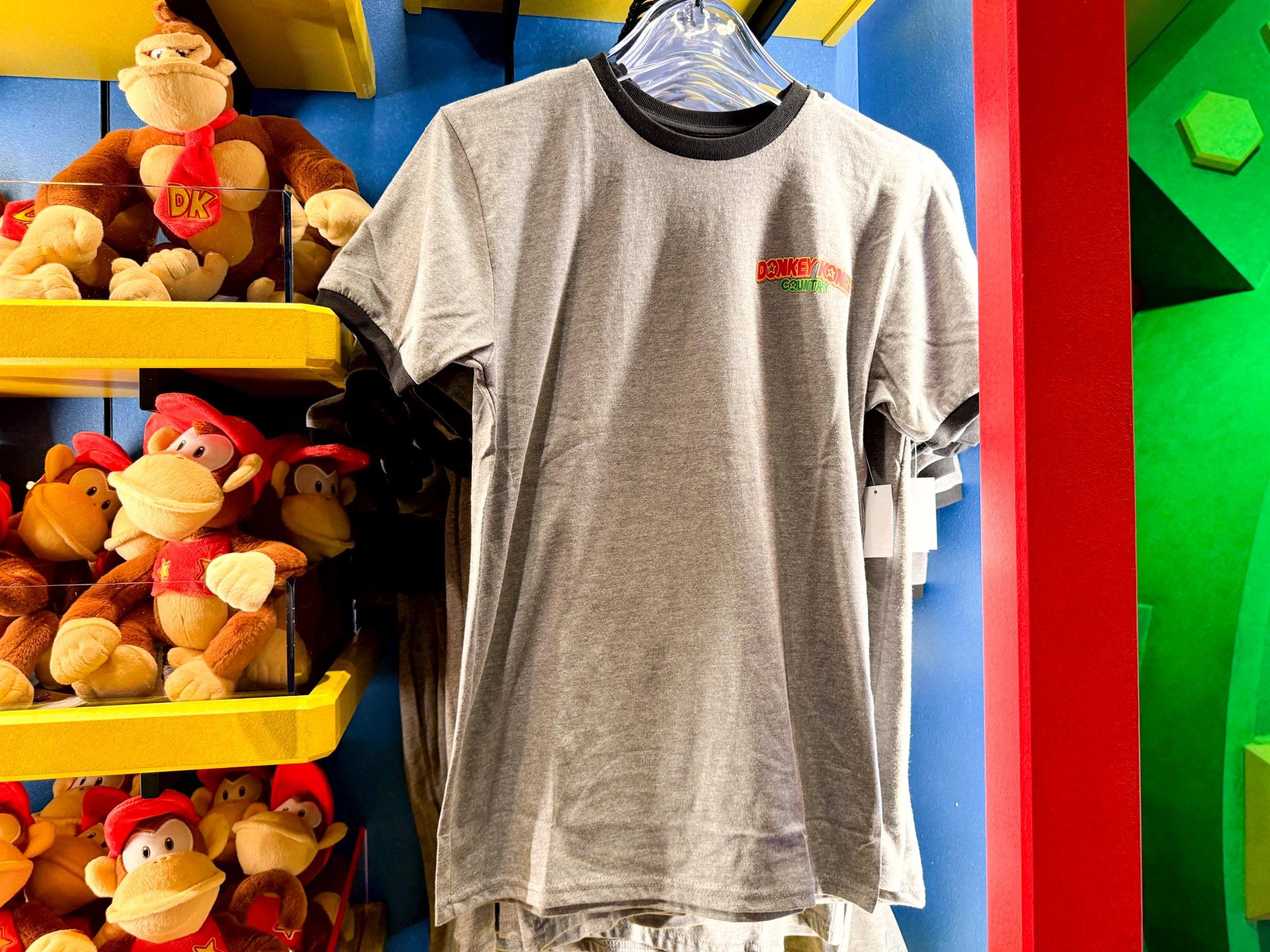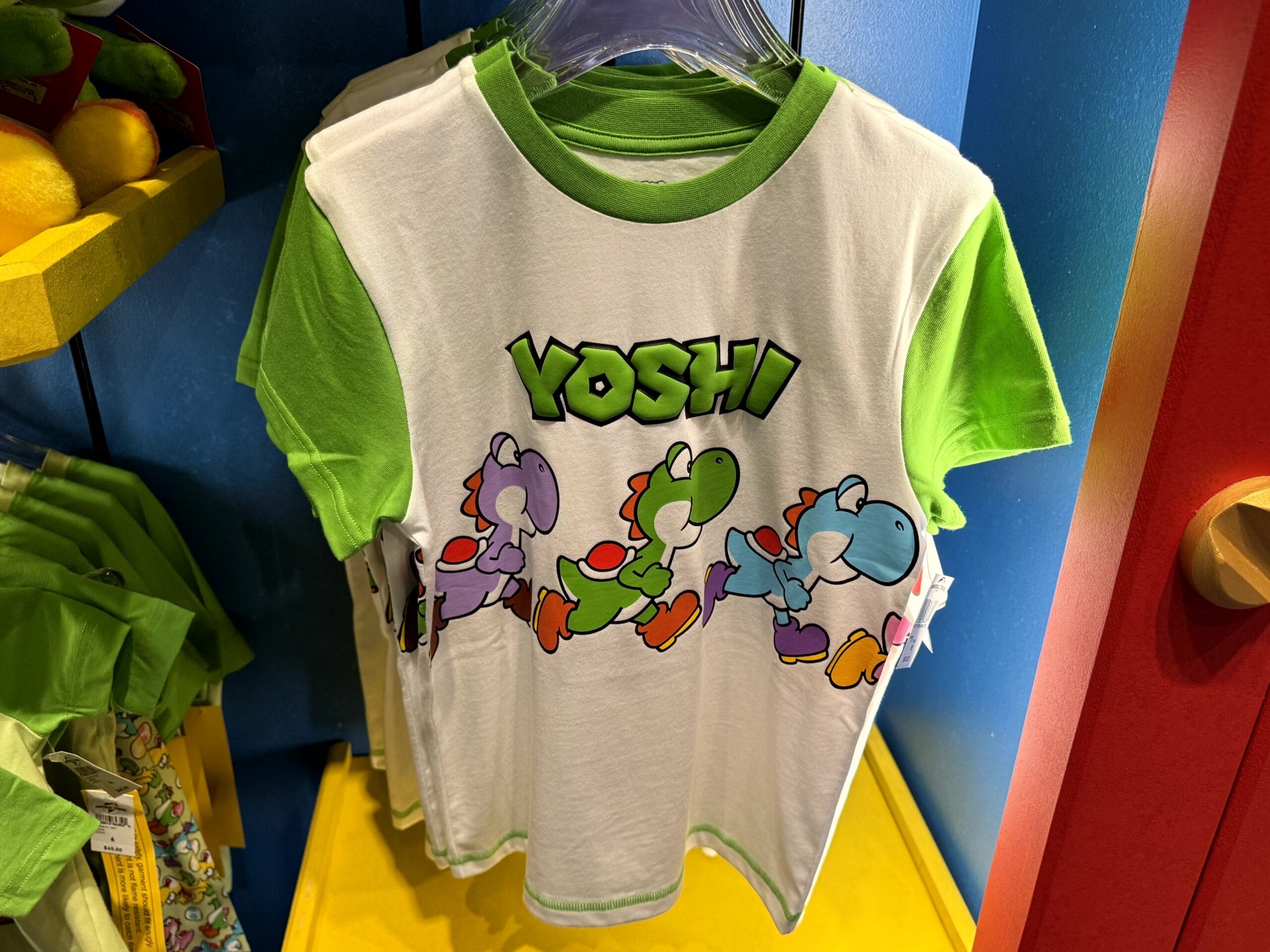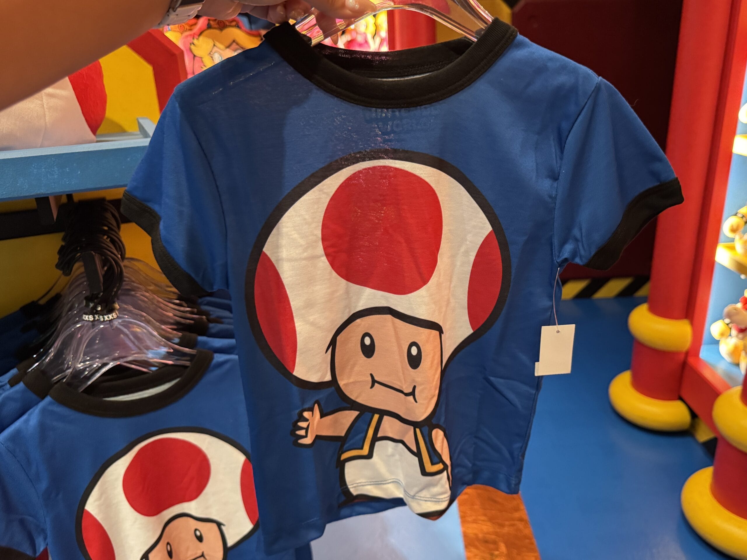 The pink t-shirt similarly has the Super Nintendo World and “Universal Orlando Resort.”