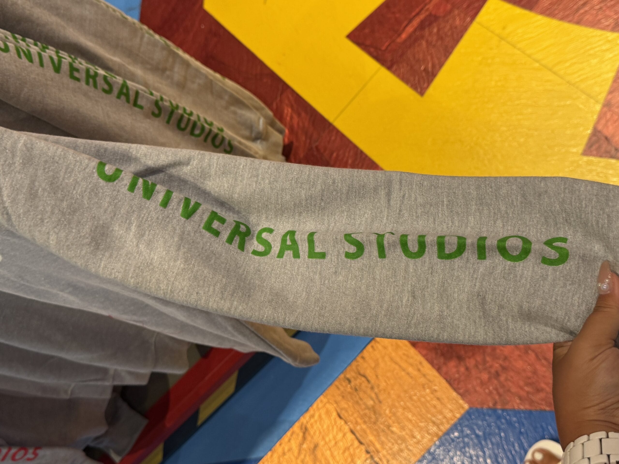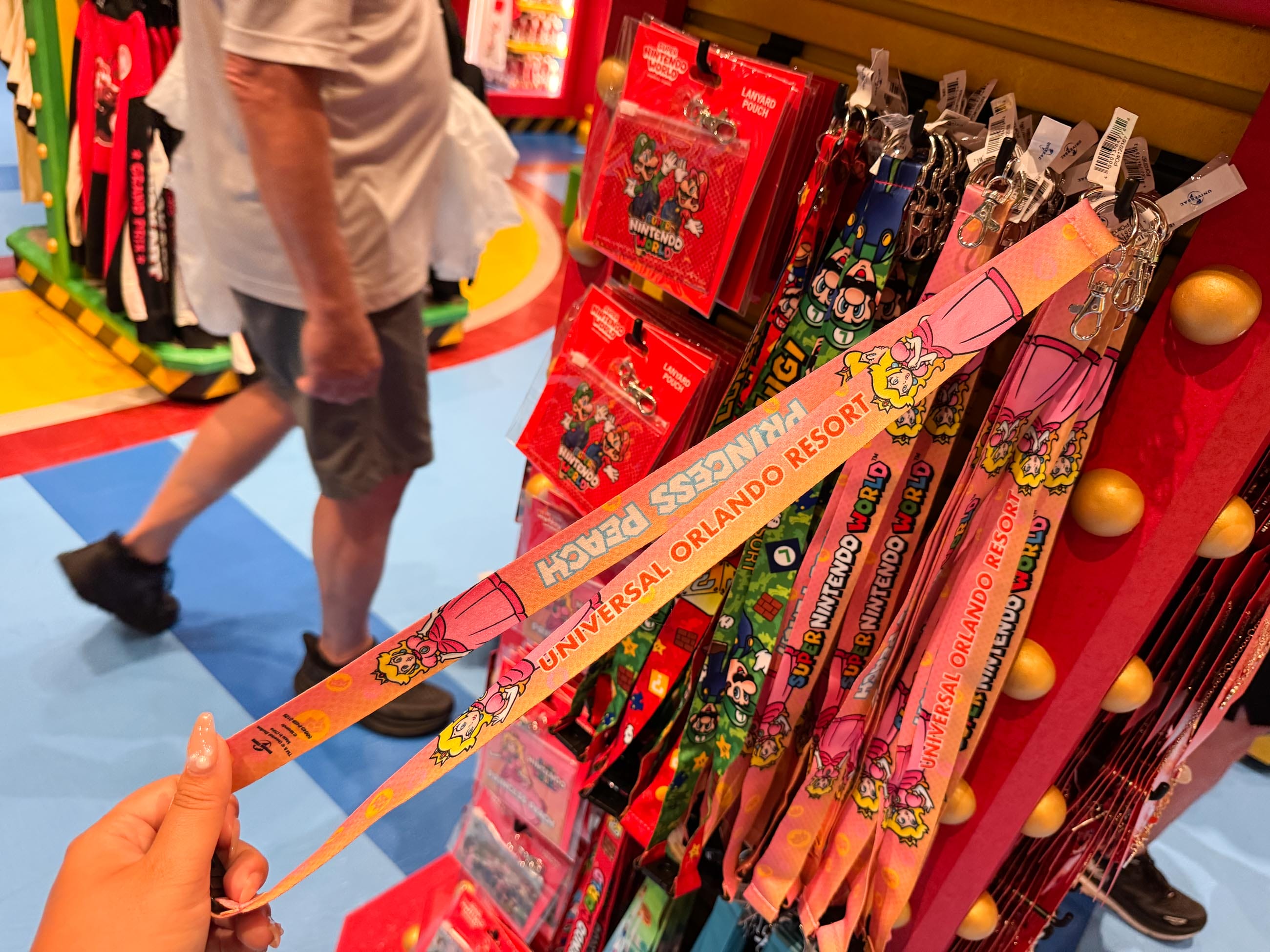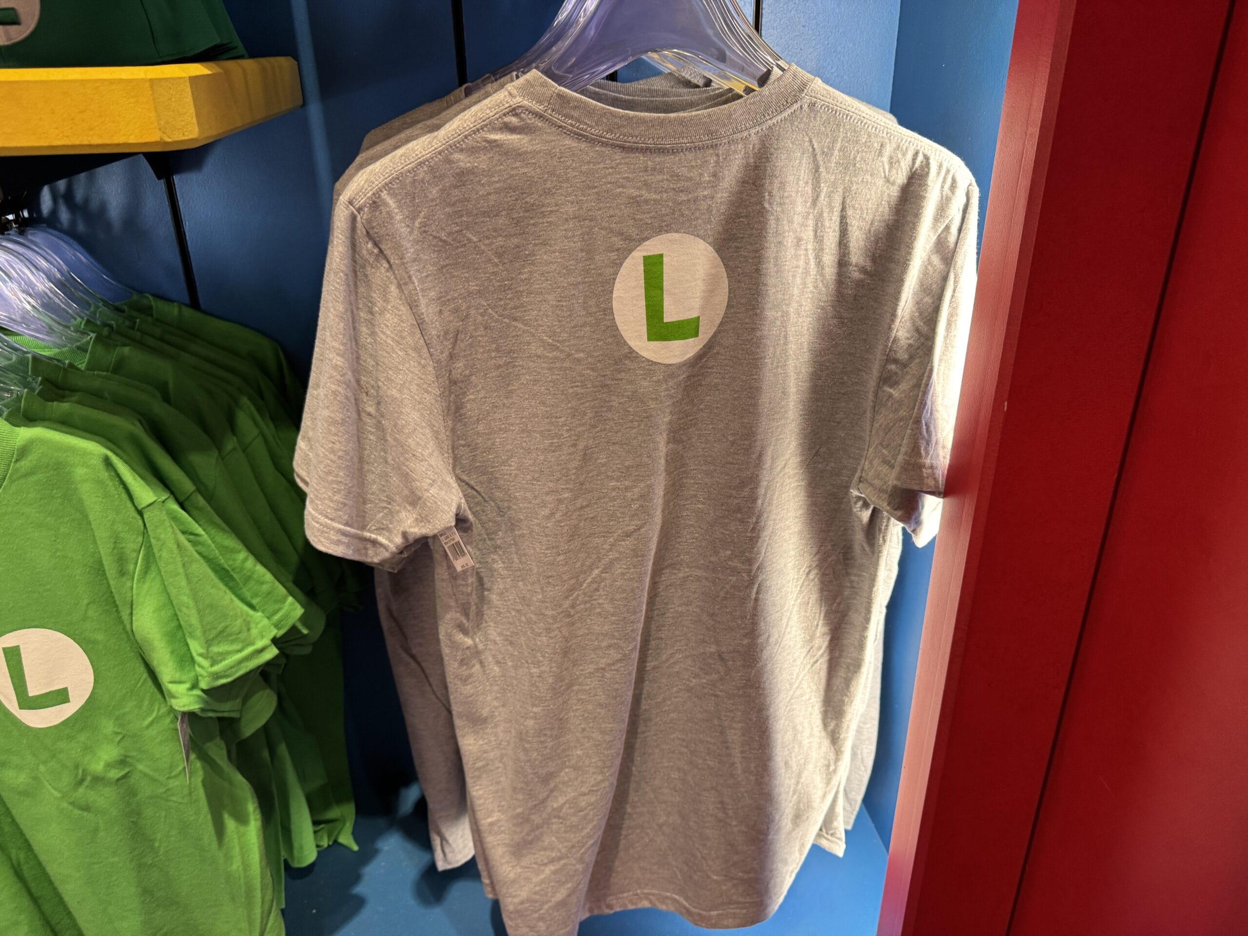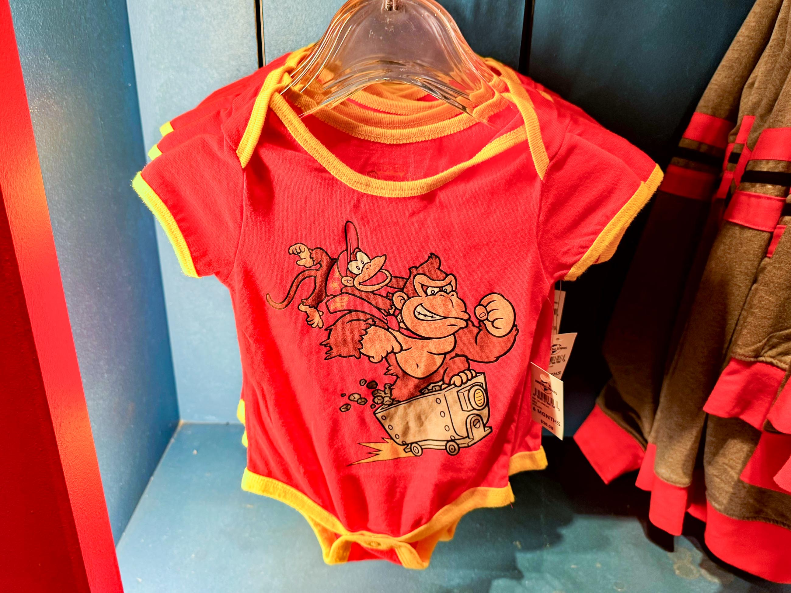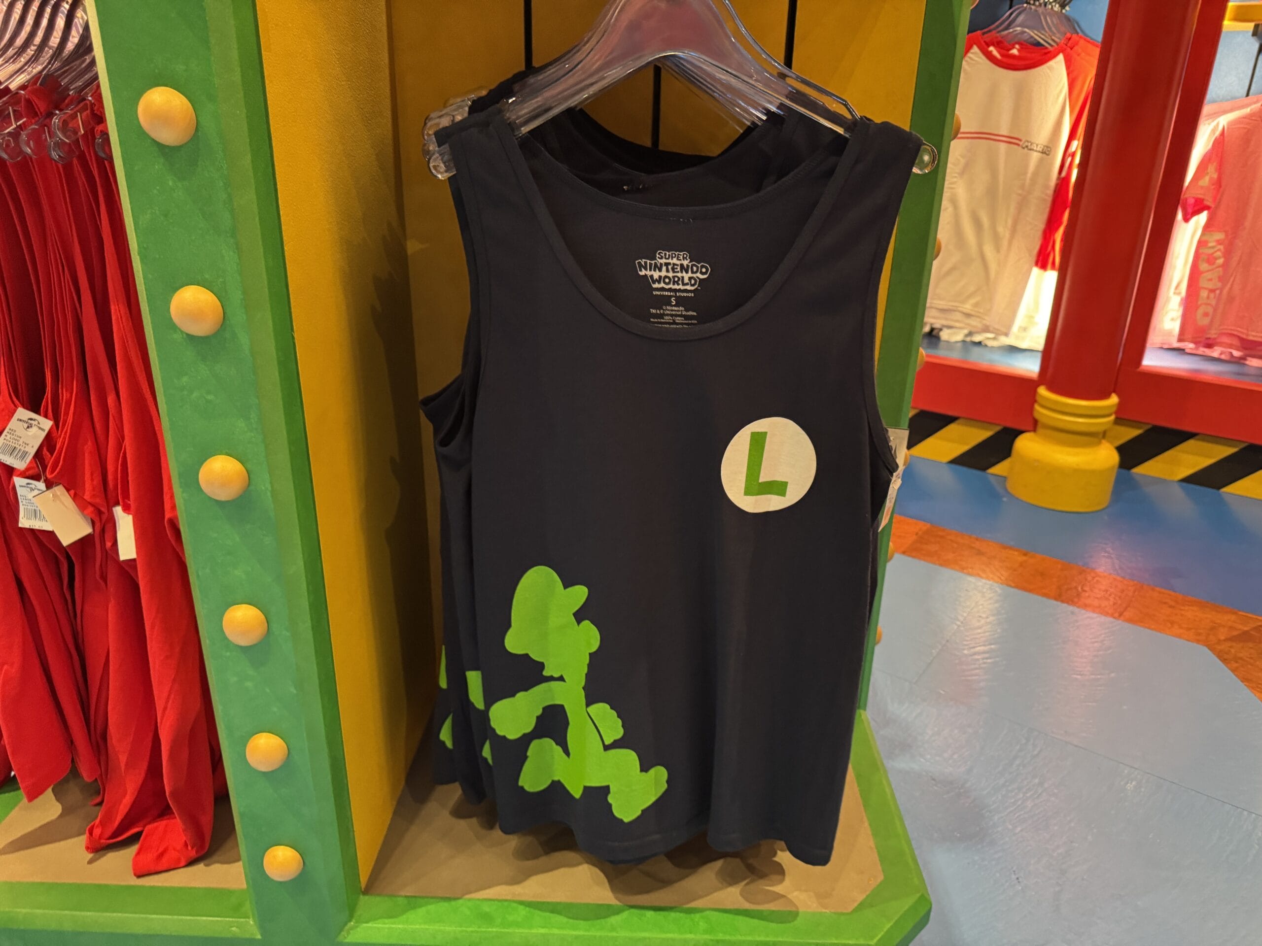 The pink t-shirt similarly has the Super Nintendo World and “Universal Orlando Resort.”