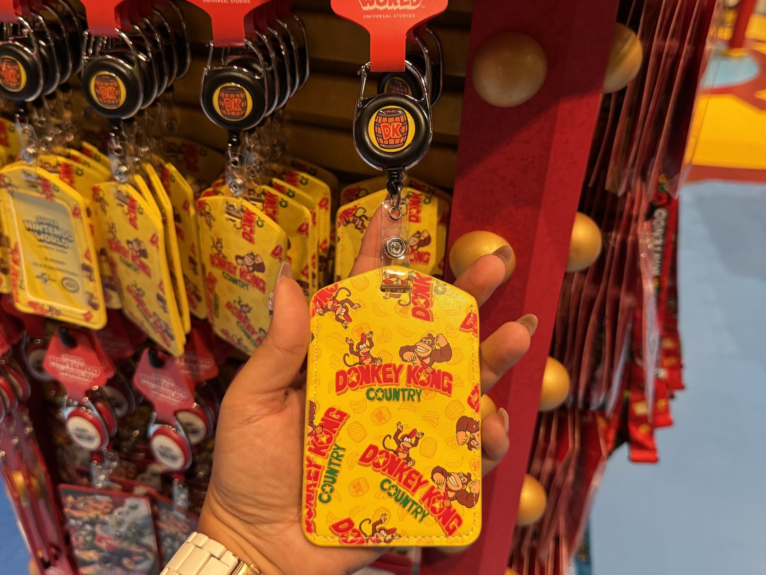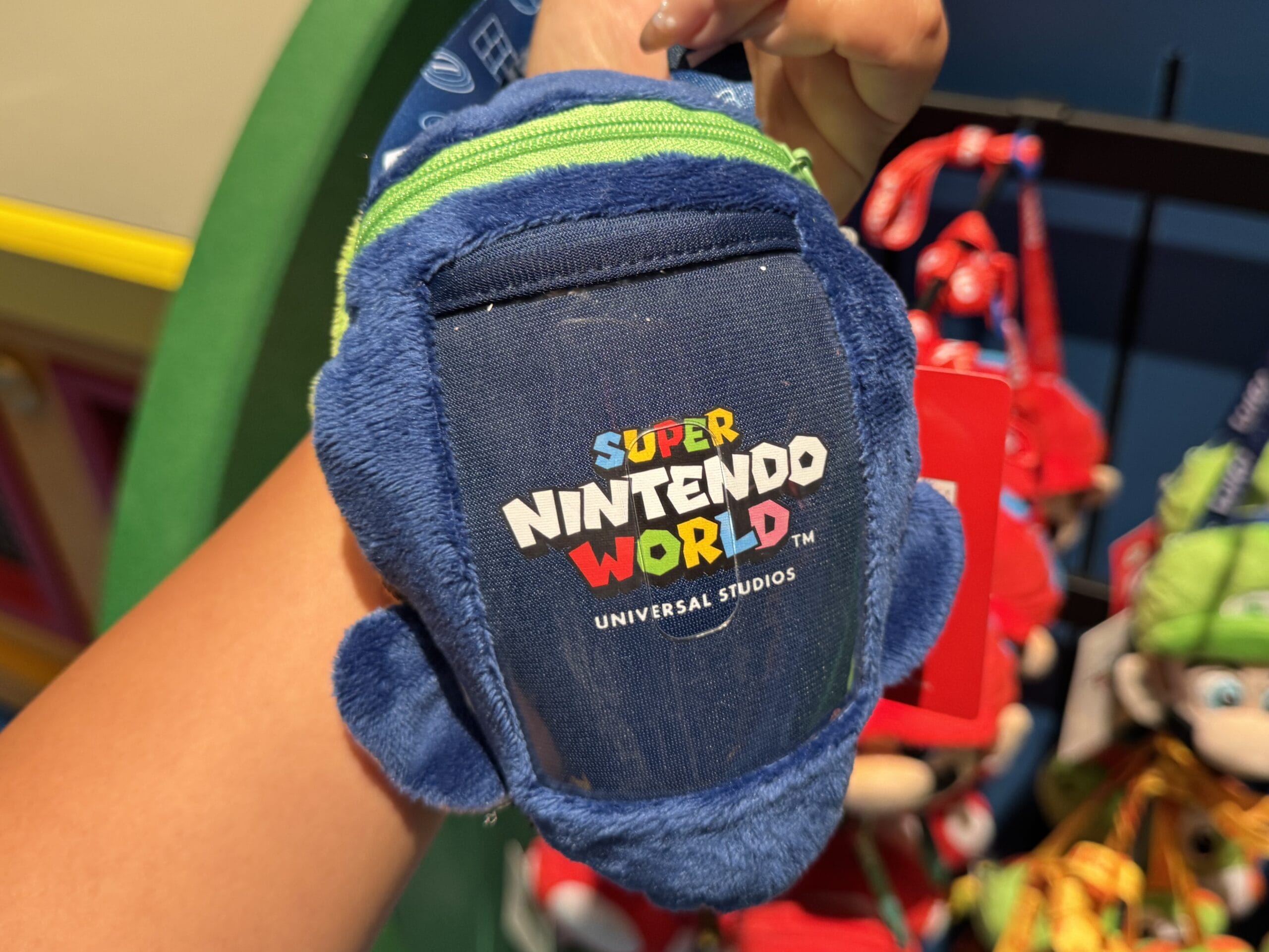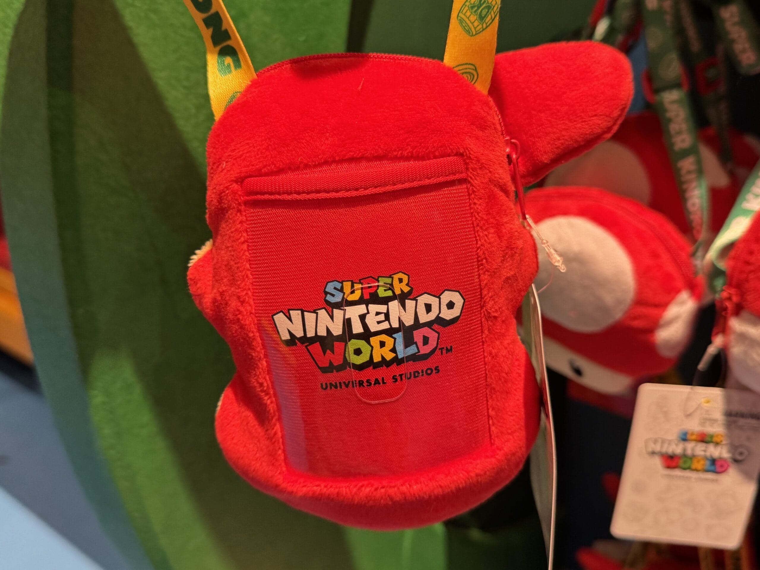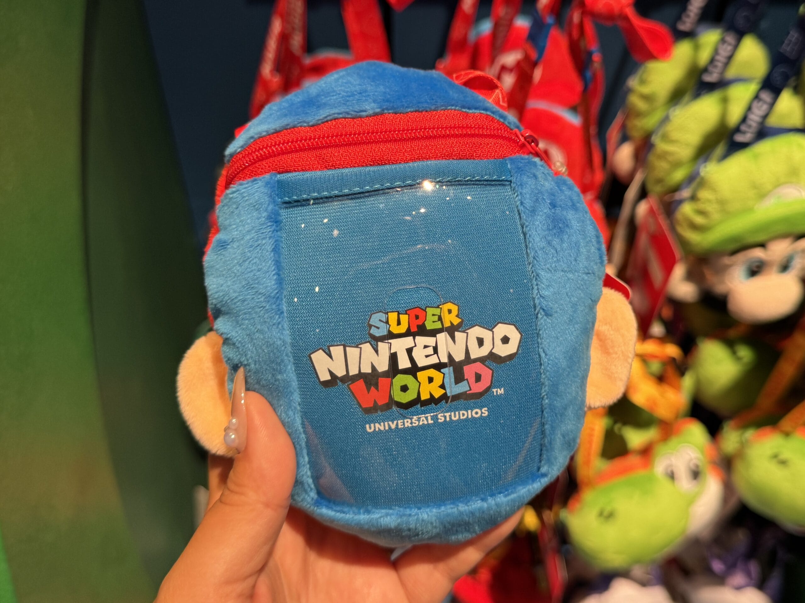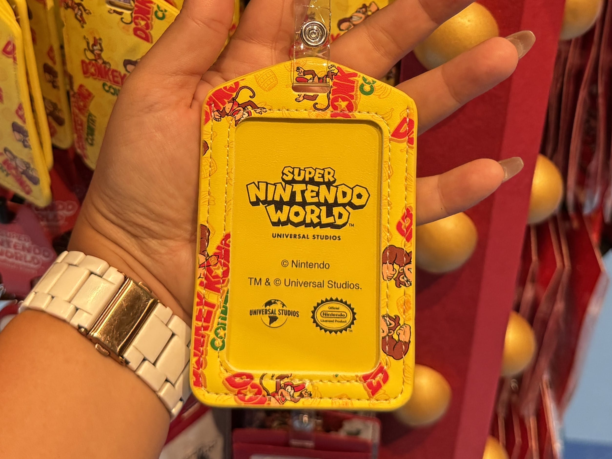 The artwork from the character ensemble t-shirts is on the front of this badge holder. On the back is a clear pocket for an ID or ticket. The Super Nintendo World logo and “Universal Studios” are on the clips, which are retractable.