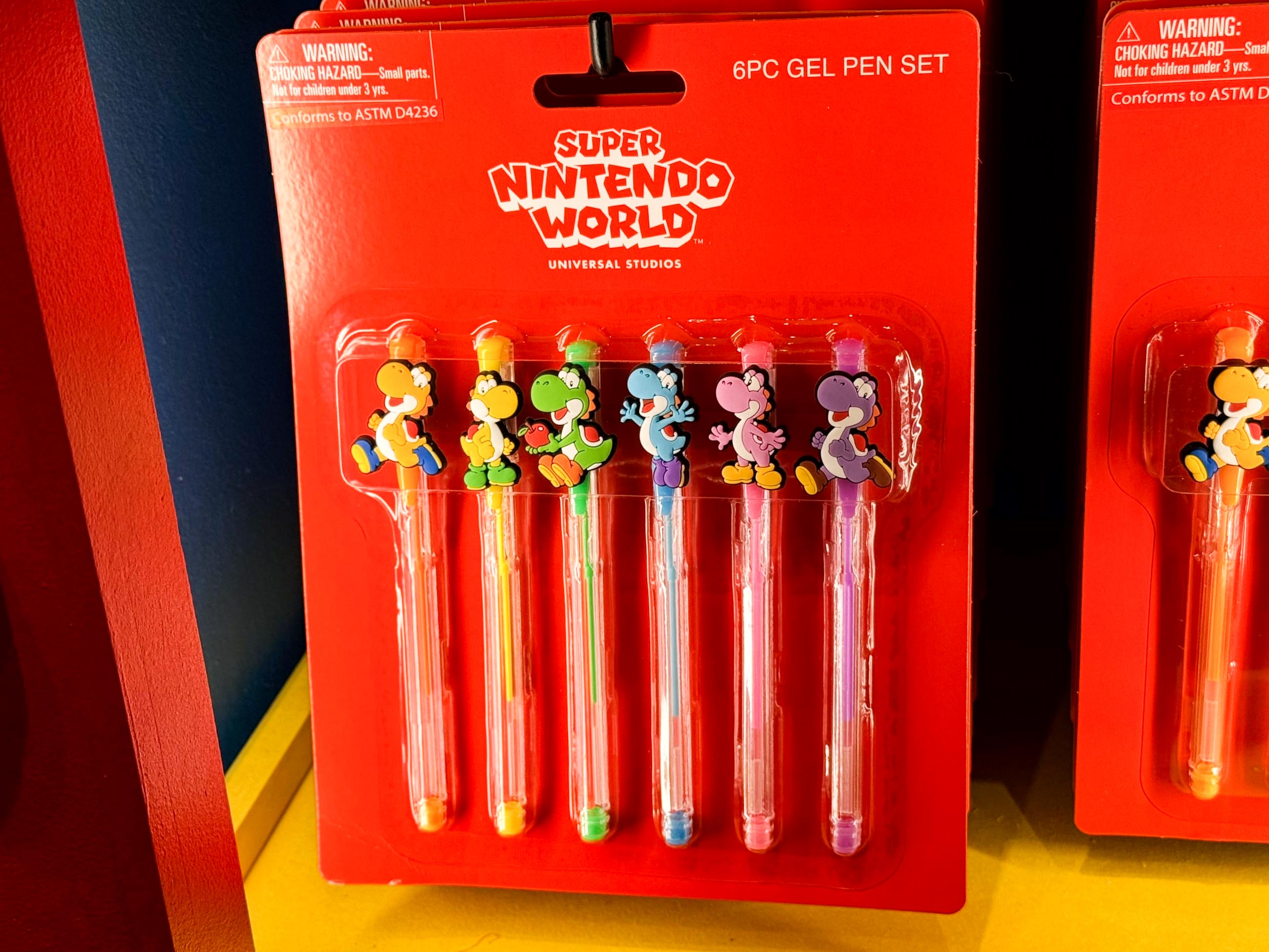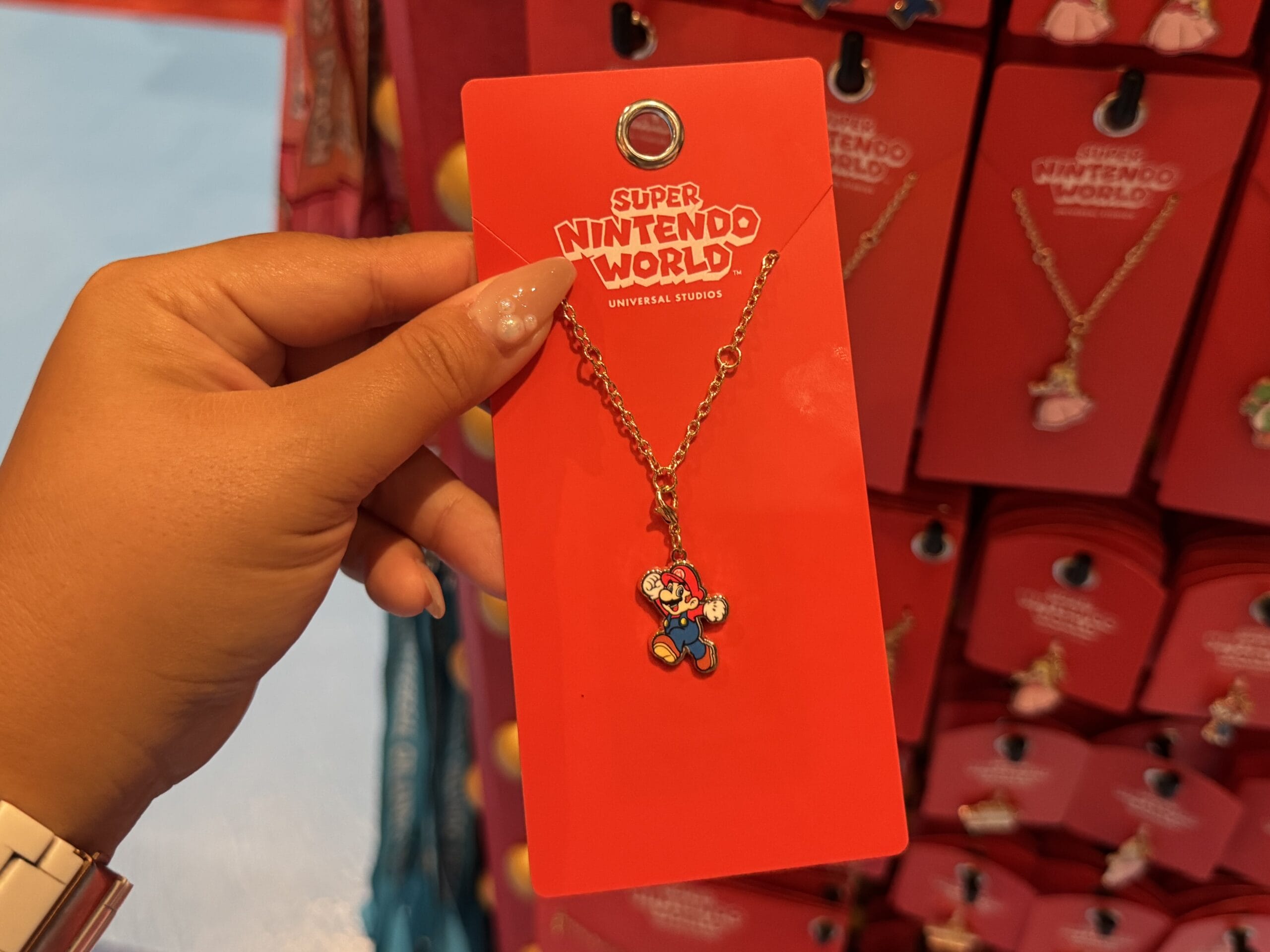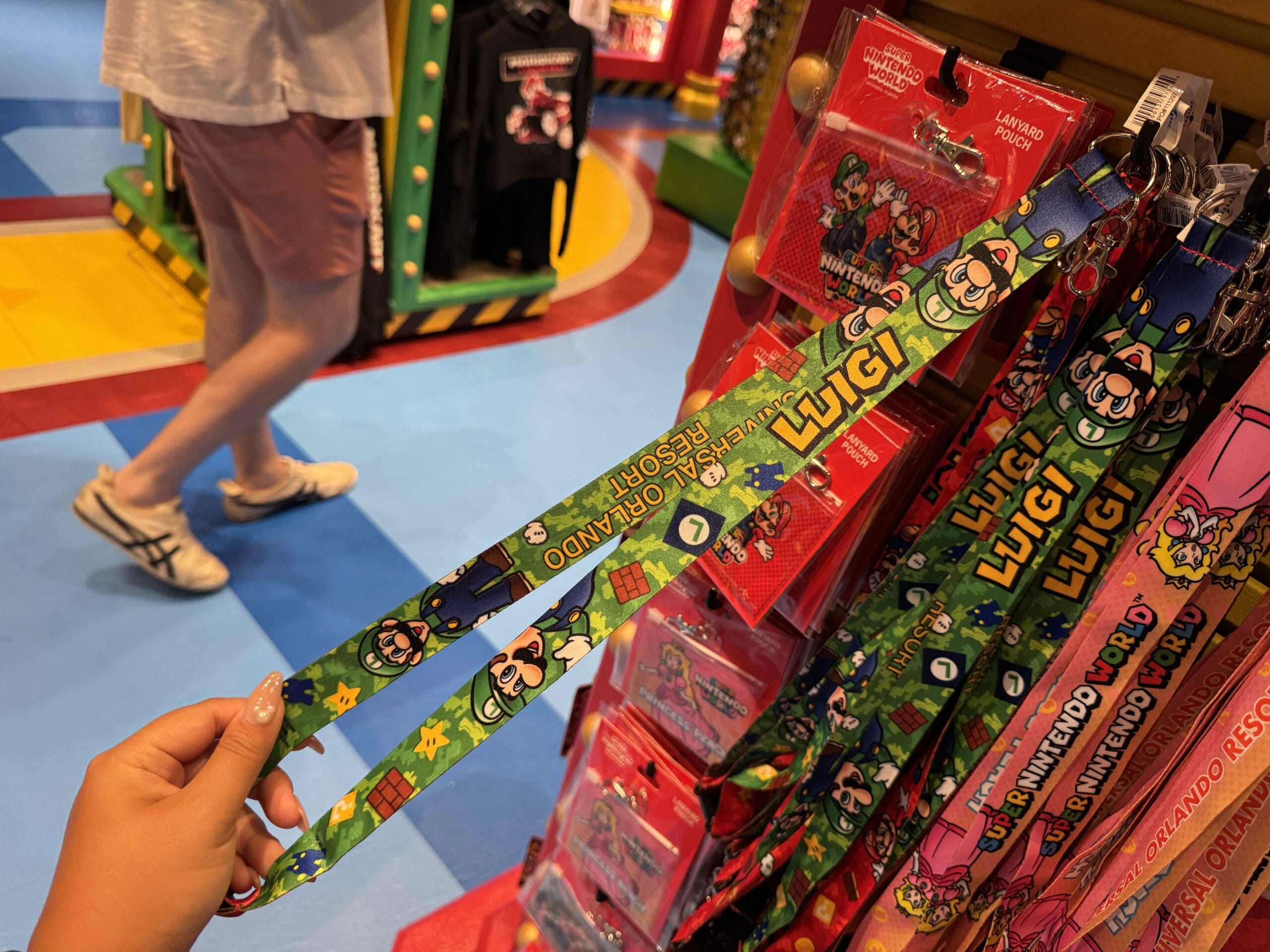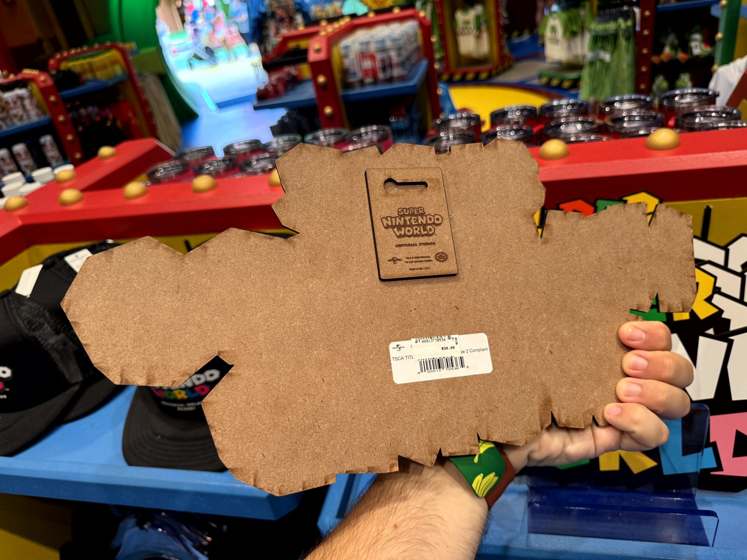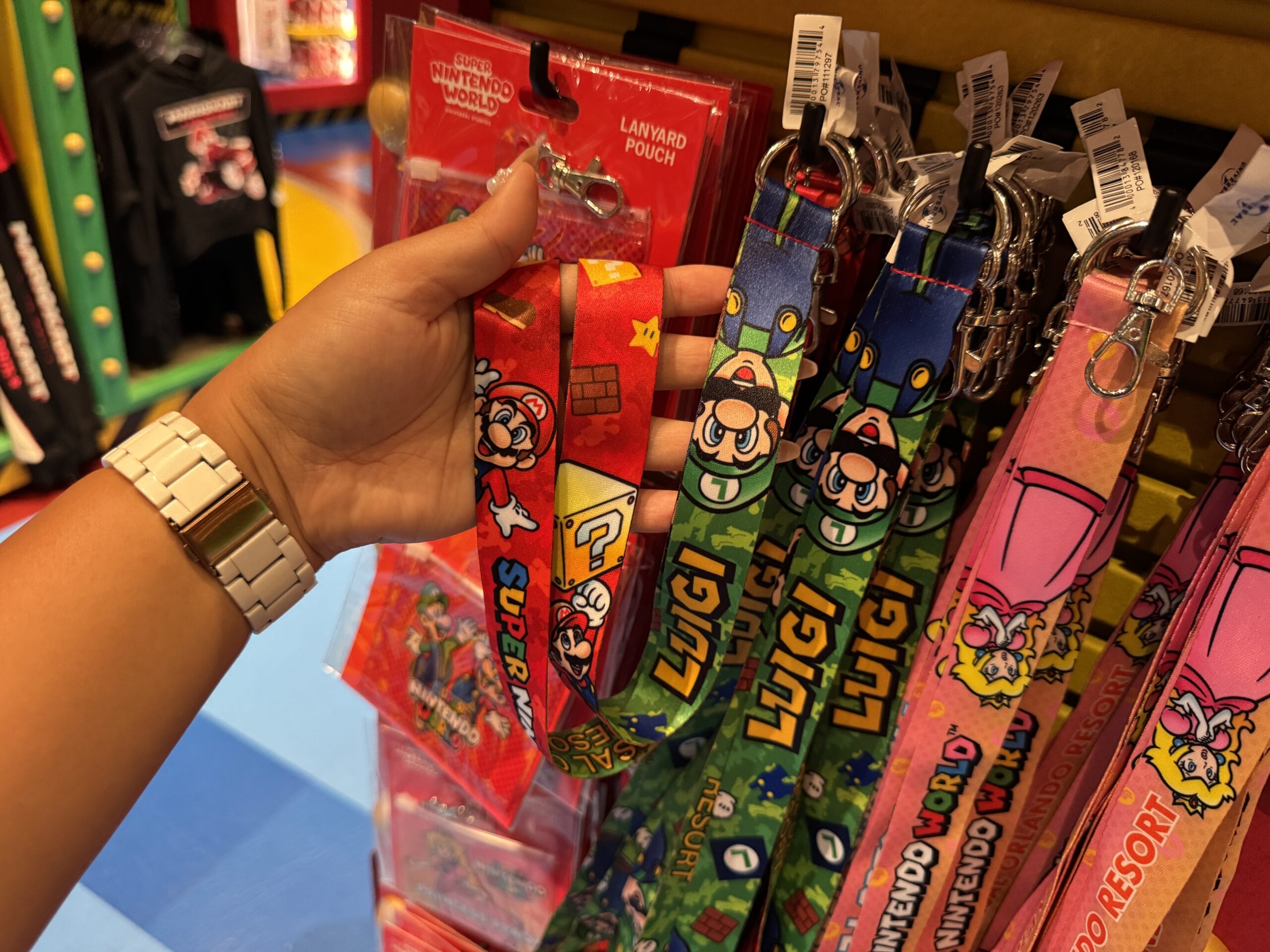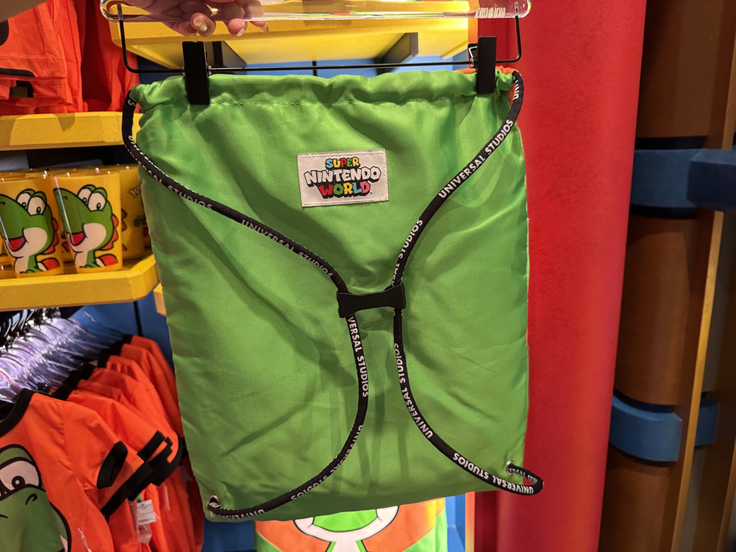 The artwork from the character ensemble t-shirts is on the front of this badge holder. On the back is a clear pocket for an ID or ticket. The Super Nintendo World logo and “Universal Studios” are on the clips, which are retractable.