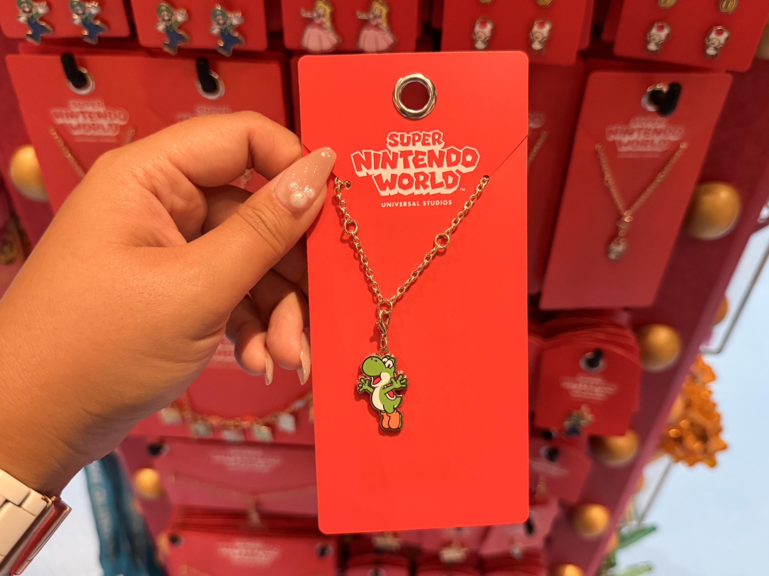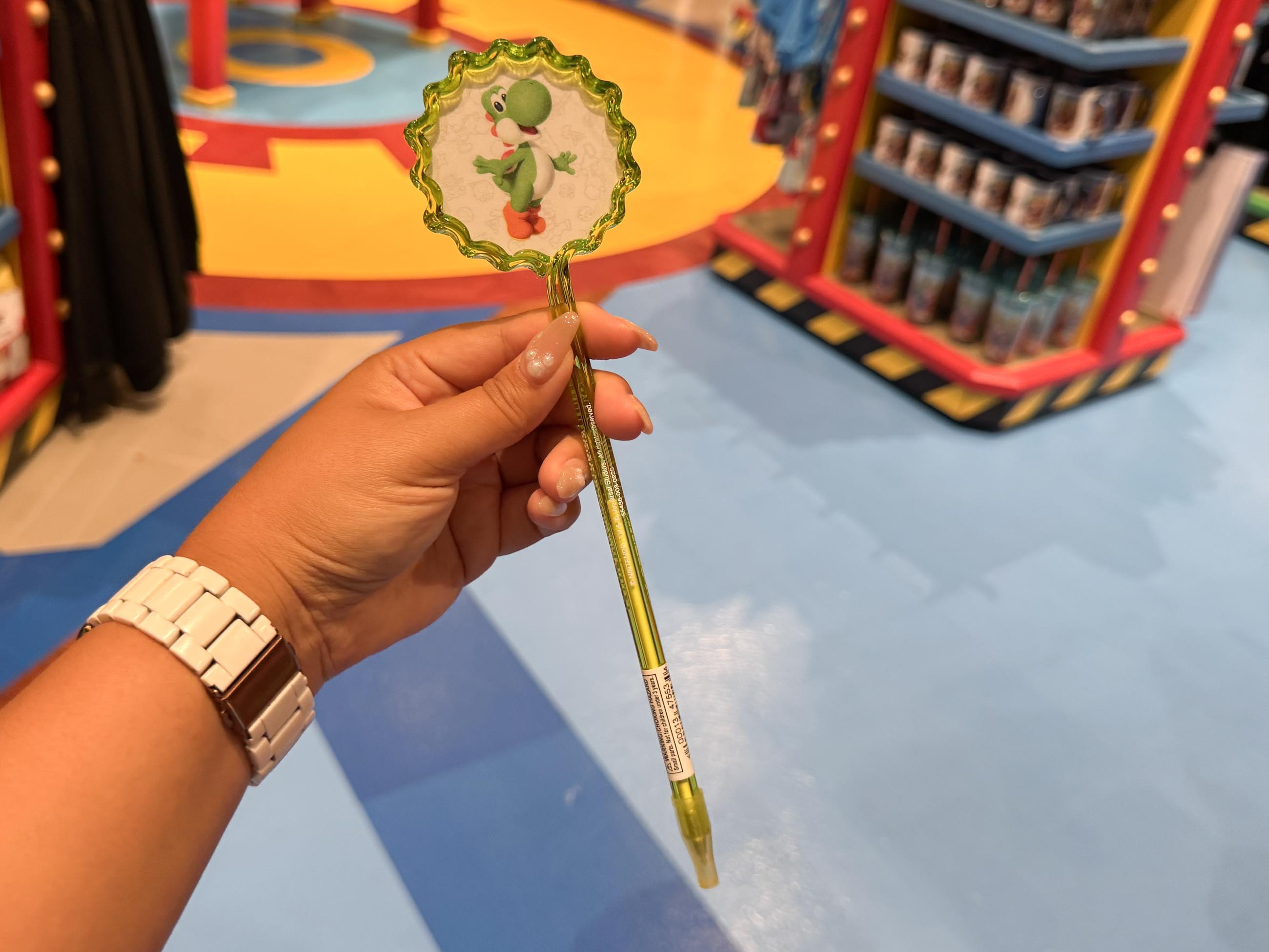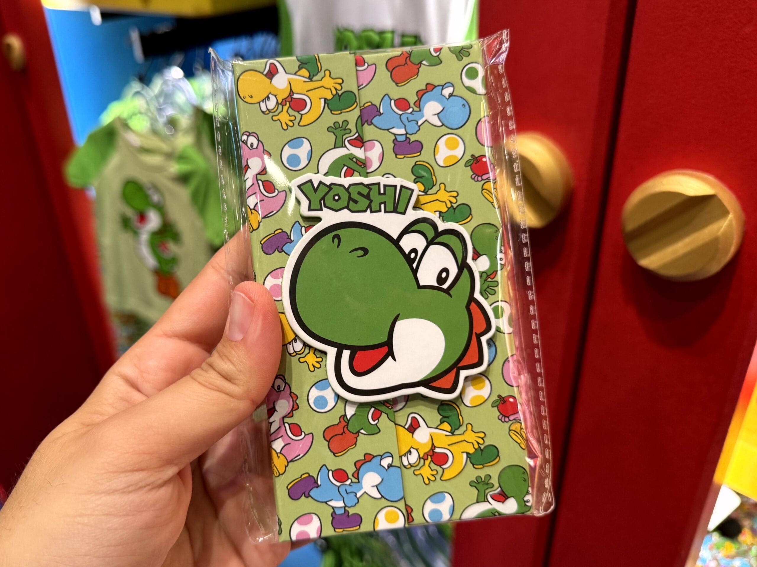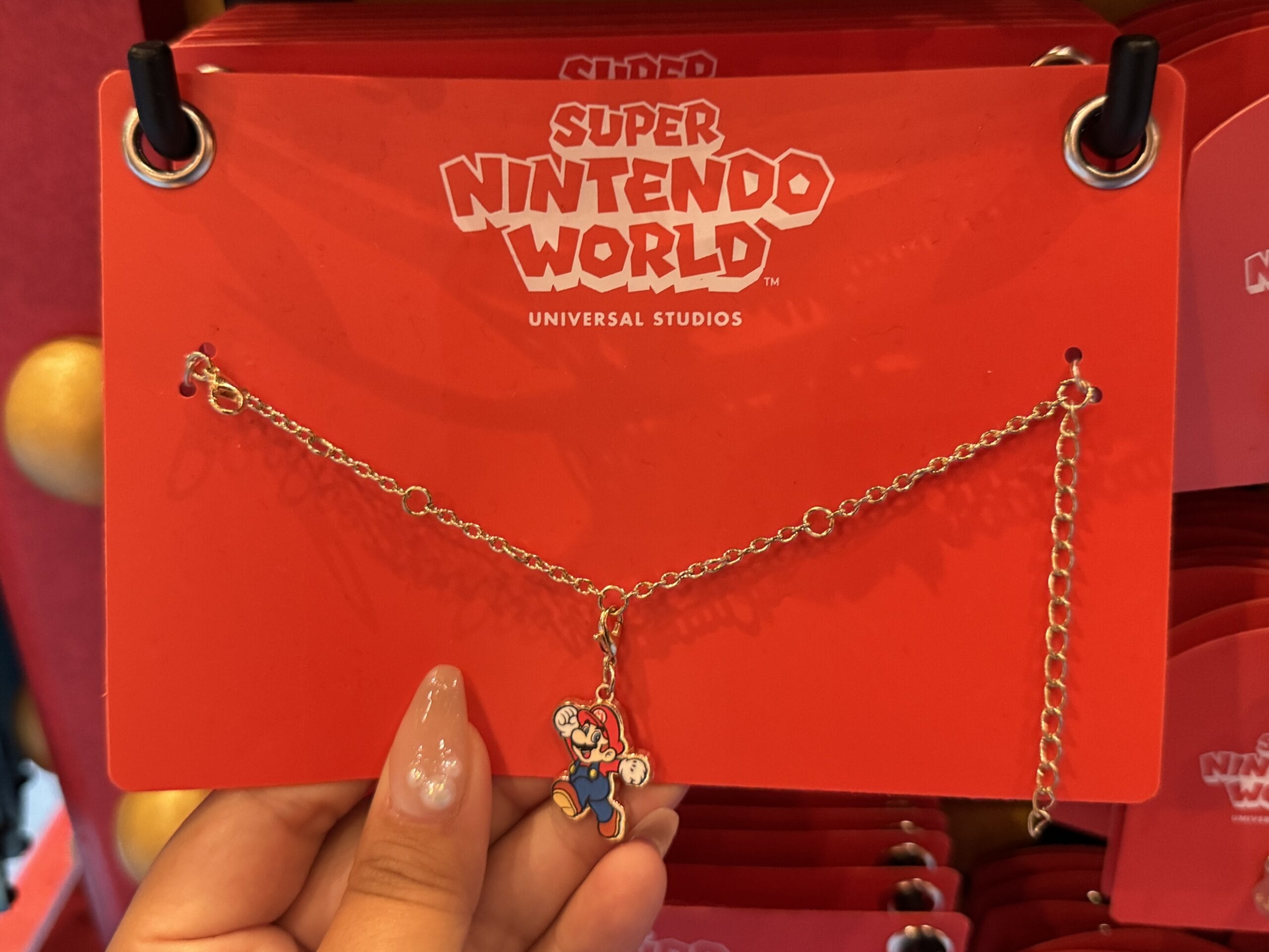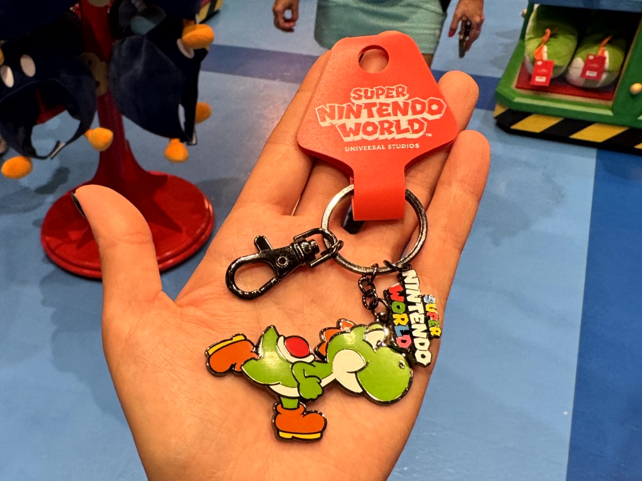 The artwork from the character ensemble t-shirts is on the front of this badge holder. On the back is a clear pocket for an ID or ticket. The Super Nintendo World logo and “Universal Studios” are on the clips, which are retractable.