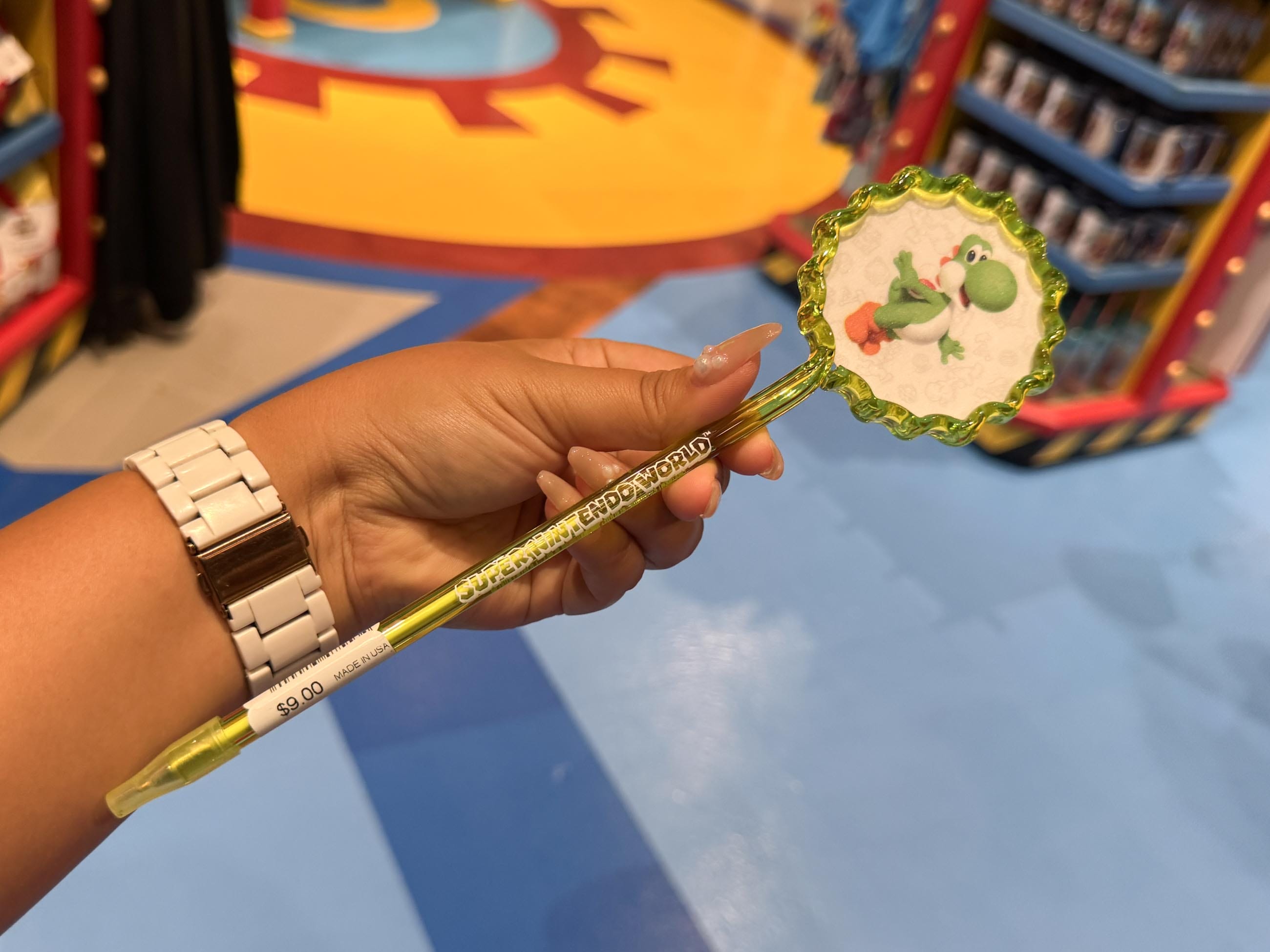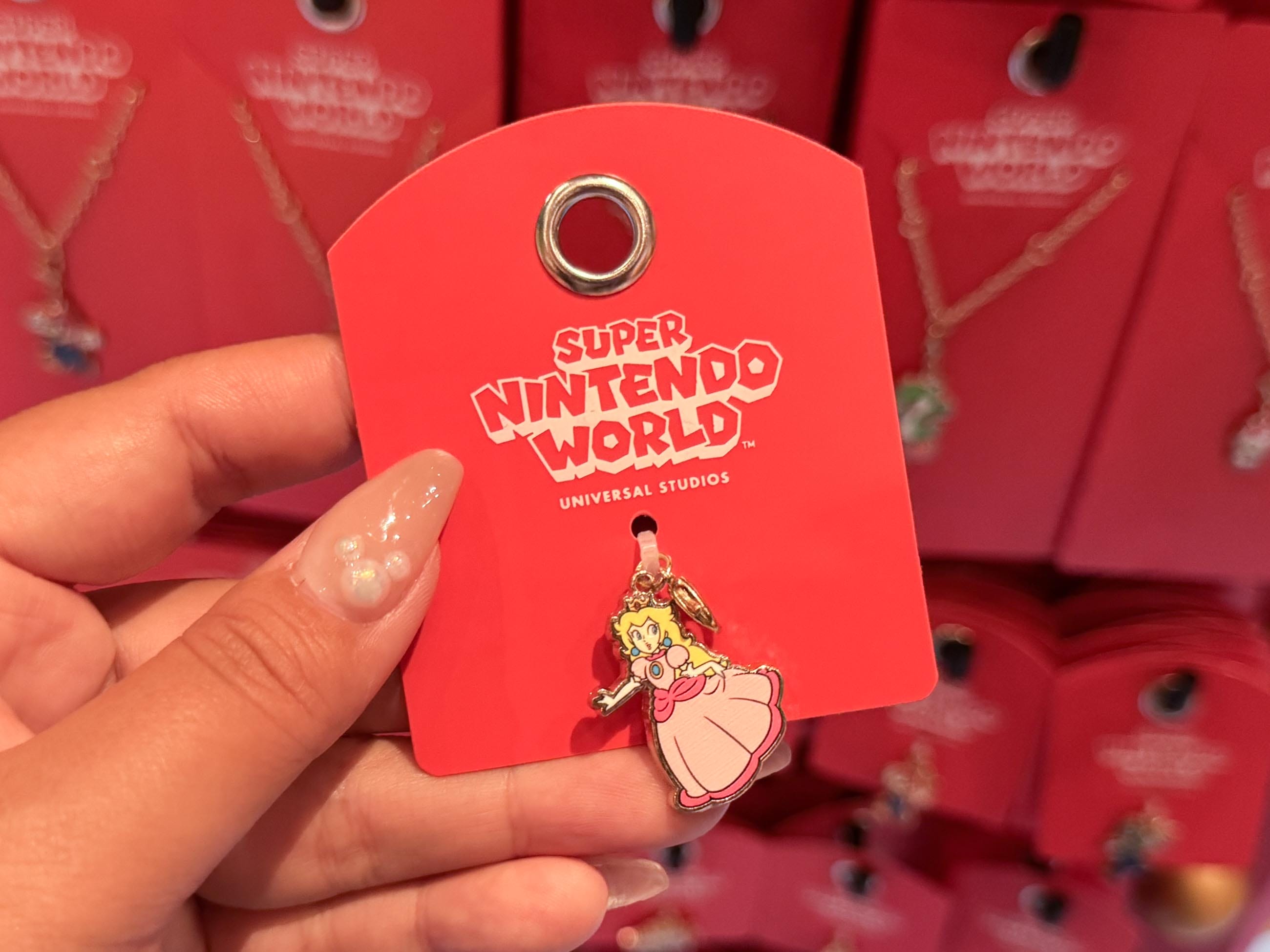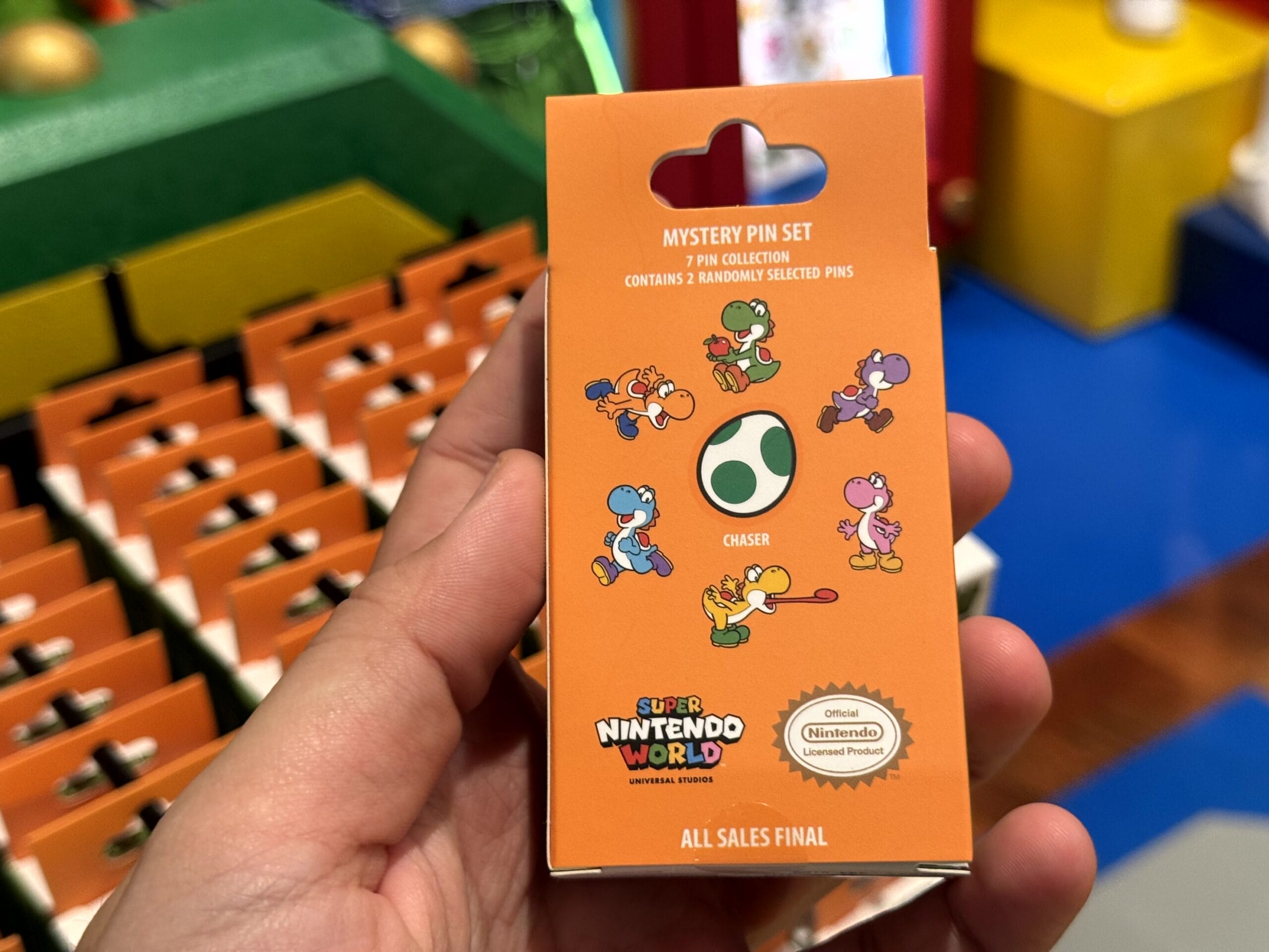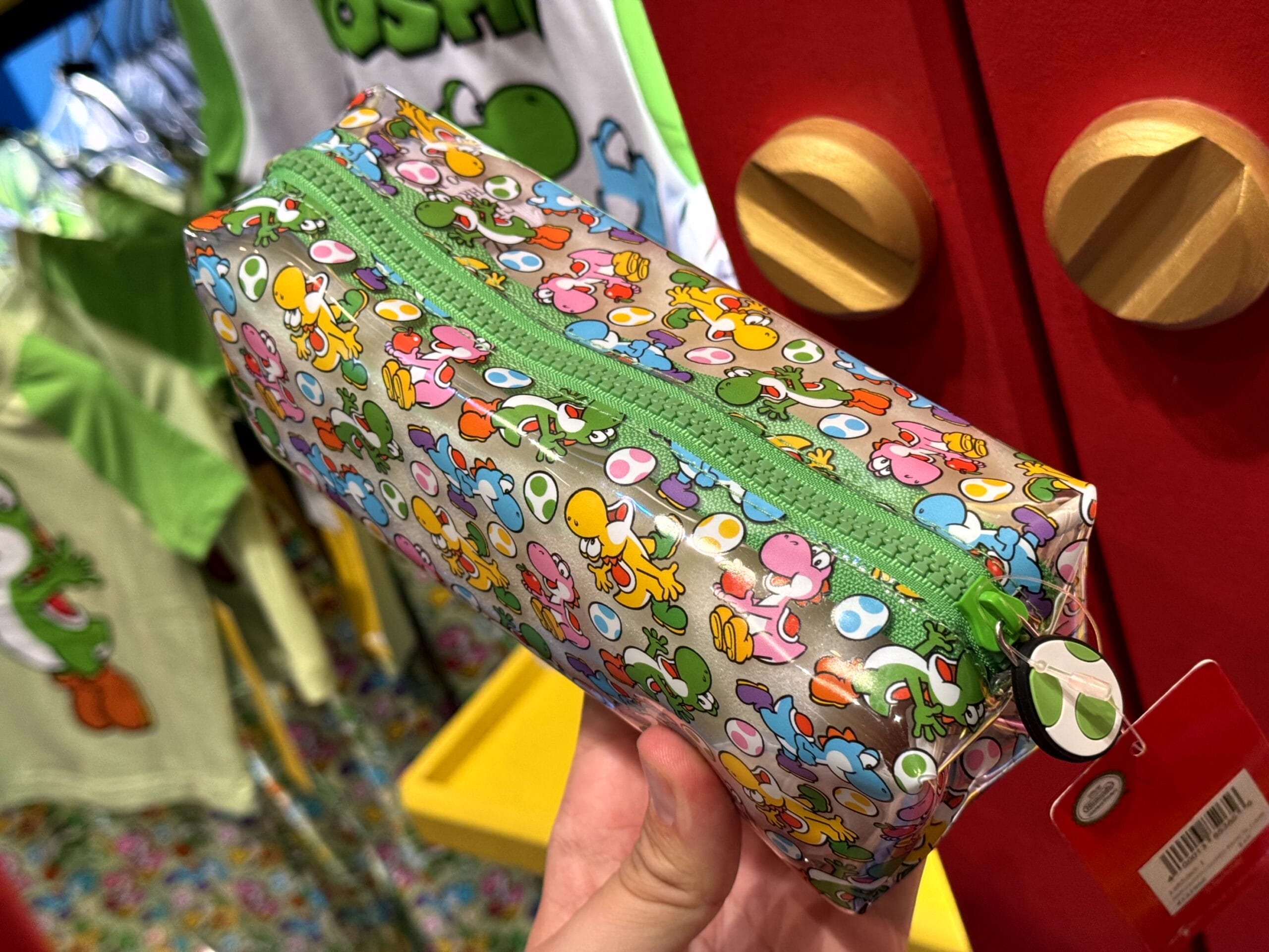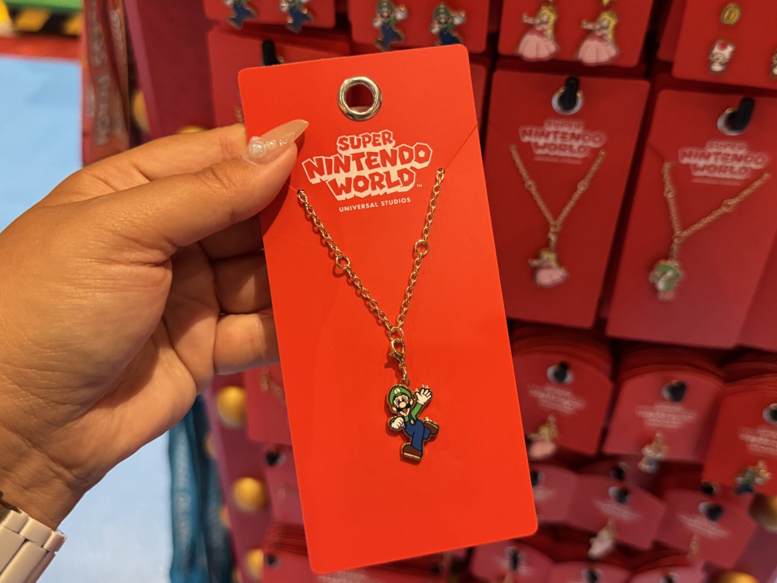 The artwork from the character ensemble t-shirts is on the front of this badge holder. On the back is a clear pocket for an ID or ticket. The Super Nintendo World logo and “Universal Studios” are on the clips, which are retractable.