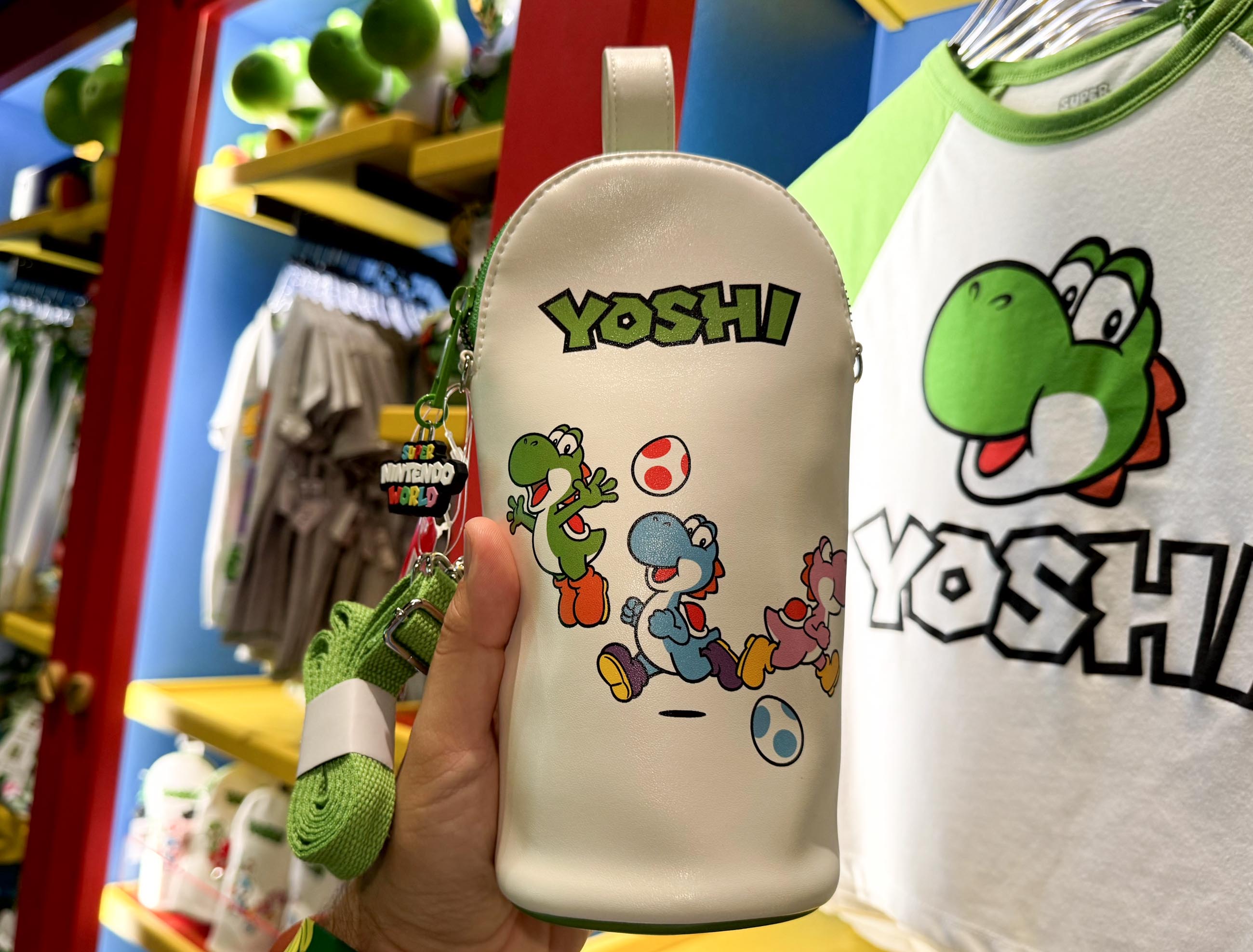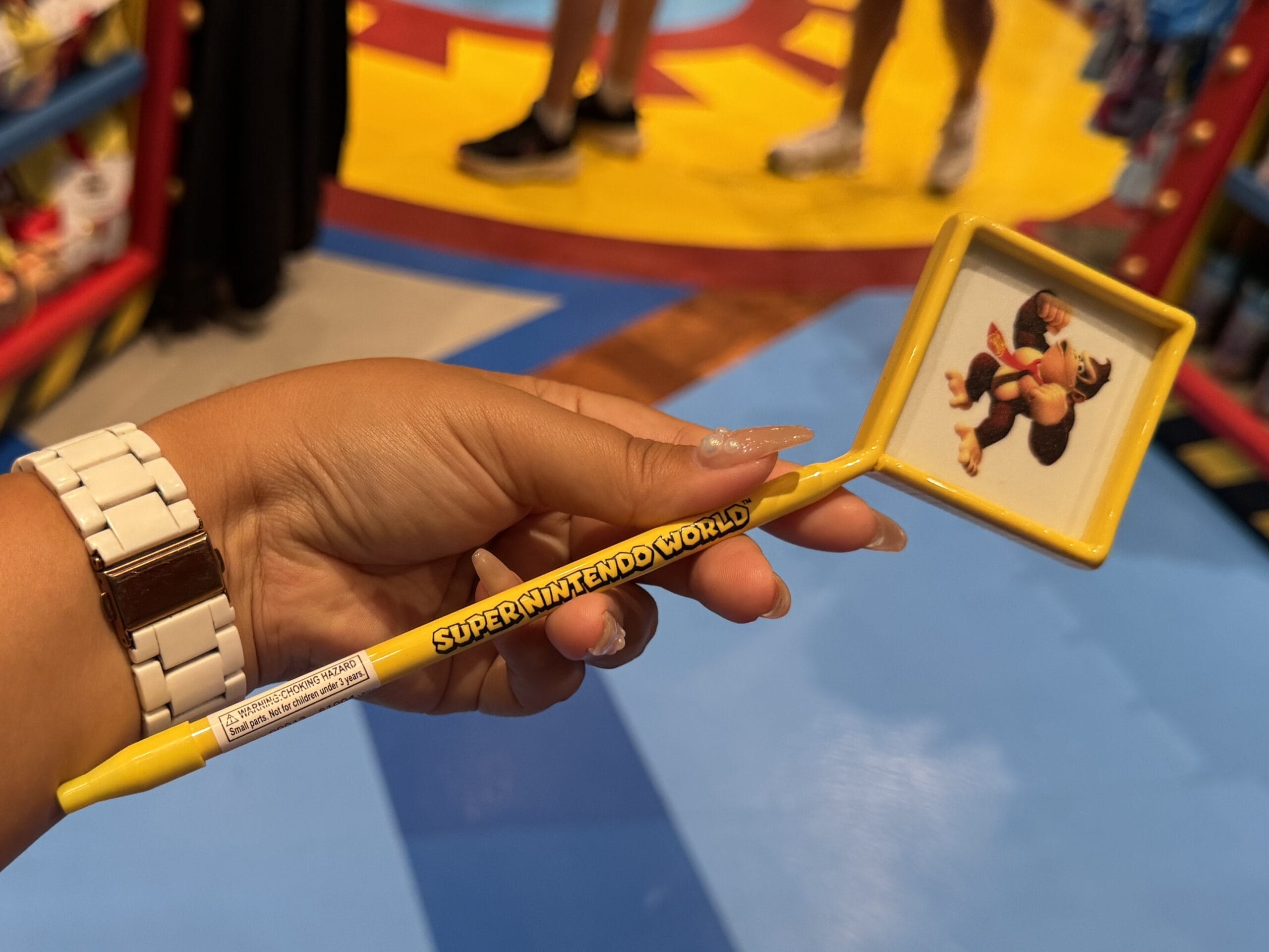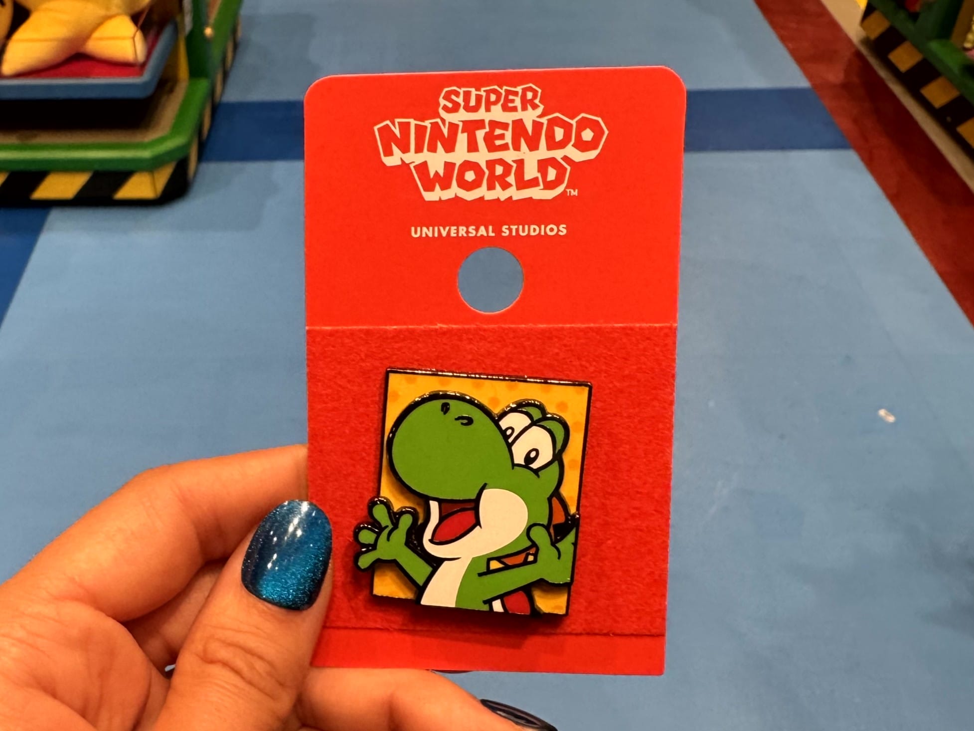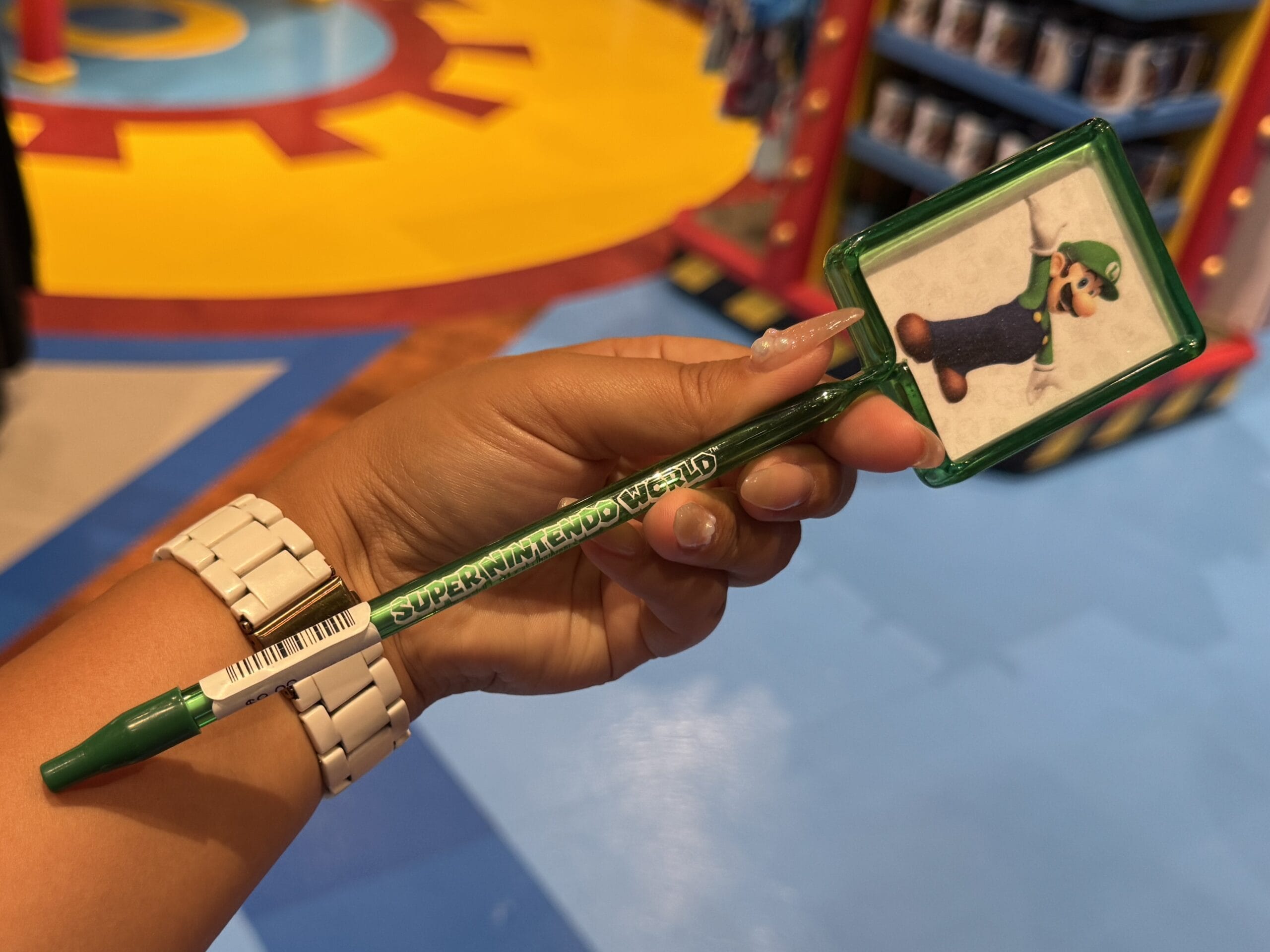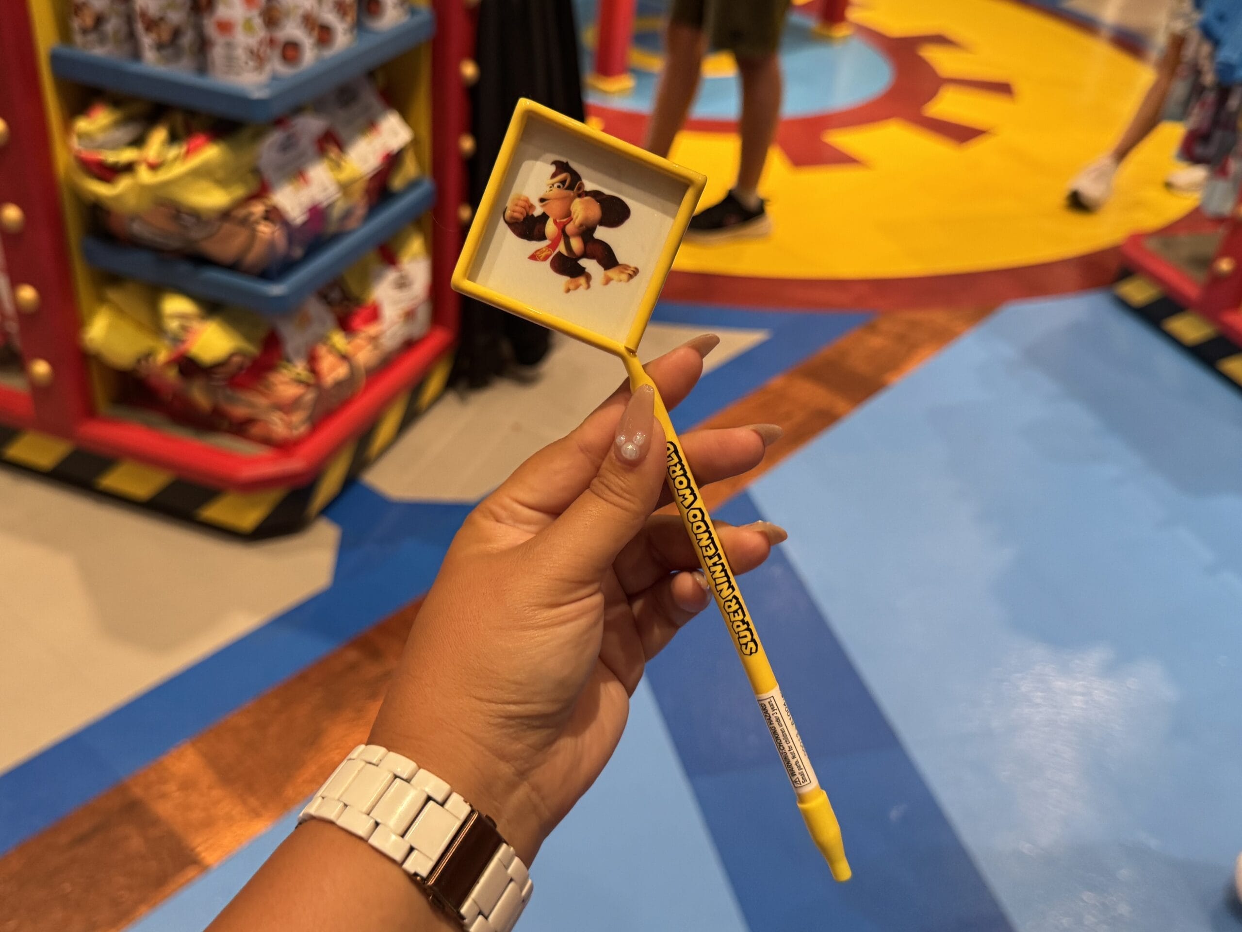 The artwork from the character ensemble t-shirts is on the front of this badge holder. On the back is a clear pocket for an ID or ticket. The Super Nintendo World logo and “Universal Studios” are on the clips, which are retractable.