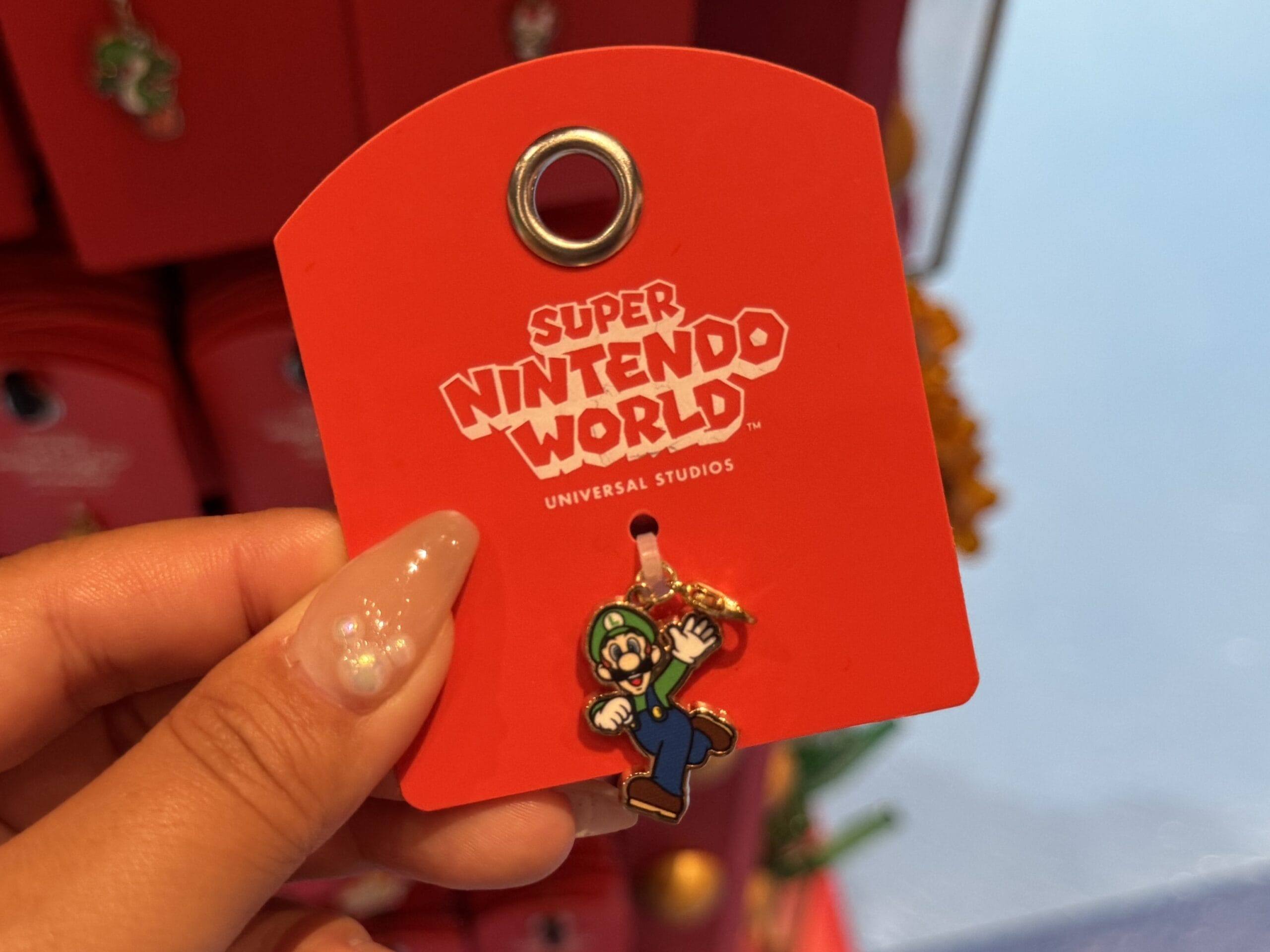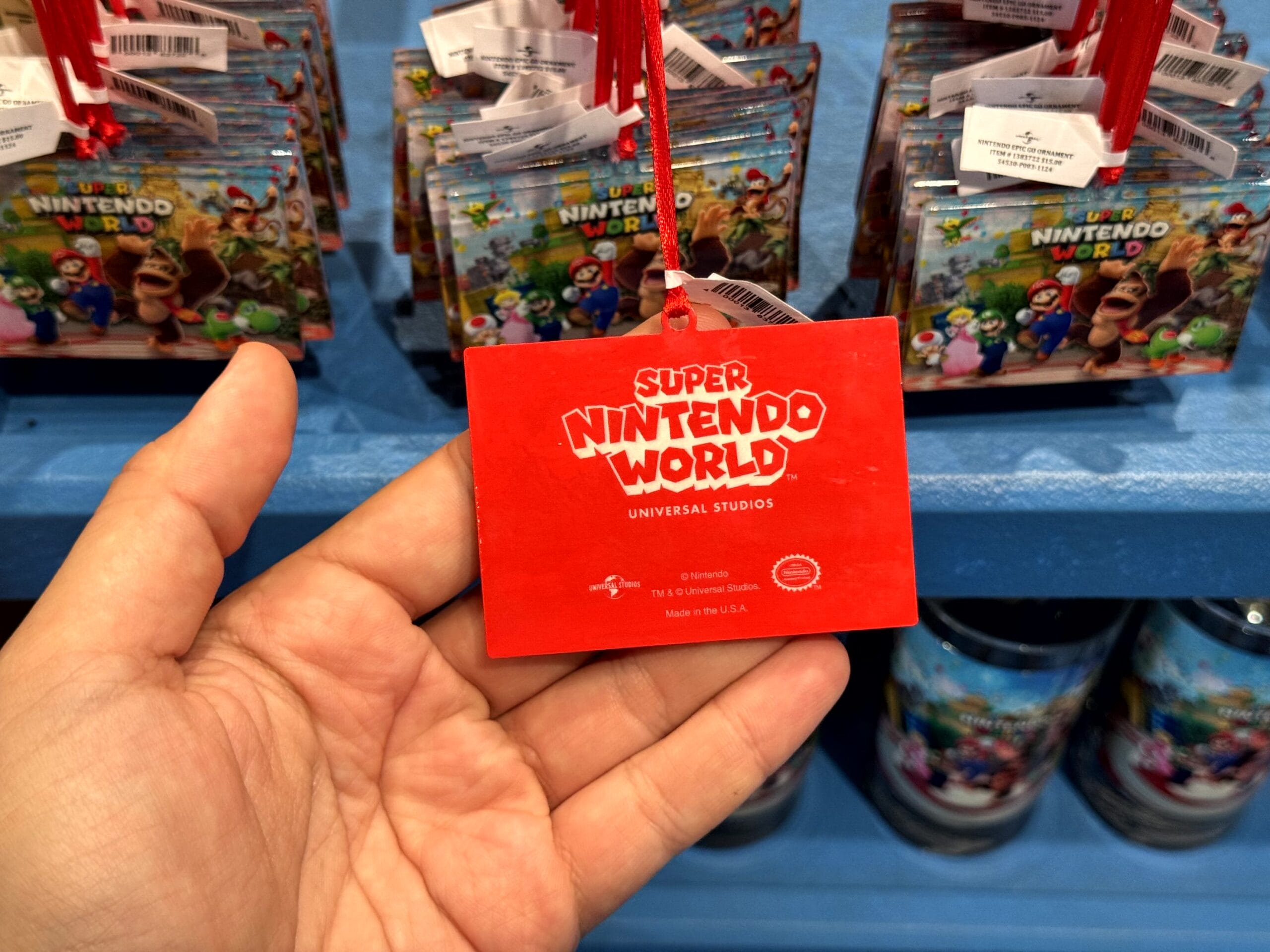 The character art is on one side of this ornament. The other side is red with the Super Nintendo World logo. It comes on a red ribbons.