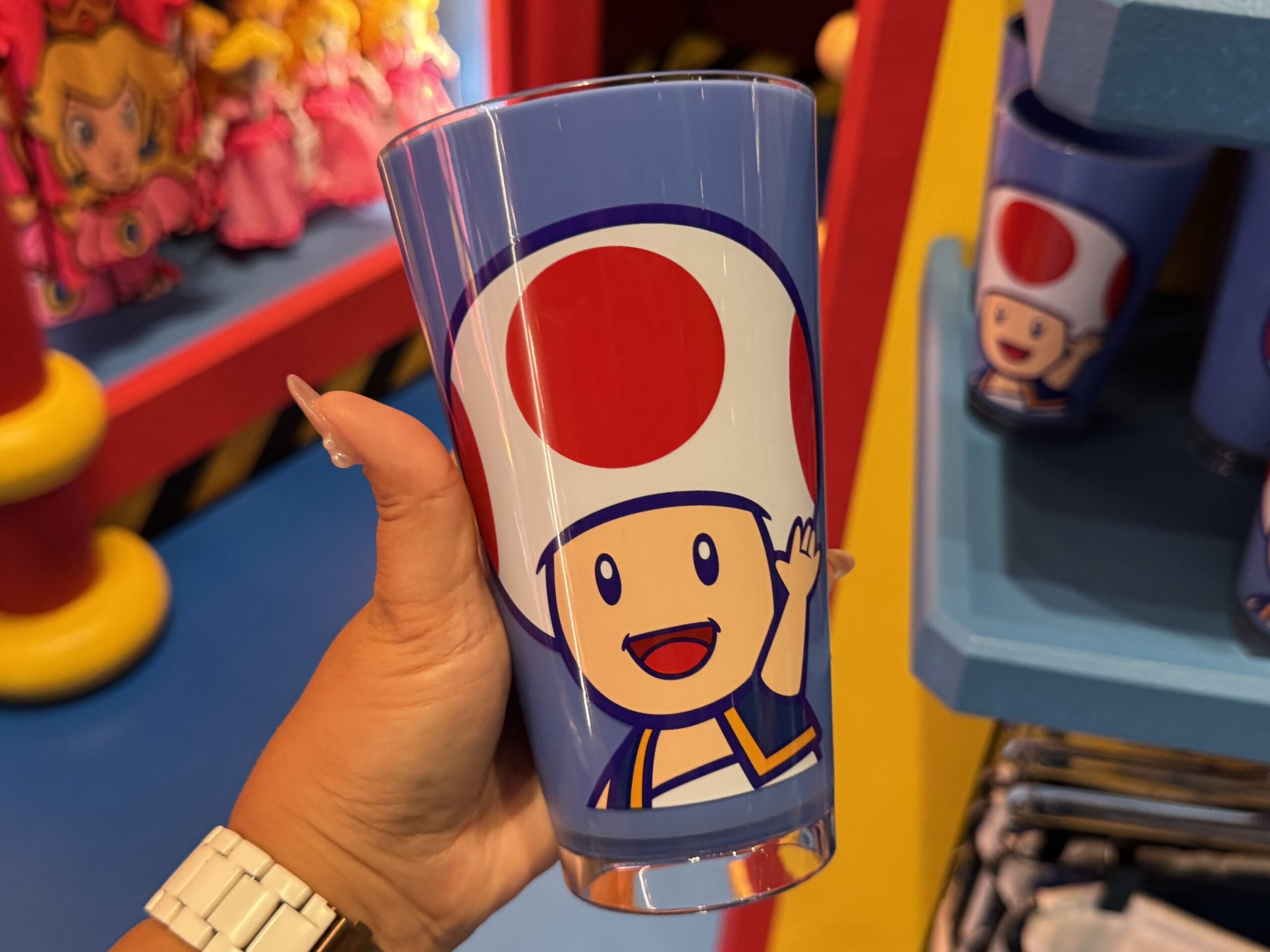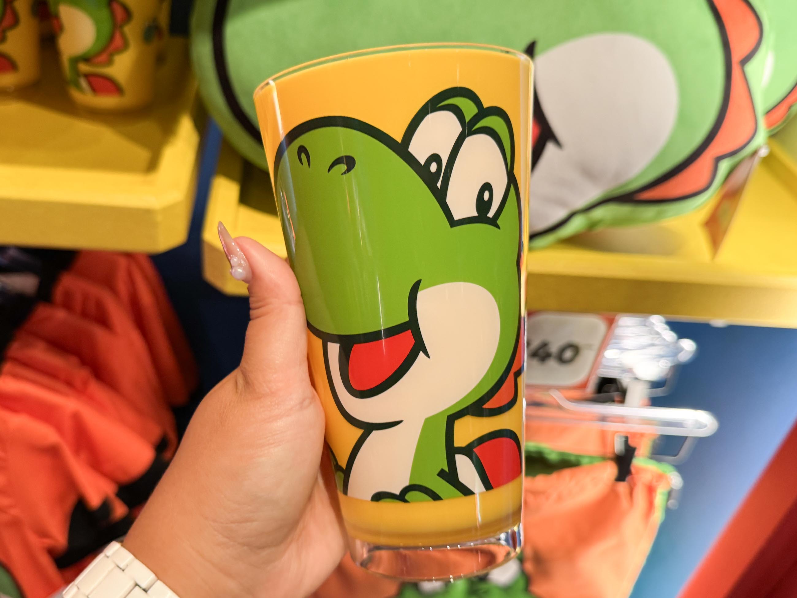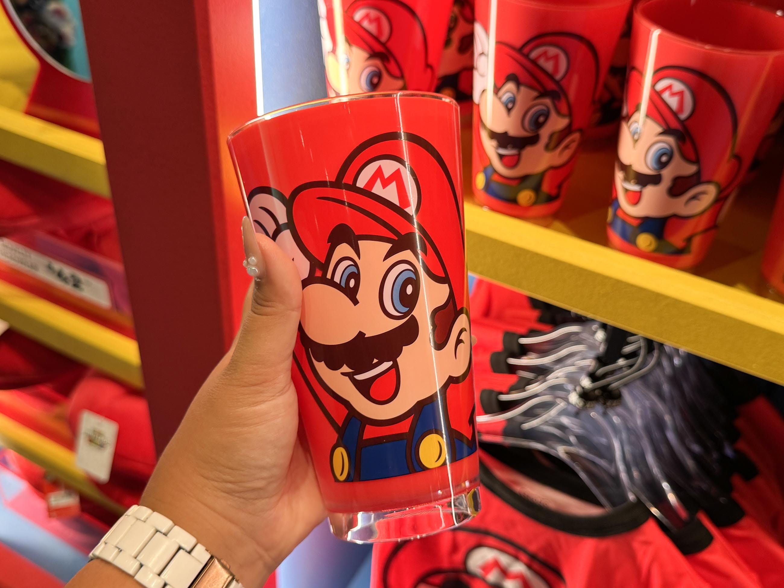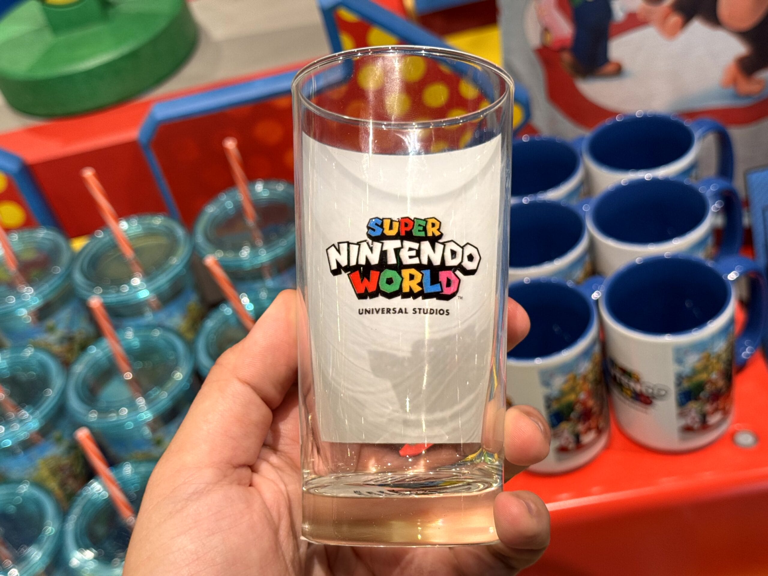The character artwork is on one side of this glass. On the reverse is the Super Nintendo World logo.