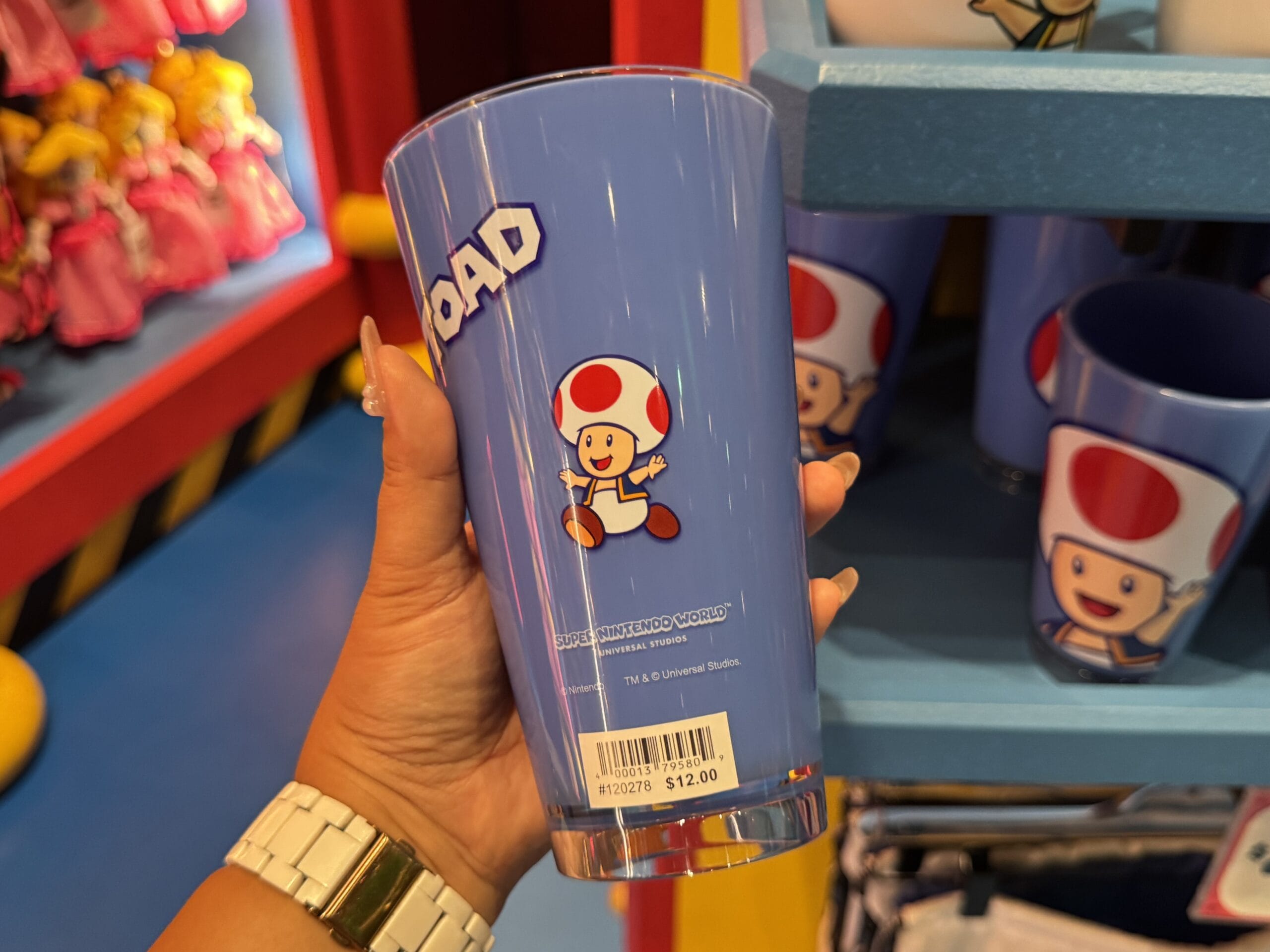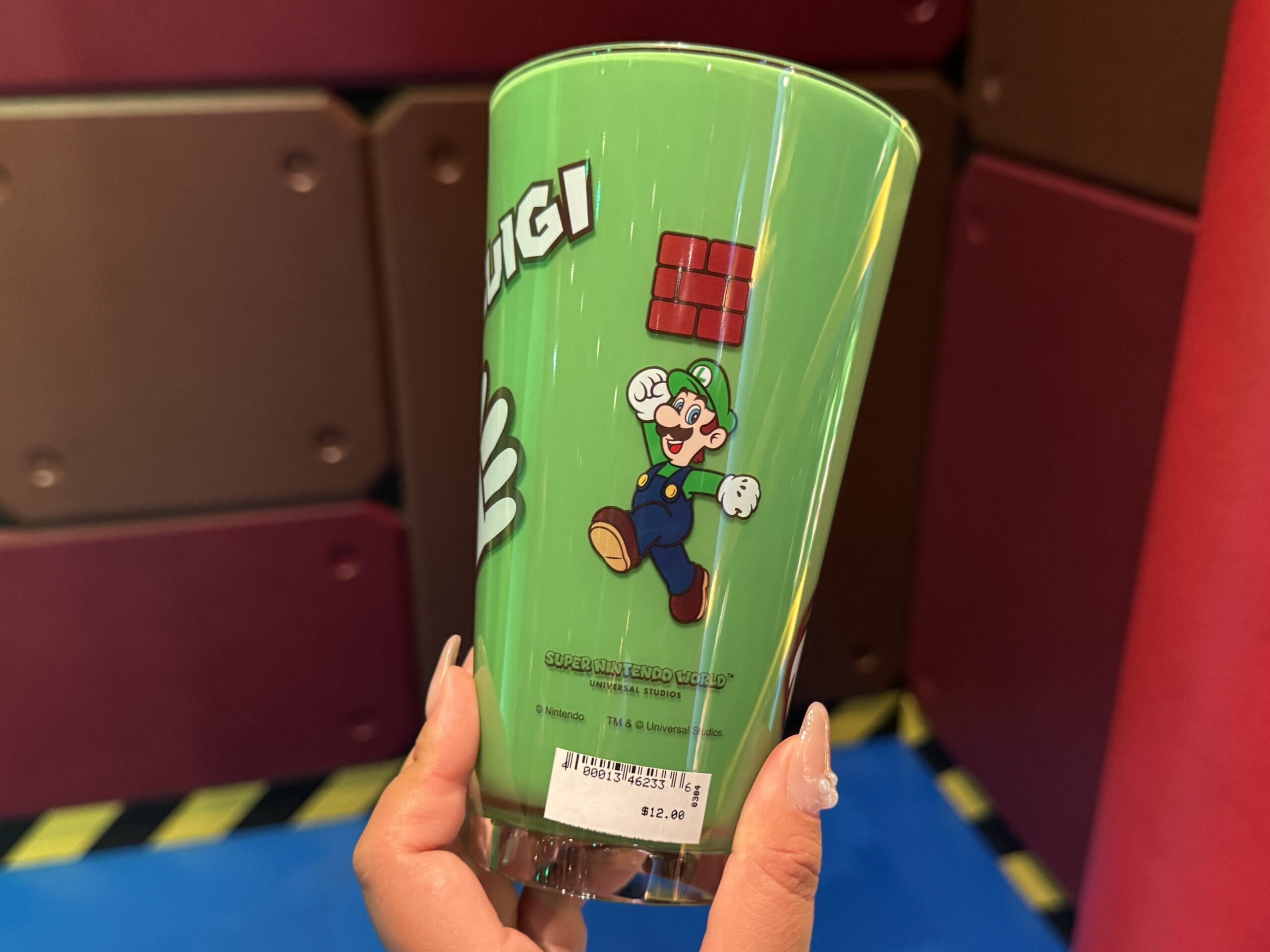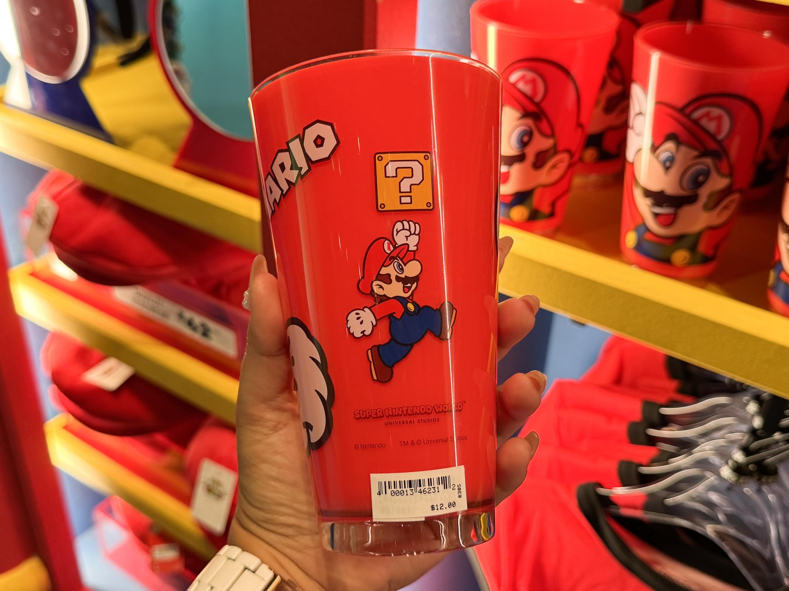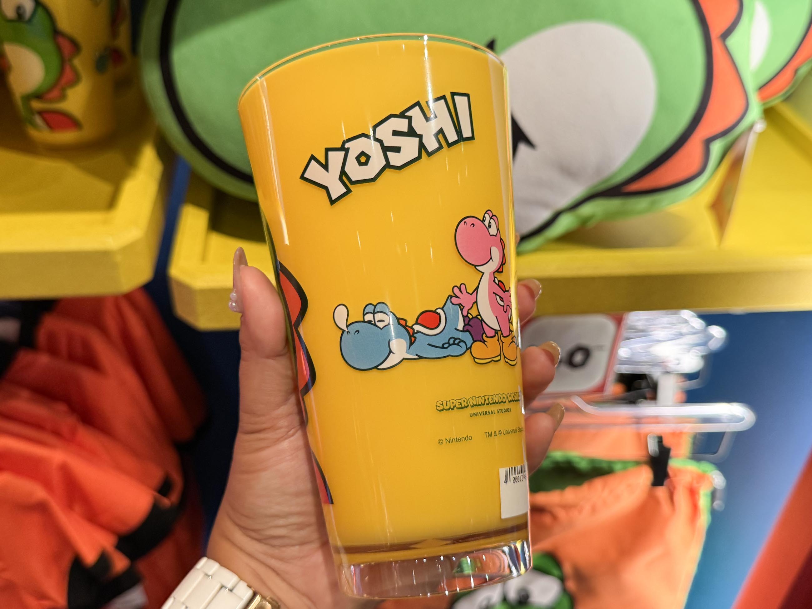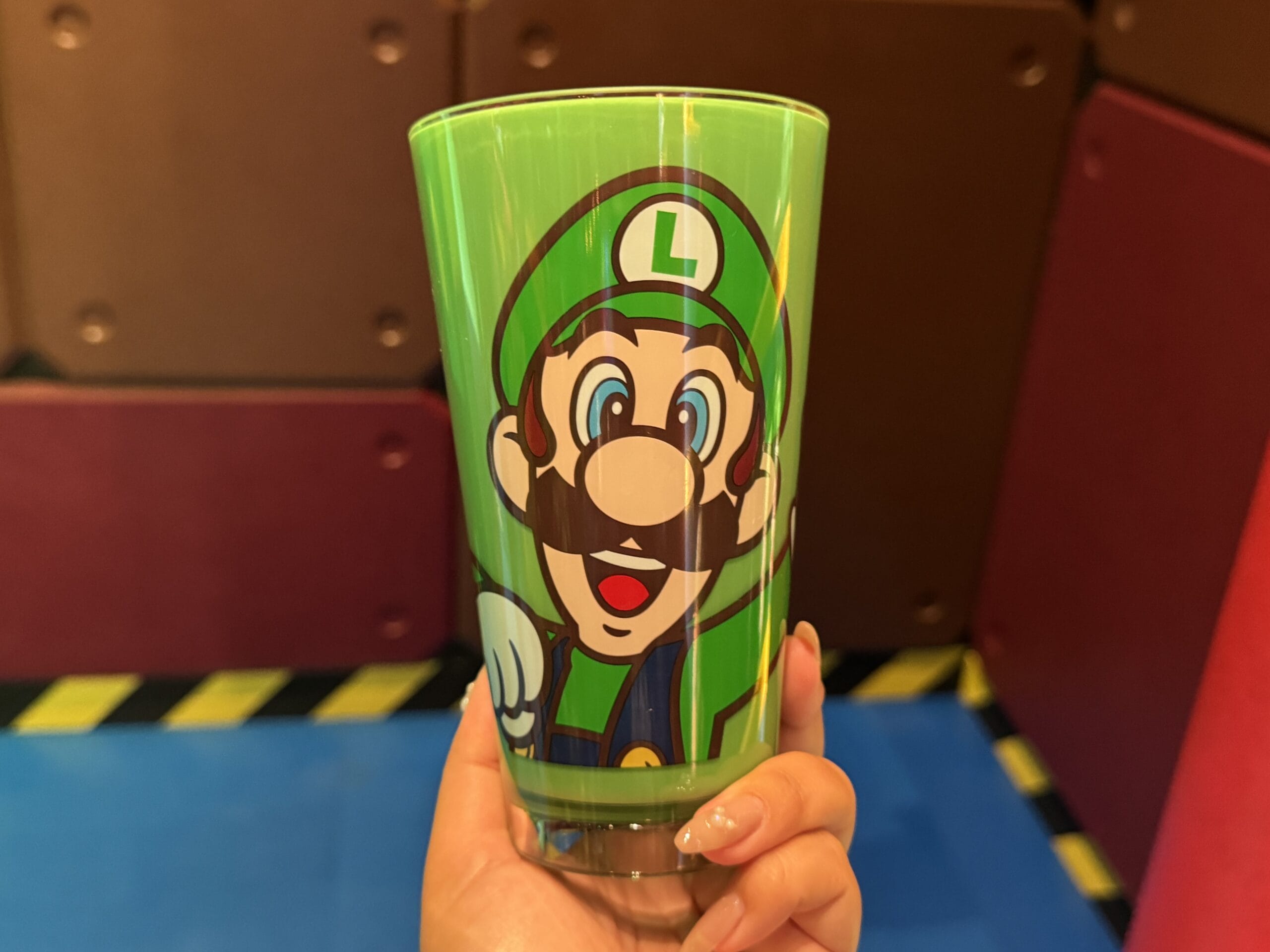 The character artwork is on one side of this glass. On the reverse is the Super Nintendo World logo.