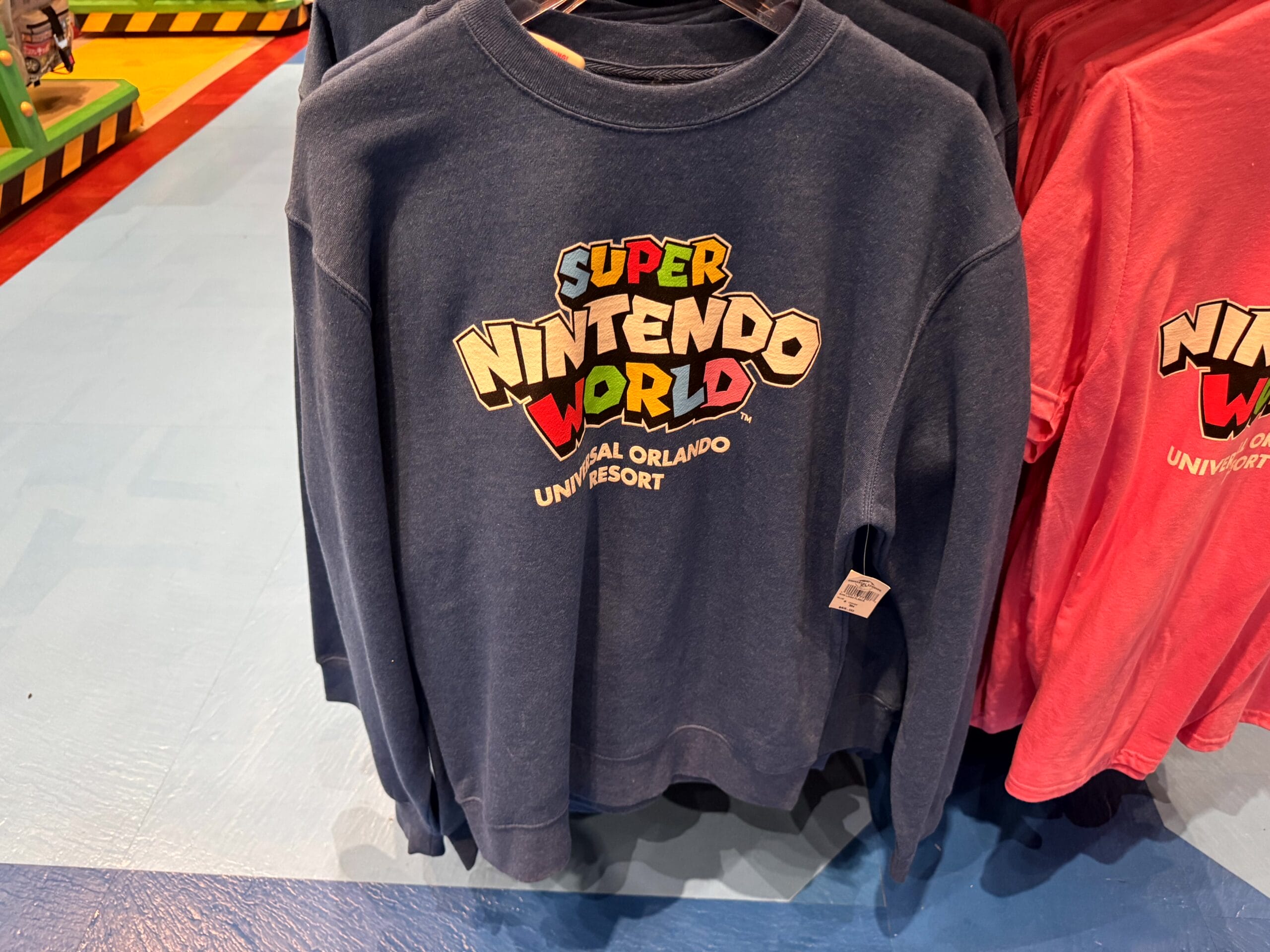 This is a heather blue pullover sweatshirt. The Super Nintendo World and “Universal Orlando Resort” are on the chest.
