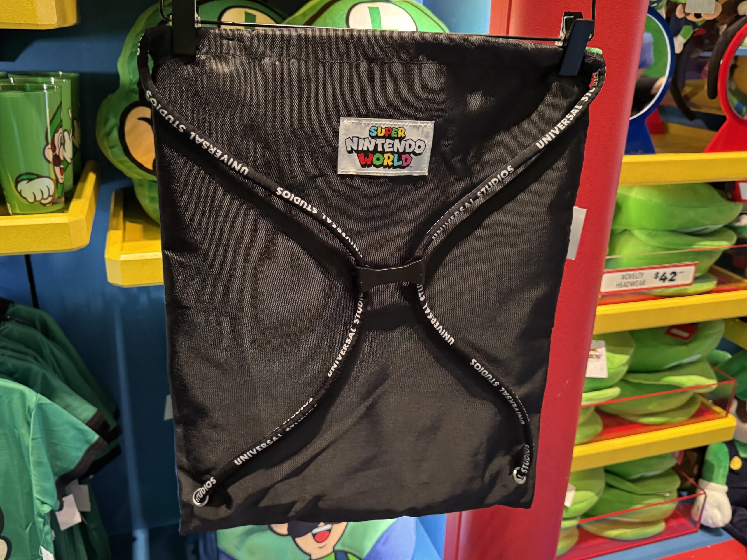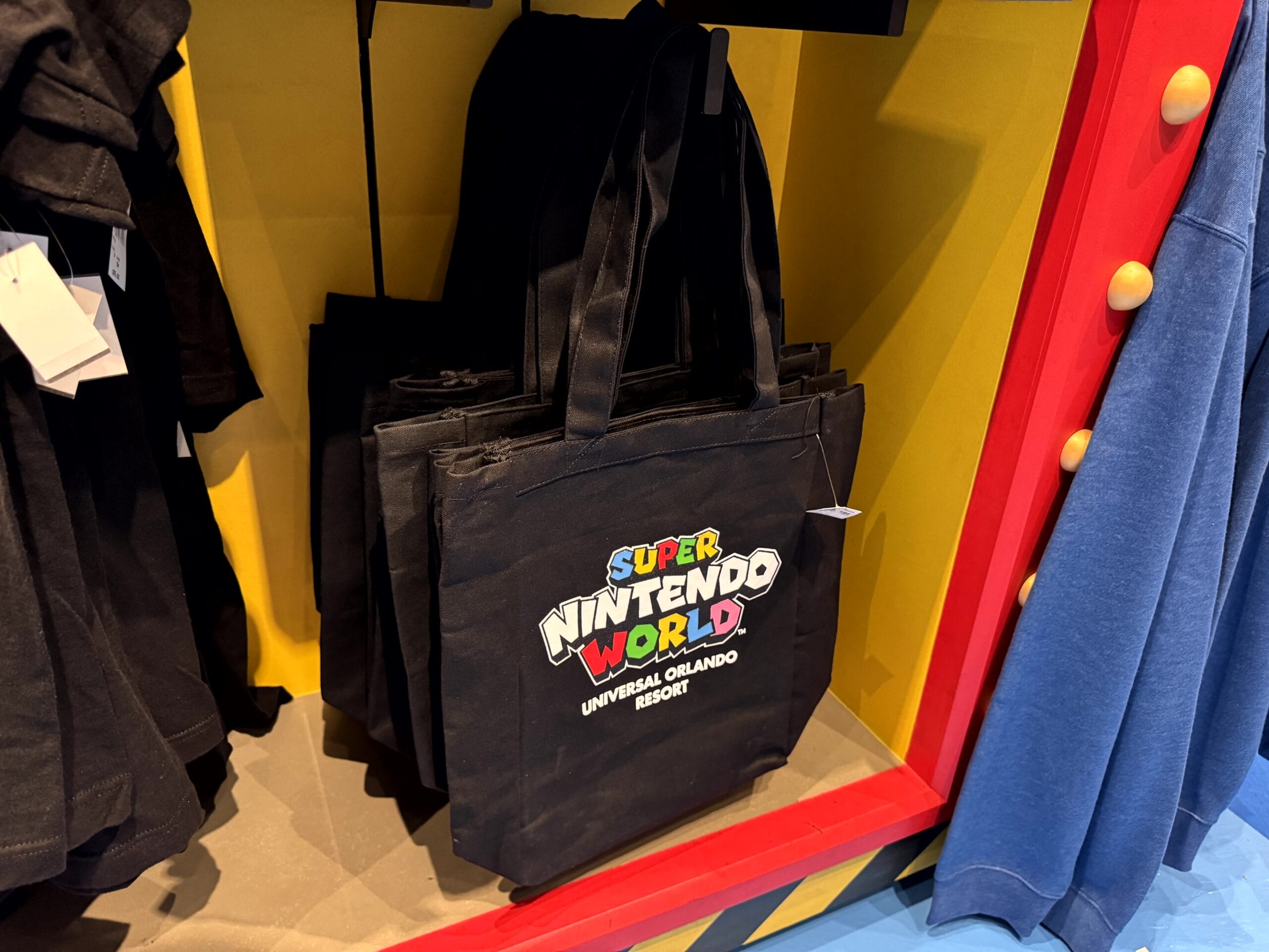 This black tote features the Super Nintendo World logo and “Universal Orlando Resort” on the front. It has two shoulder straps.