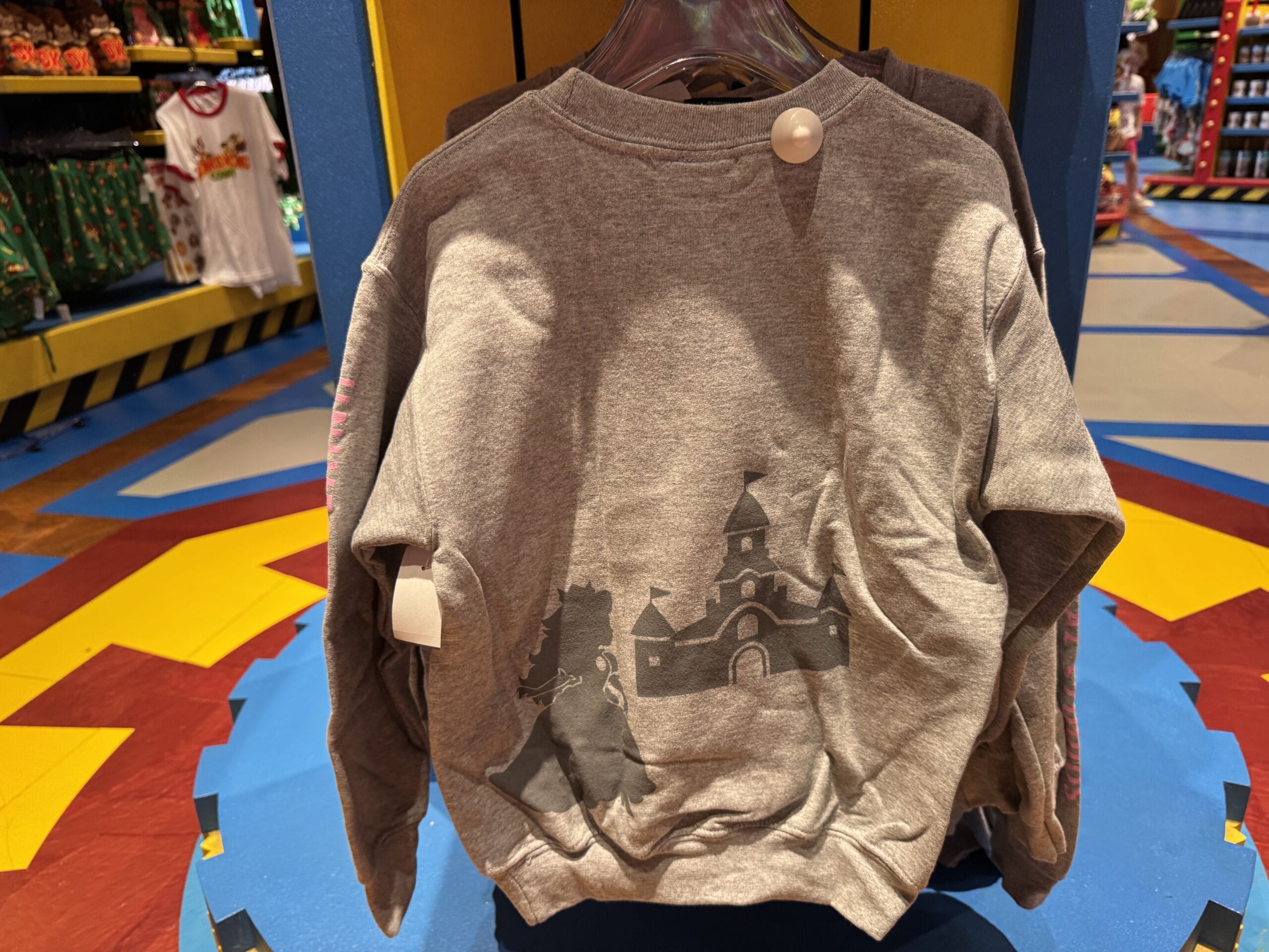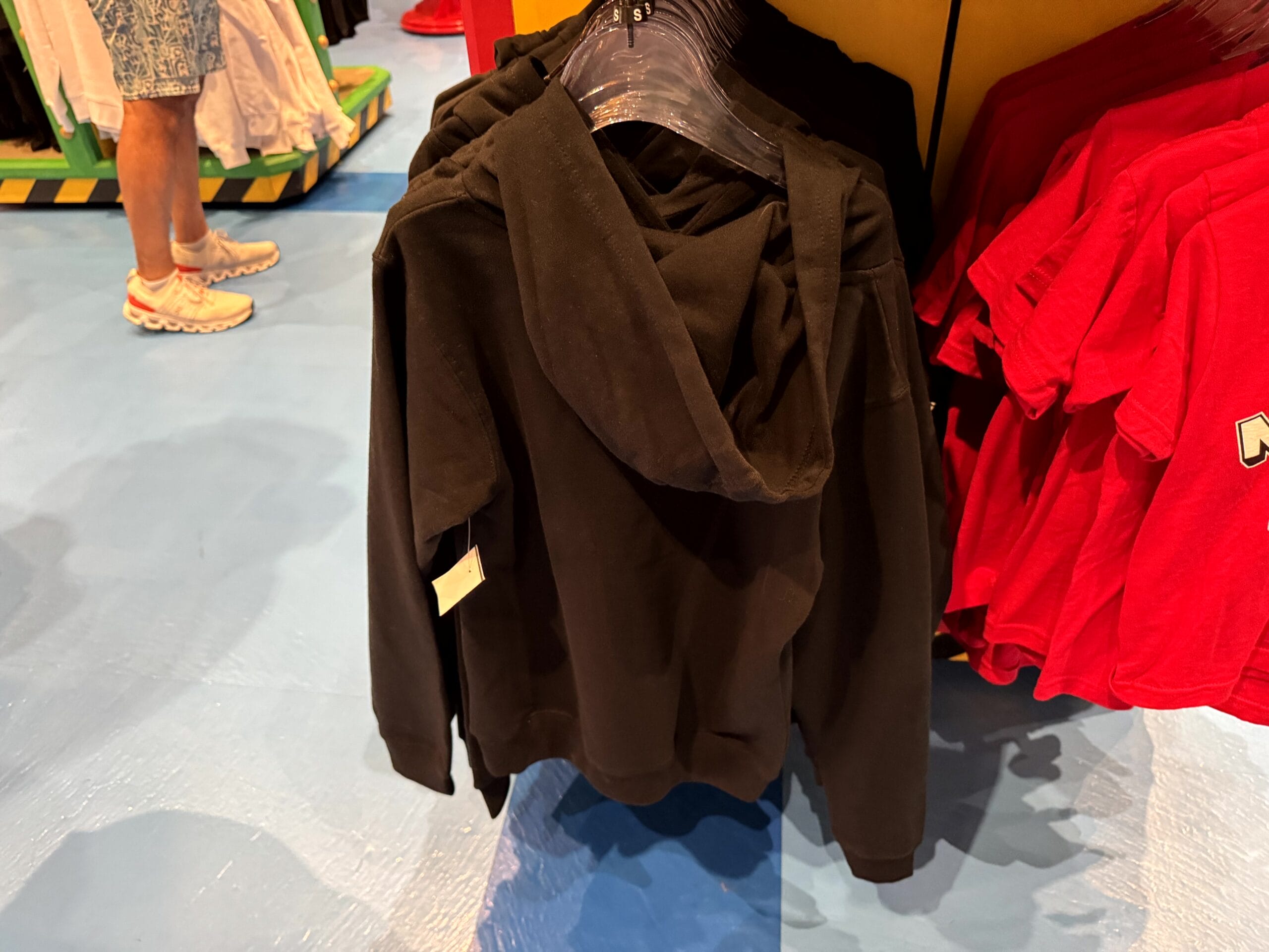 The hoodie has the same artwork but against a heather gray background. It’s a pullover with a kangaroo pocket and drawstring hood.