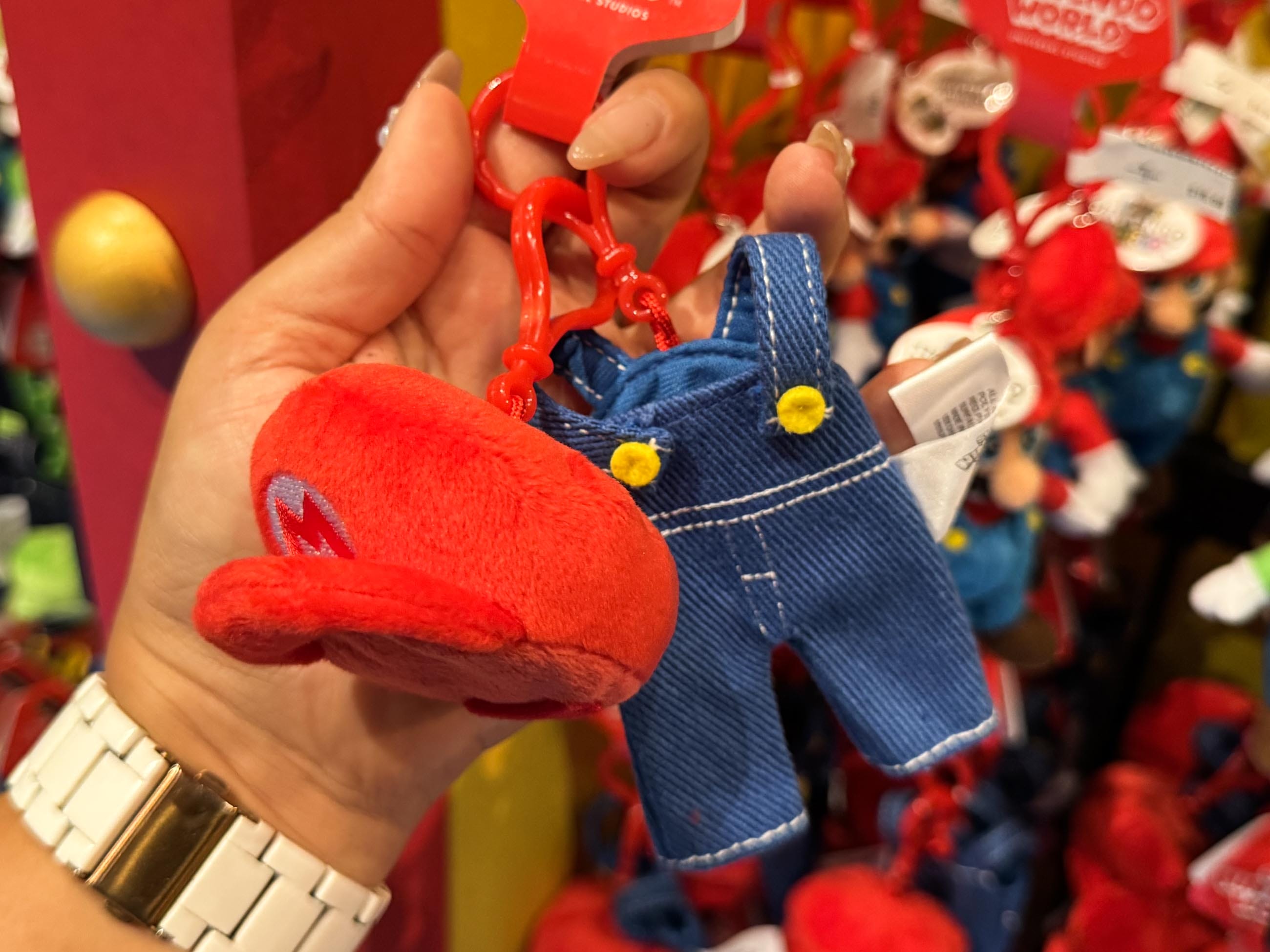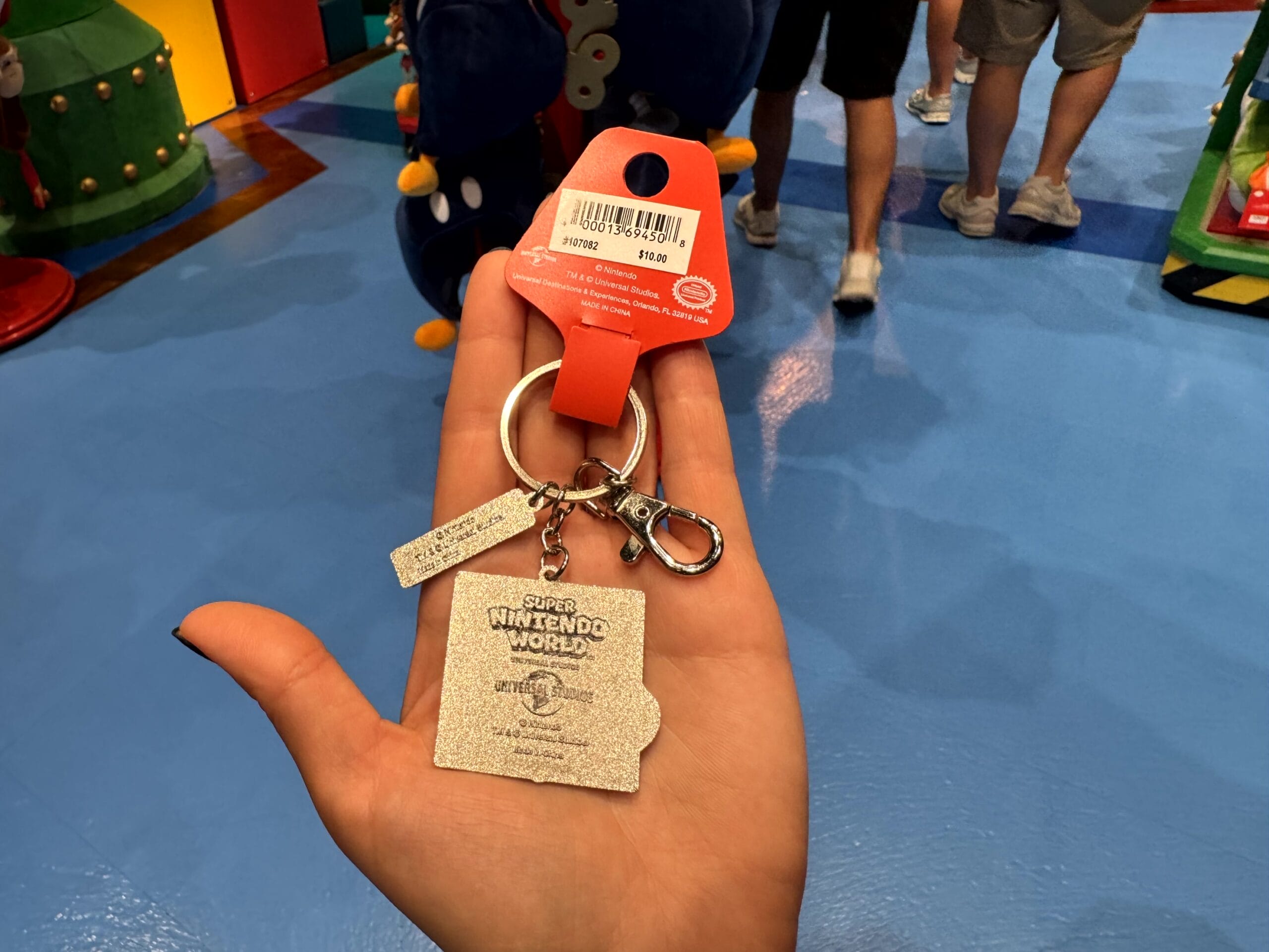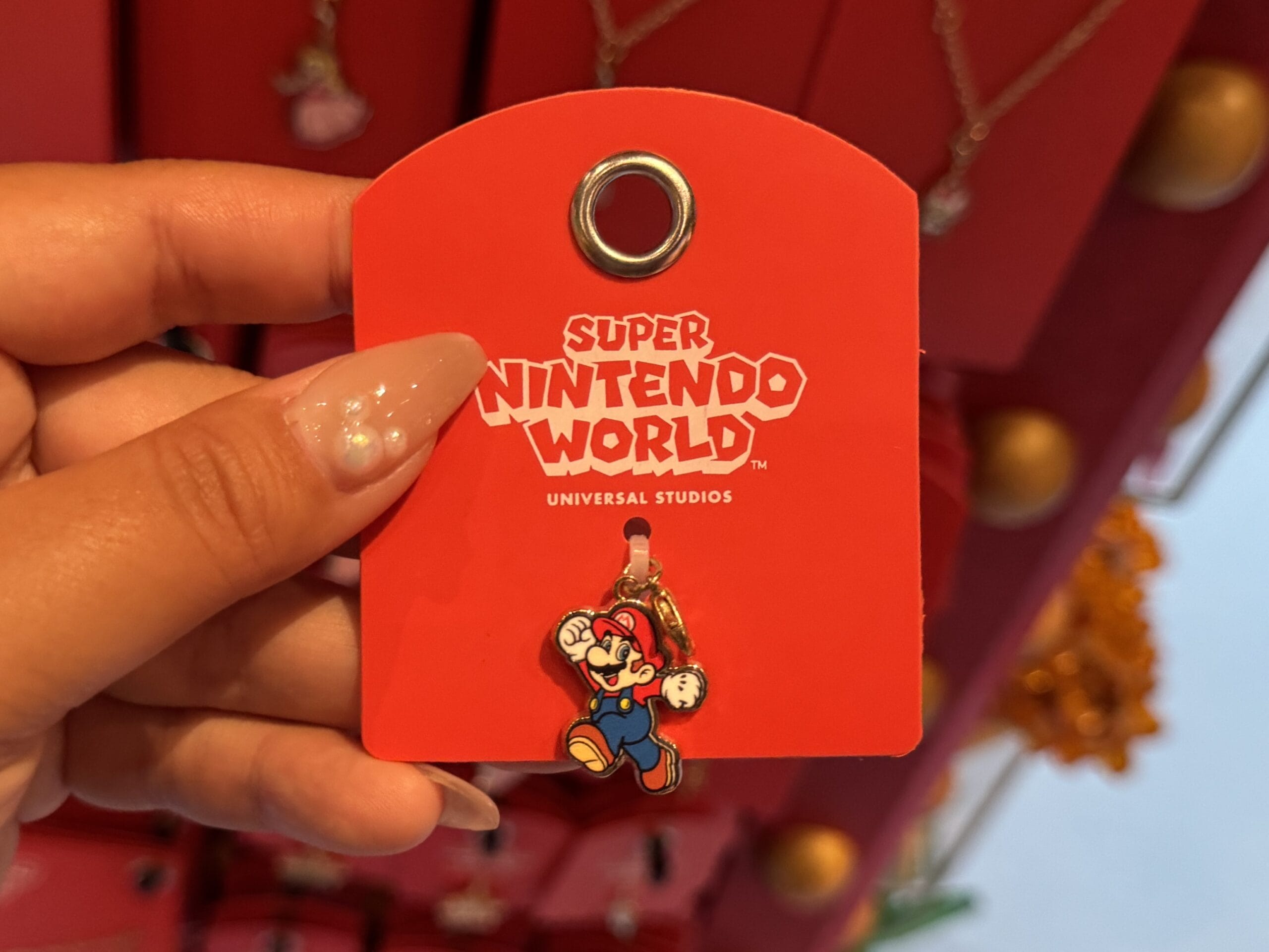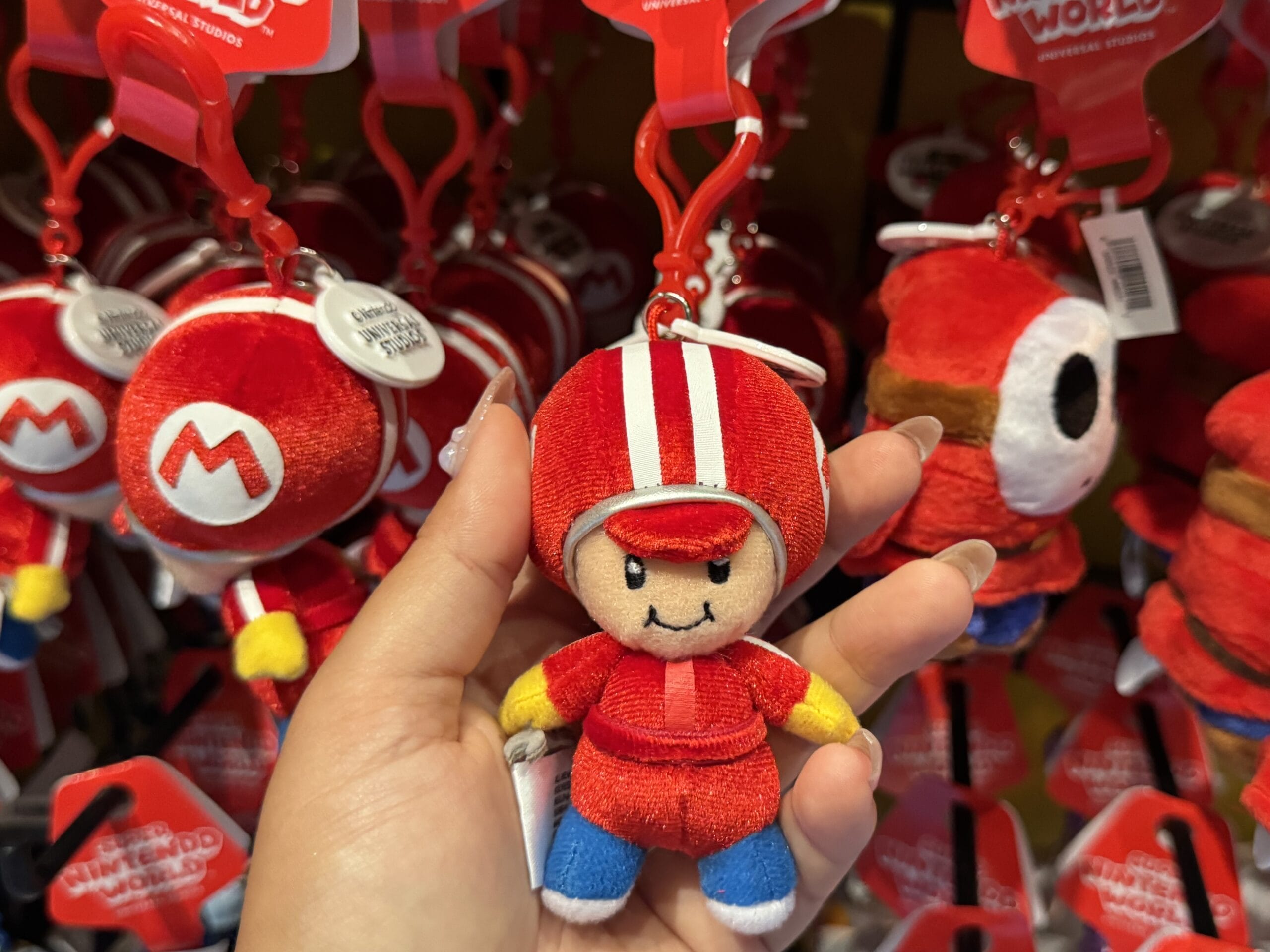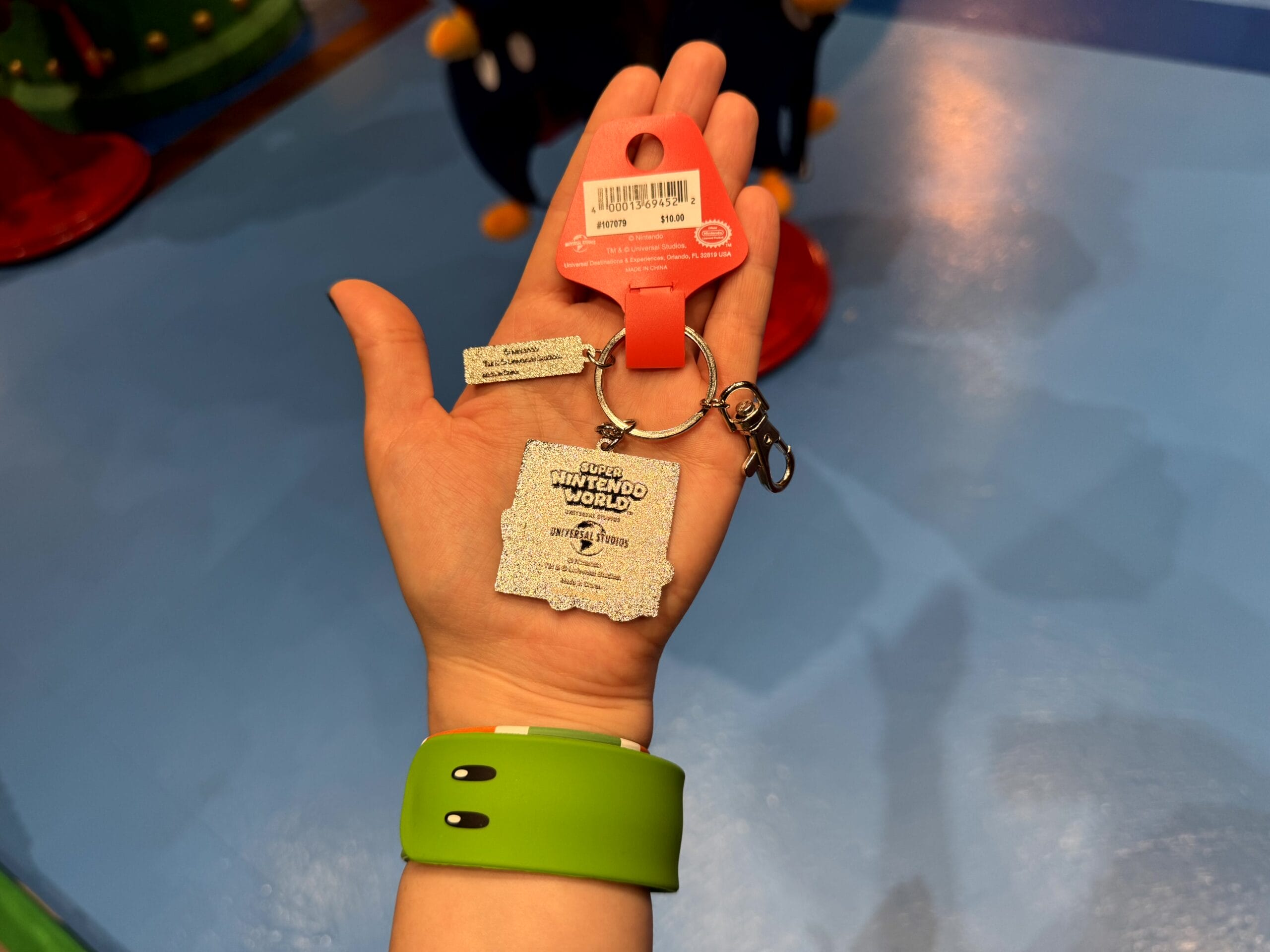 Another keychain has a Chef Toad charm, mushroom charm, Fire Flower charm, and Super Star charm.