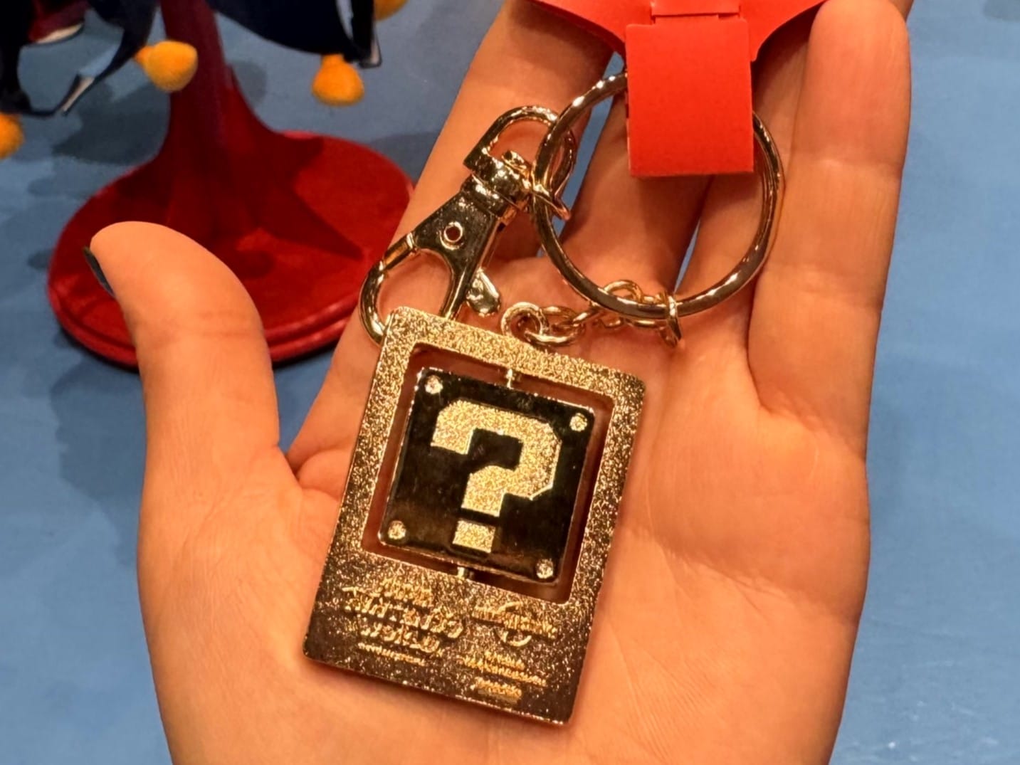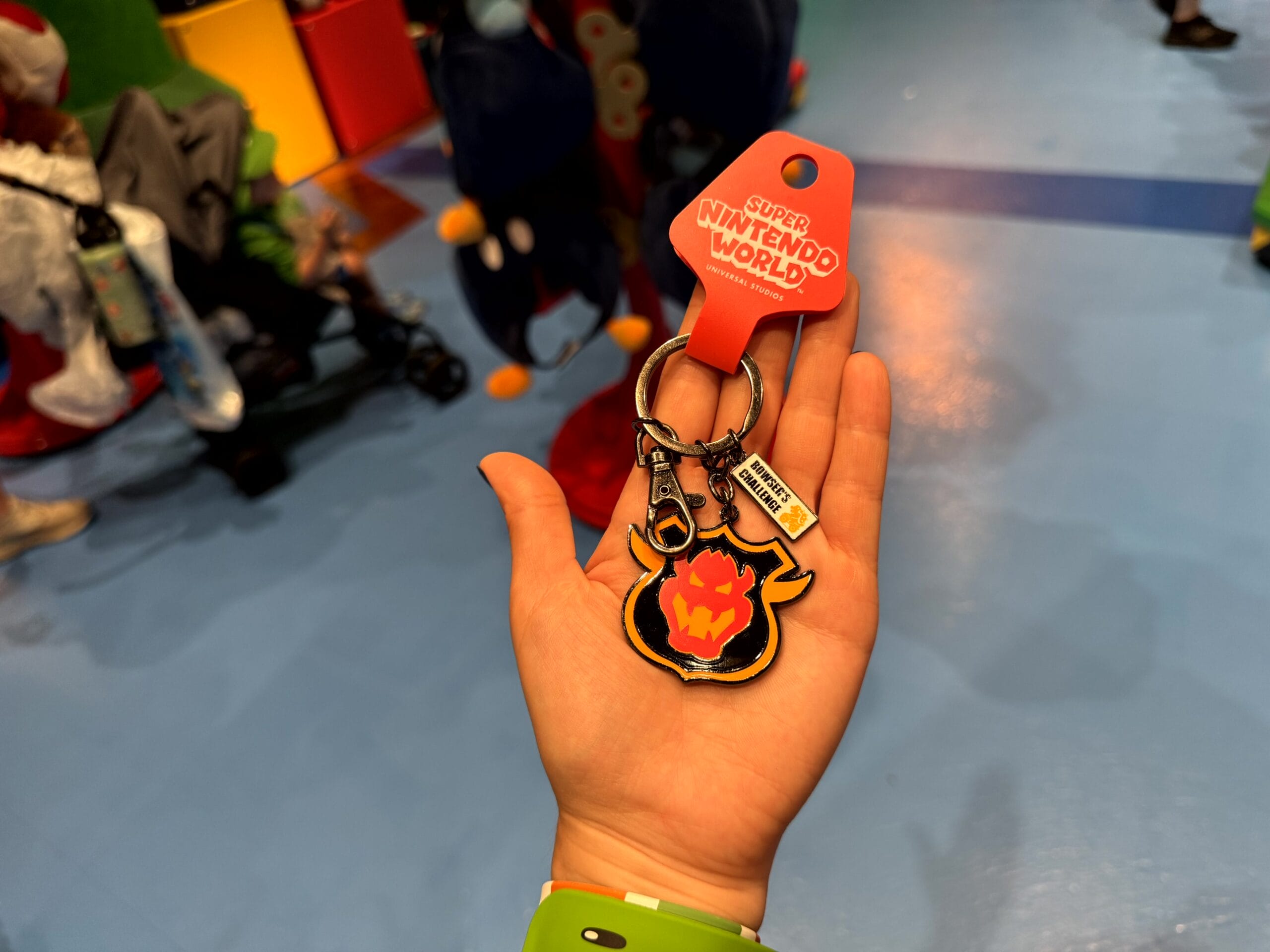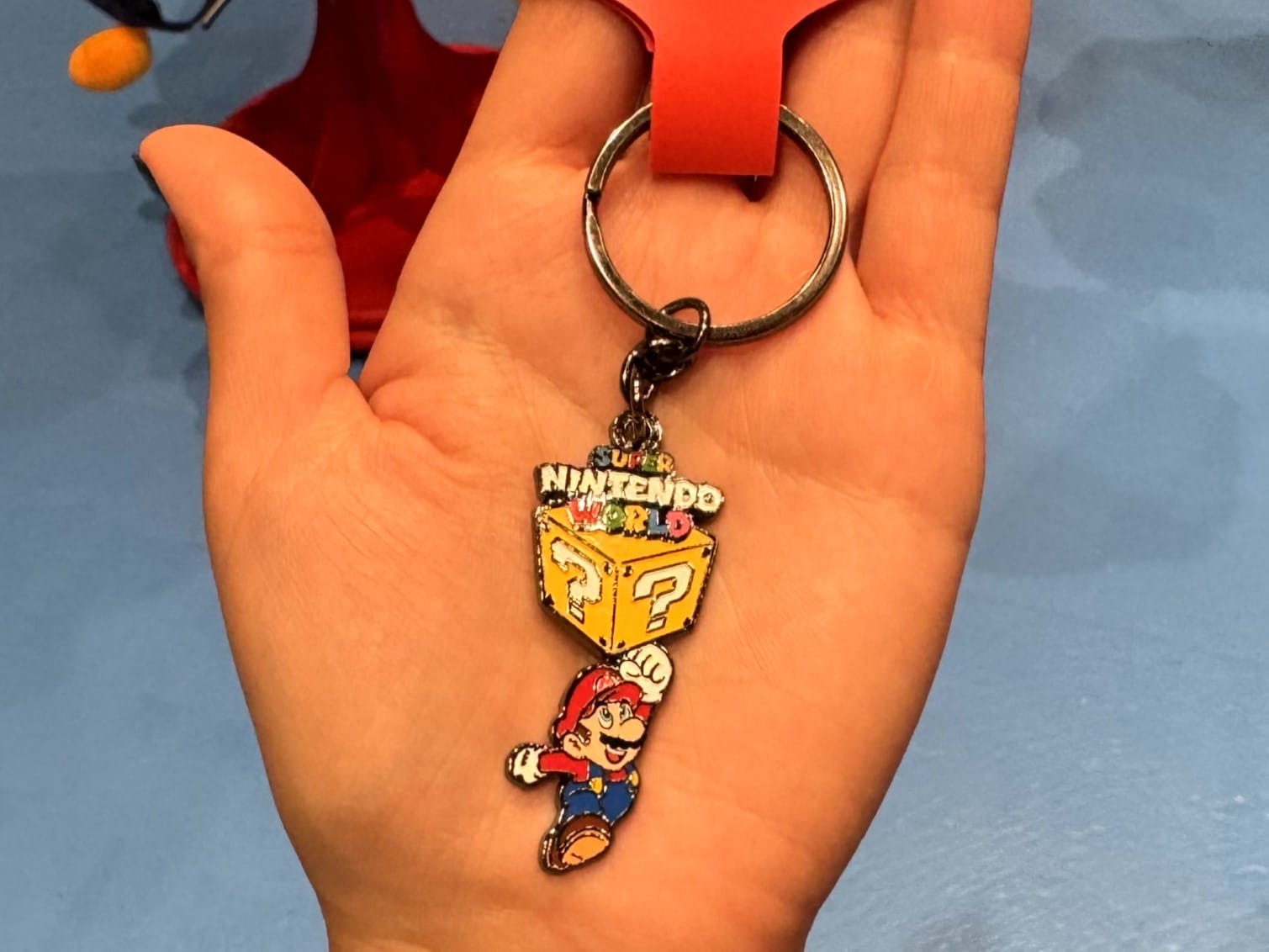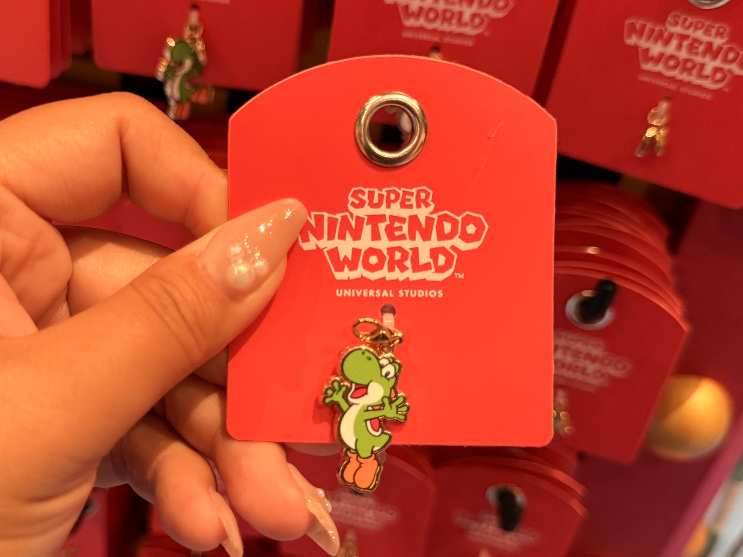 Another keychain has a Chef Toad charm, mushroom charm, Fire Flower charm, and Super Star charm.